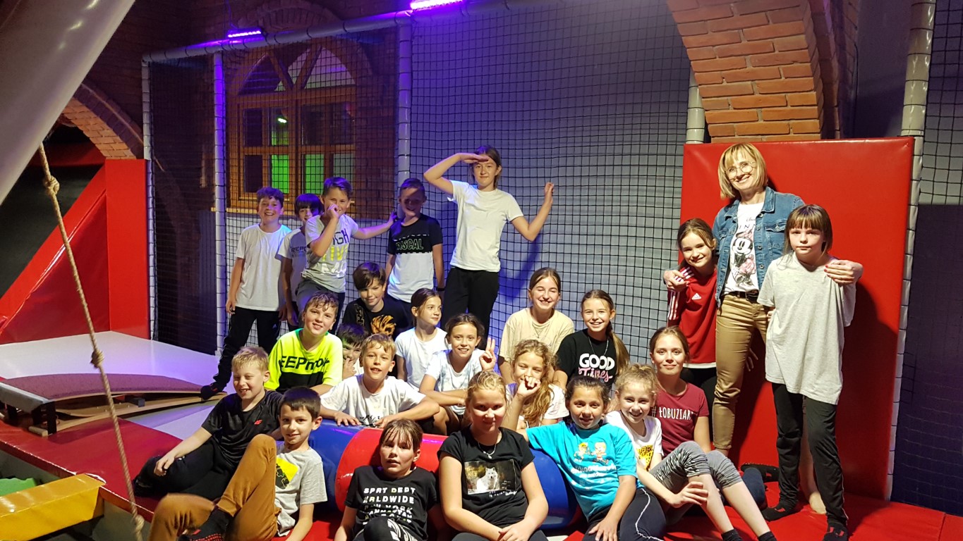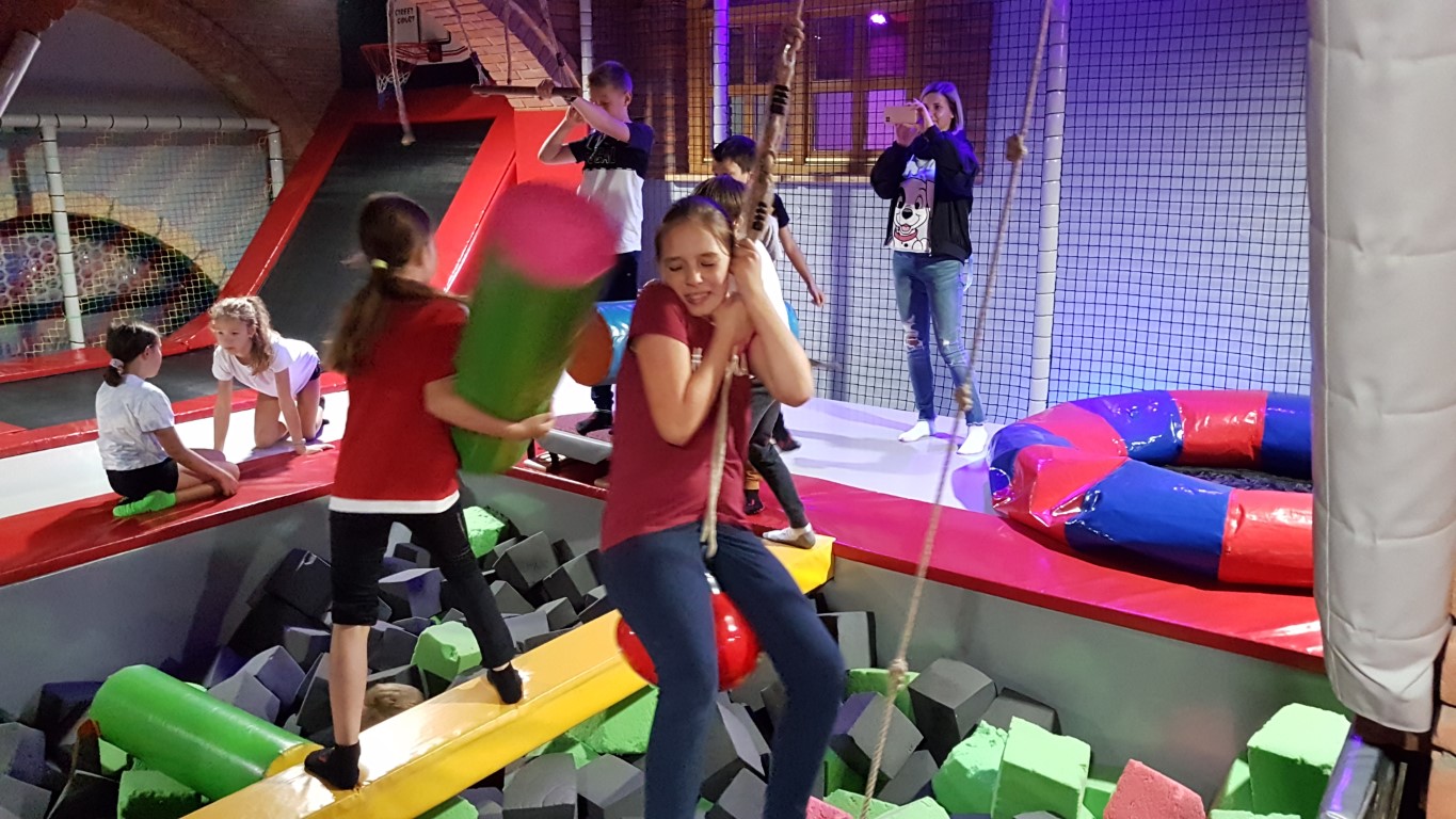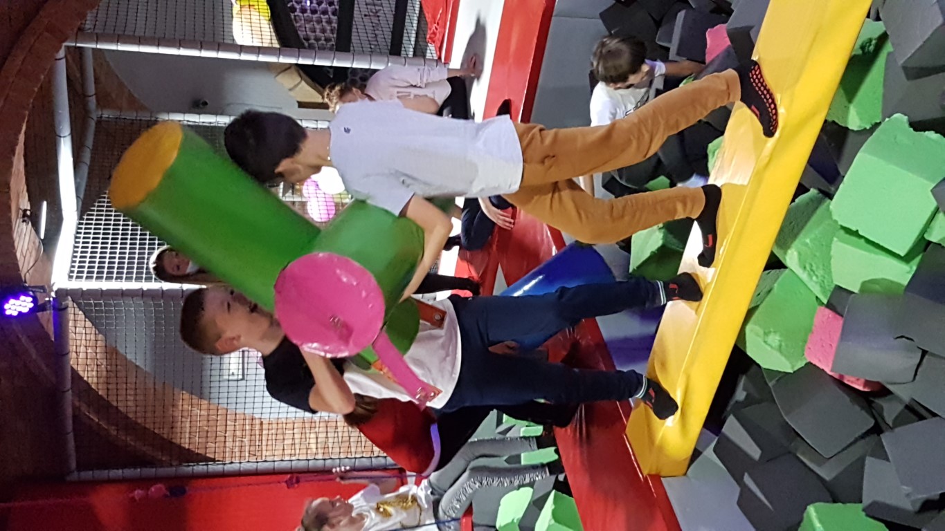 Jak przystało na klasę sportową, IV c Dzień Chłopaka świętowała aktywnie, czyli na Sali Trampolin na Zamku. Zabawie towarzyszyły potyczki rycerskie na równoważni, nurkowanie w piankach poprzedzone skokami z wysokości, rzut piłką do kosza w powietrzu. Szaleństwom nie było końca 😊 Po wyczerpujących akrobacjach przyszedł czas na odpoczynek i uzupełnienie kalorii przy pizzy. Na koniec dziewczynki złożyły chłopcom życzenia i wręczyły drobne upominki. A oto relacja fotograficzna.