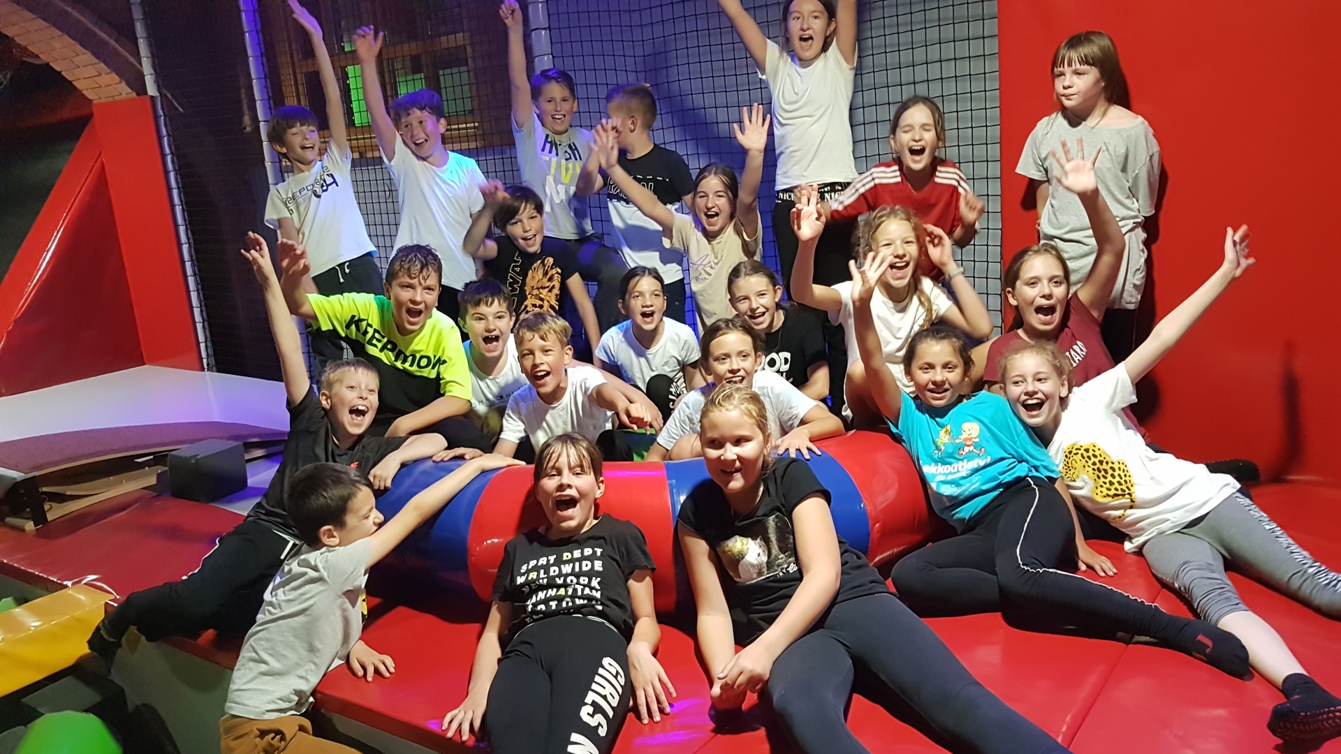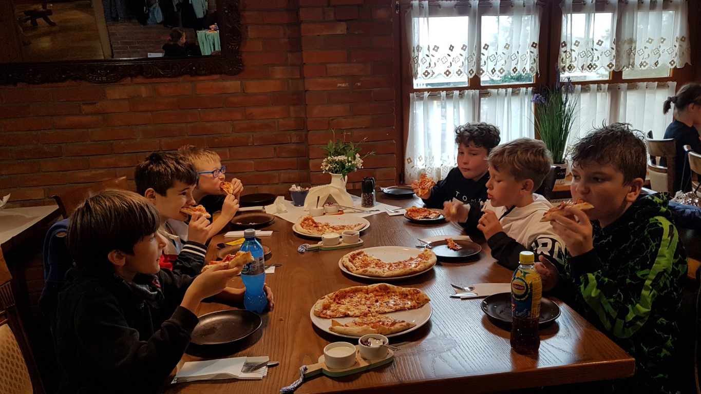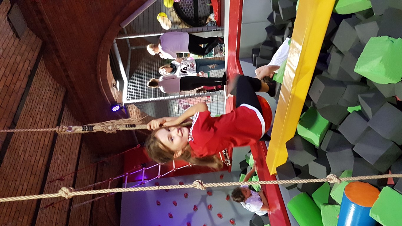 Jak przystało na klasę sportową, IV c Dzień Chłopaka świętowała aktywnie, czyli na Sali Trampolin na Zamku. Zabawie towarzyszyły potyczki rycerskie na równoważni, nurkowanie w piankach poprzedzone skokami z wysokości, rzut piłką do kosza w powietrzu. Szaleństwom nie było końca 😊 Po wyczerpujących akrobacjach przyszedł czas na odpoczynek i uzupełnienie kalorii przy pizzy. Na koniec dziewczynki złożyły chłopcom życzenia i wręczyły drobne upominki. A oto relacja fotograficzna.