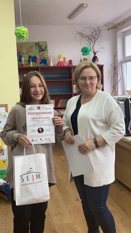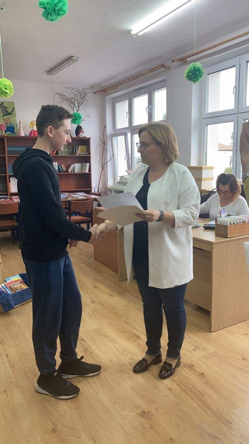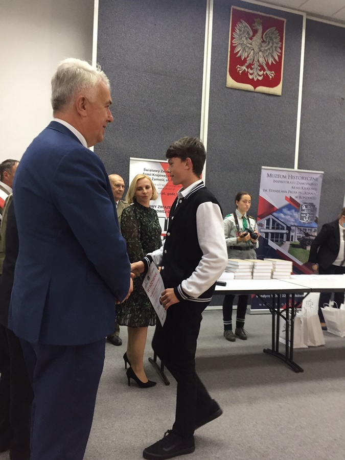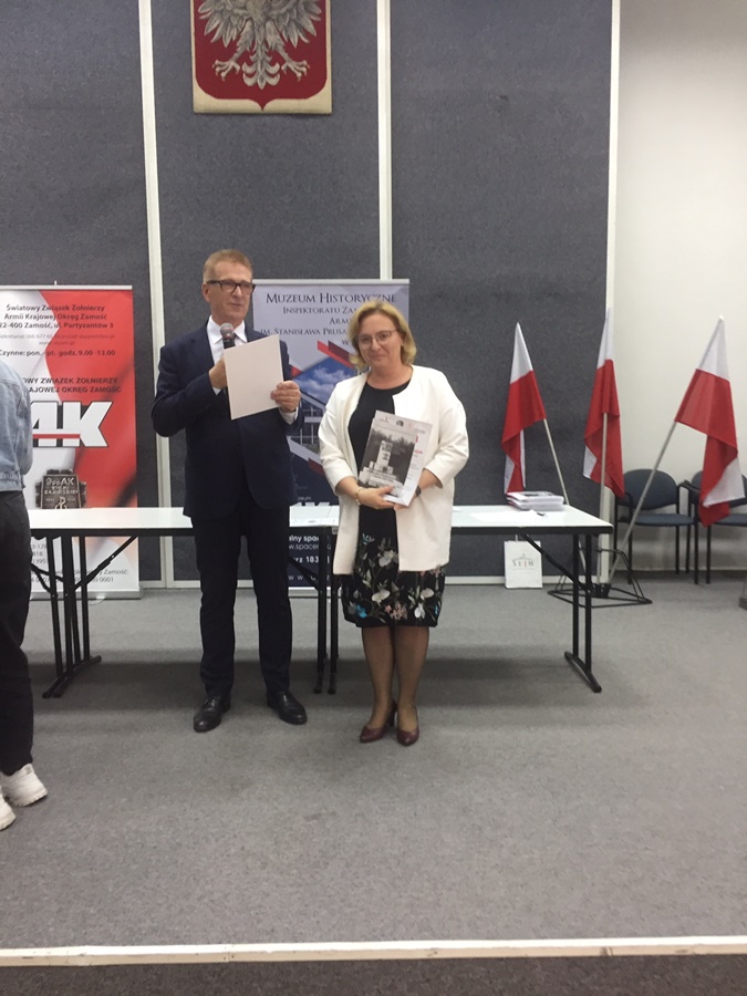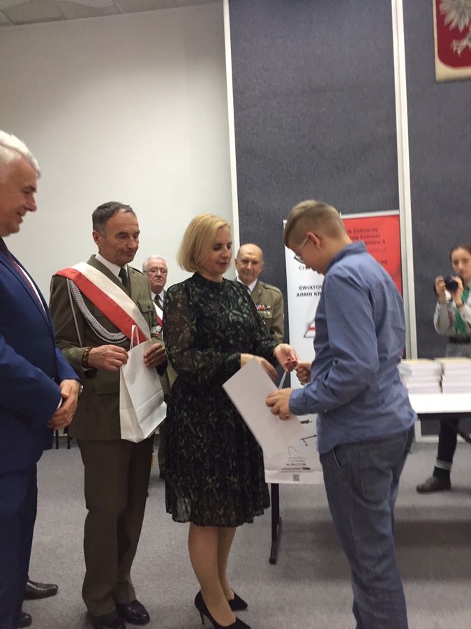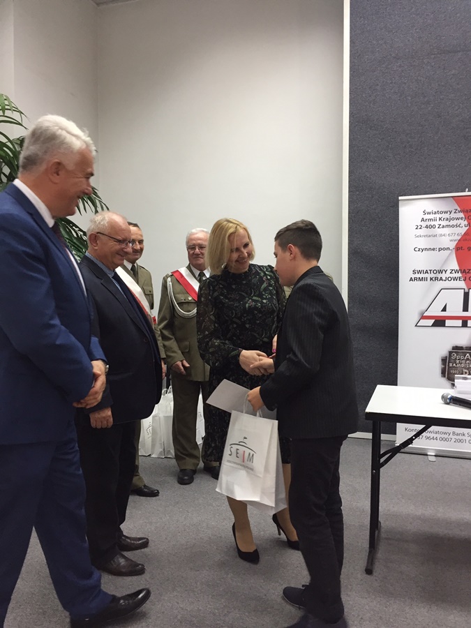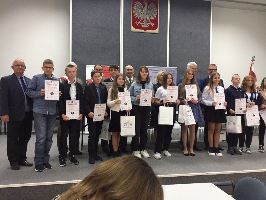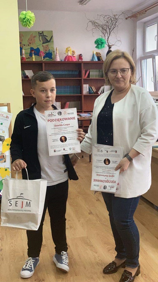 Uczniowie naszej szkoły brali udział w konkursie „Kardynał Stefan Wyszyński i jego nauka w oczach dzieci i młodzieży”. Konkurs zorganizował Światowy Związek Żołnierzy Armii Krajowej okręg Zamość. I nagrodę w kategorii prac plastycznych otrzymał Bartek Zięzio z klasy VI a, wyróżnienie przyznano Michałowi Bartmańskiemu z tej samej klasy. W kategorii prac literackich wyróżnienie otrzymał Szymon Łagowski z klasy VII c. Serdecznie gratulujemy nagrodzonym. Wszystkim uczestnikom konkursu p. dyrektor Śrutwa-Krupa wręczyła podziękowania za trud włożony w przygotowanie swoich prac.