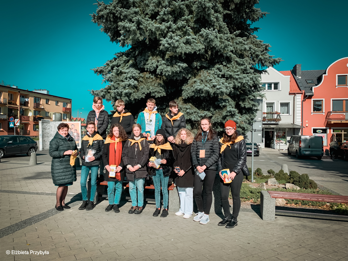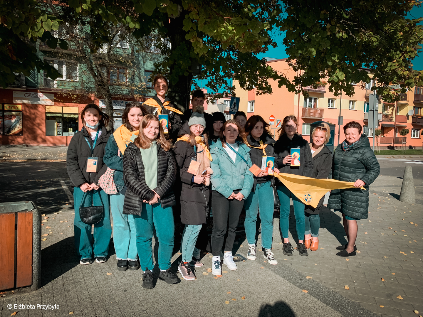 W niedzielę 10.10.2021 roku, w ramach akcji "Budujemy żywy pomnik Jana Pawła II" nasi uczniowie z klasy 8e, 8d i 8f pod opieką Pani Agaty Samek i Elżbiety Przybyły uczestniczyli jako wolontariusze w akcji charytatywnej, której celem było zebranie funduszy na stypendia dla najzdolniejszej młodzieży małych miast i wsi Fundacji "Dzieło Nowego Tysiąclecia".