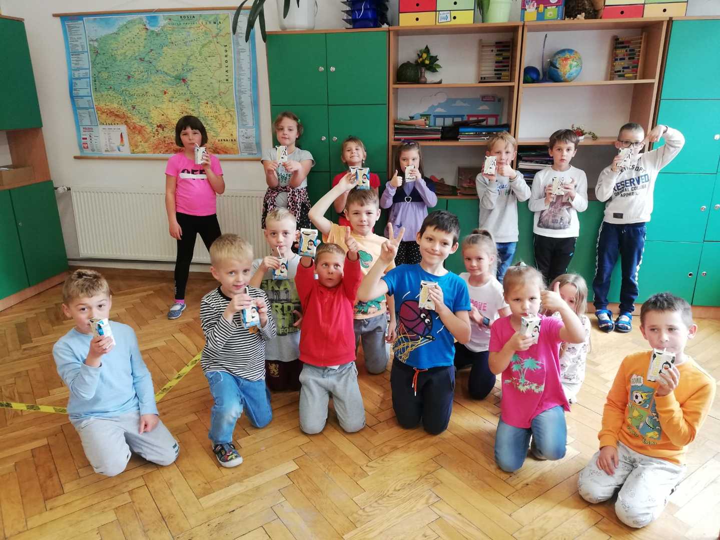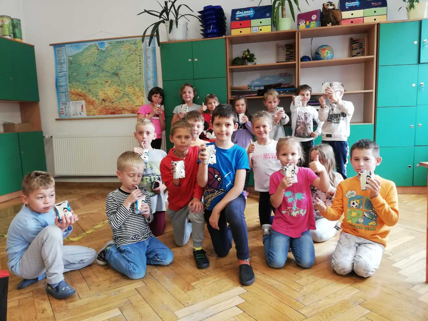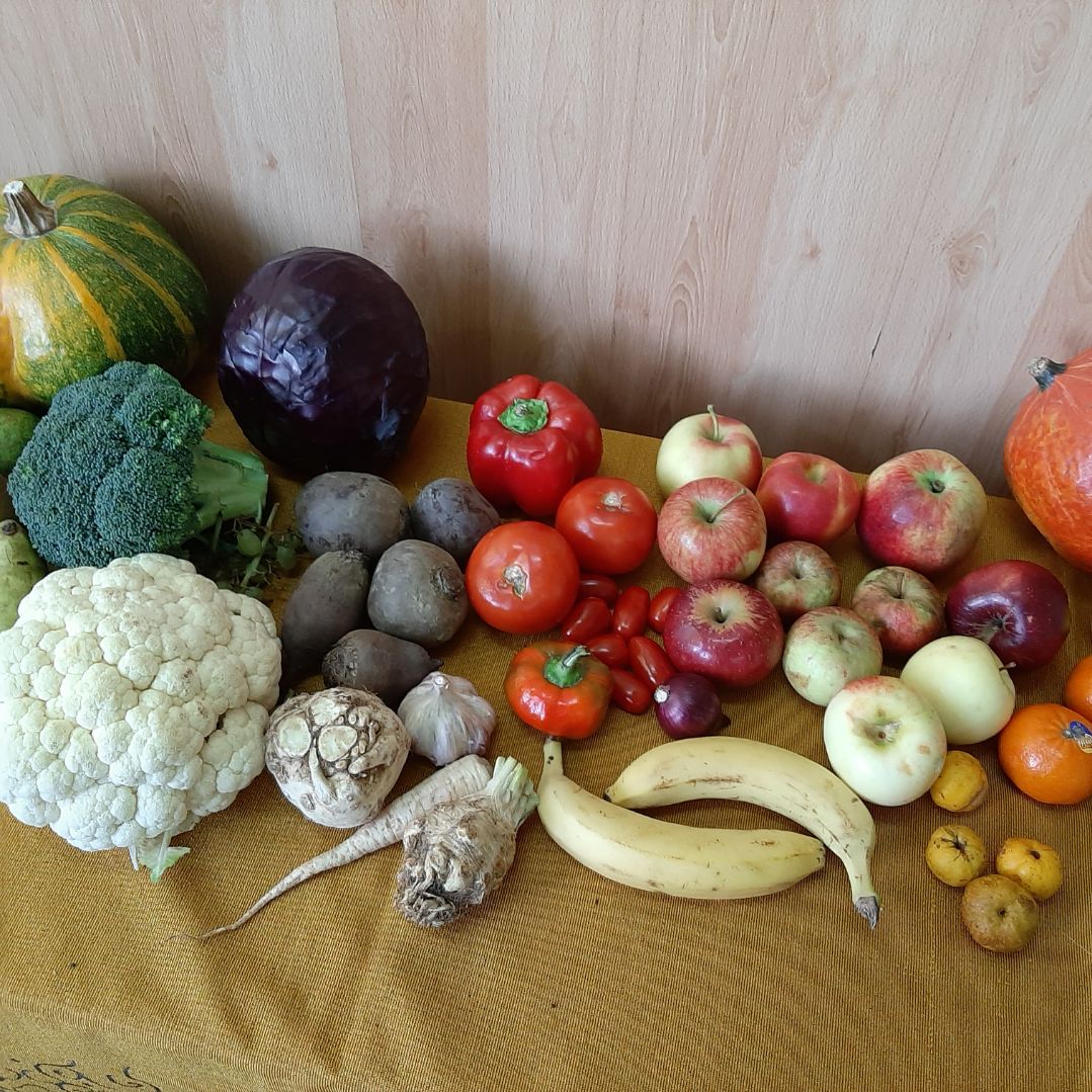 Przez 12 tygodni dzieci z klas I-V naszej szkoły otrzymywać będą 3 razy w tygodniu owoce, warzywa i produkty mleczne. Będziemy uczyć się zasad zdrowego odżywiania, w szczególności poznawać korzyści diety bogatej w owoce, warzywa i produkty mleczne, a także zdobywać wiedzę na temat ich pochodzenia, uprawy i produkcji oraz m.in. jak postępować, aby nie marnować żywności. Obejrzeliśmy już część filmów z serii edukacyjnej „Ekipa Chrumasa gotuje” i wysłuchaliśmy pierwsze zaproponowane słuchowiska. Przygotowaliśmy wystawkę owoców i warzyw na korytarzu szkolnym oraz gazetkę o kolorach i właściwościach wspomnianych produktów.