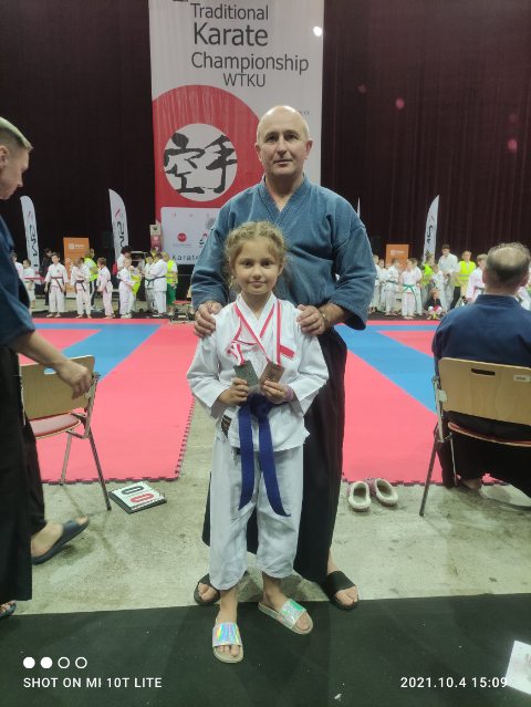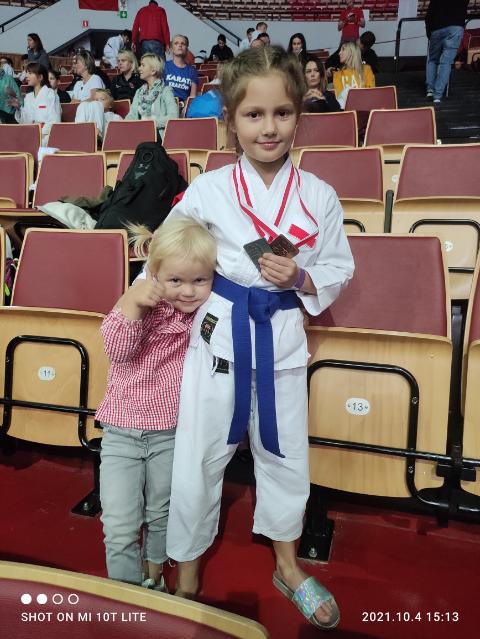 Amelia Kielar uczennica klasy III a zdobyła srebrny medal w kata indywidualnym 5-4 kyu oraz brązowy medal w kumite 5-4 kyu w Pucharze Europy Dzieci w Karate Tradycyjnym 2021 w Katowicach. To niesamowite osiągnięcie!