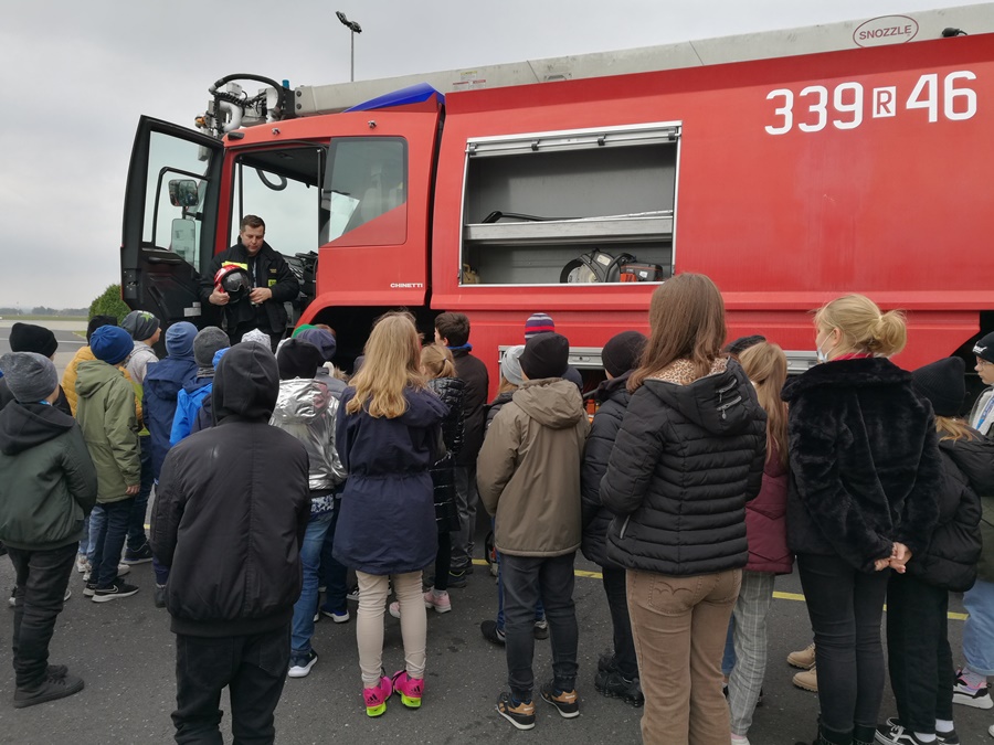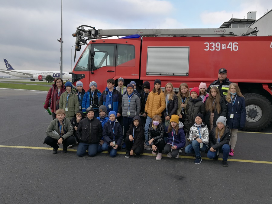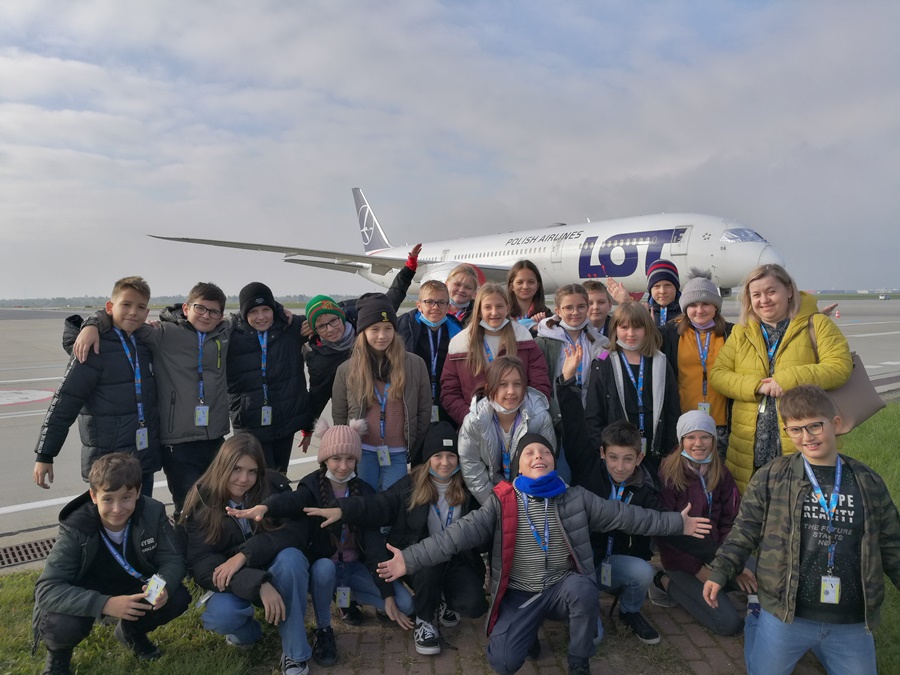 12 X 2021 roku klasy V a i V c wraz z wychowawczyniami: p. Dorotą Puźniak i p. Eweliną Hek wybrały się na wycieczkę do Rzeszowa. Wszyscy wstawali skoro świt, by tuż po ósmej znaleźć się już na lotnisku w Jasionce. Młodzi podróżnicy zwiedzili terminal, taras widokowy, przeszli kontrolę osobistą, widzieli lądujący samolot, spotkali się ze strażakami pracującymi na lotnisku. Nauczyli się odczytywać informacje z tablic przylotów i odlotów. O 11.00 wszyscy zasiedli na widowni w Teatrze Maska, by obejrzeć spektakl pt. „Biruta i tajemnica rzeki”. Przedstawienie skłaniało do refleksji nad tym, czy ukrywać swoje uczucia i emocje, czy obcy to ktoś zły, a otwarcie na innych jest nikomu niepotrzebne? Po spektaklu uczniowie zwiedzili Muzeum Dobranocek, gdzie zrobili sobie mnóstwo zdjęć. Później dali upust energii, skacząc do woli w parku trampolin przez całą godzinę. Wycieczkę zakończył posiłek w McDonald’s. Piątoklasiści wrócili do domów pełni wrażeń z wycieczki i bogatsi o nowe doświadczenia. Już myślą o kolejnej wyprawie…