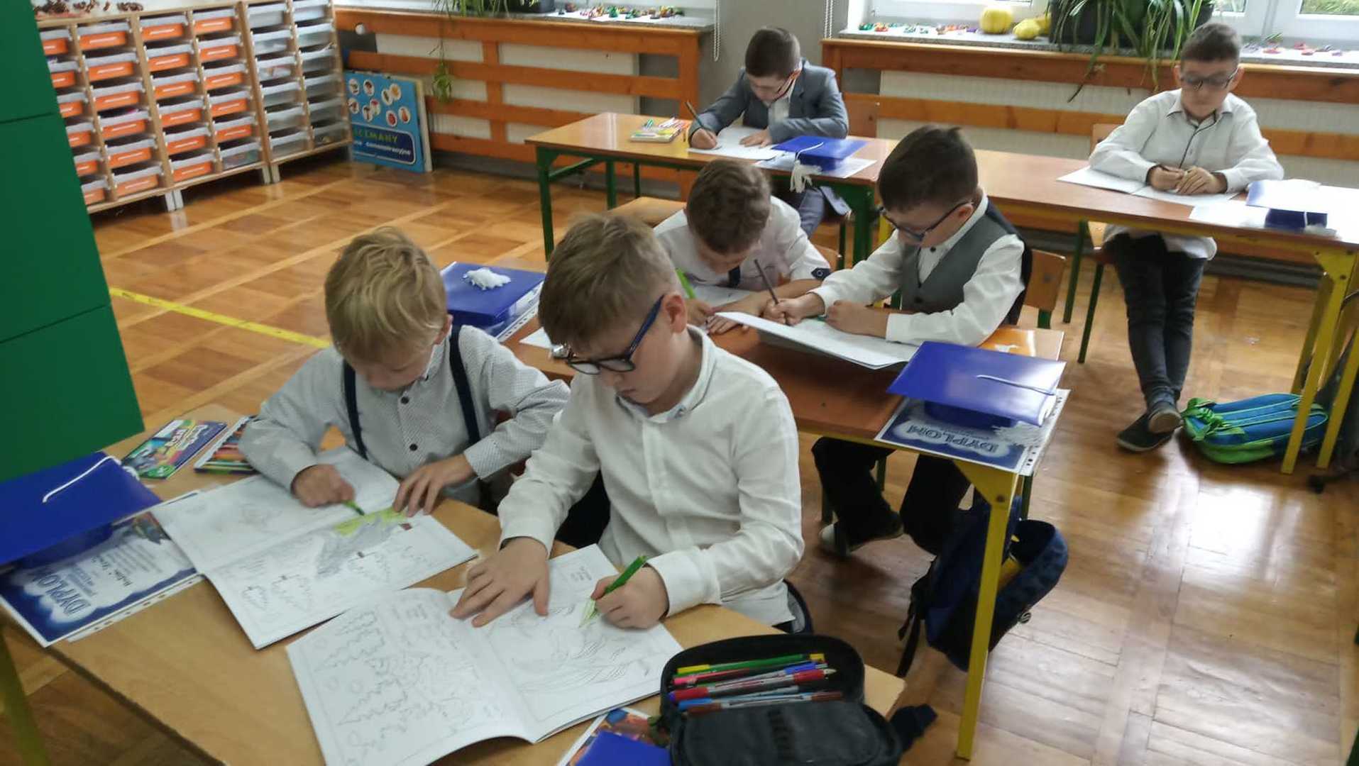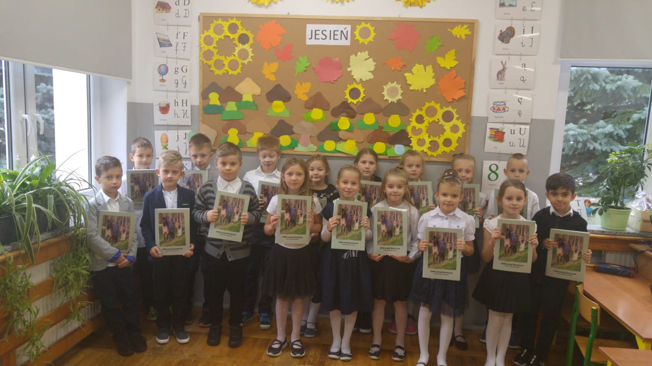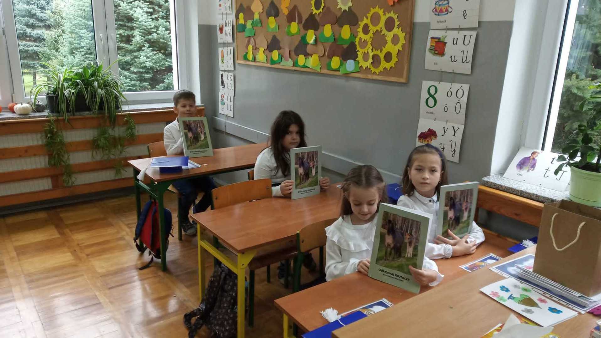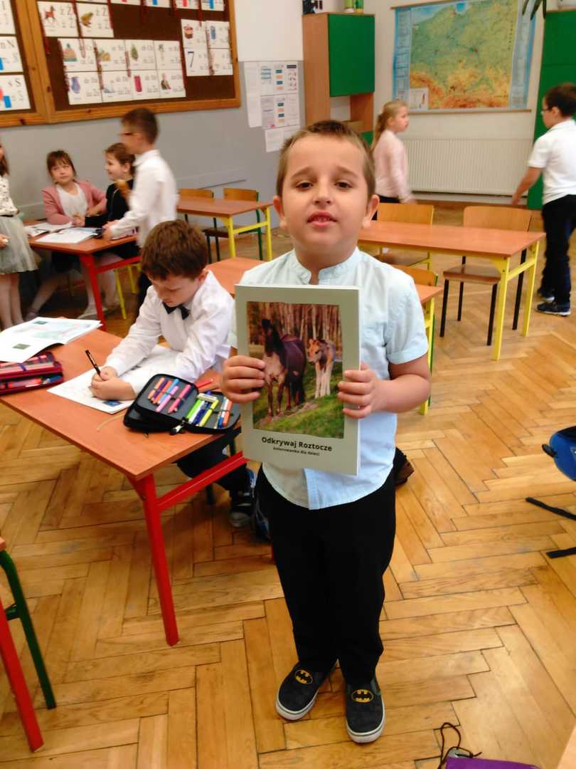 Dzieci z klas pierwszych otrzymały od Prezesa Euroregionu Roztocze Wojciecha Żukowskiego materiały edukacyjne pt. "Odkrywaj Roztocze–kolorowanka dla dzieci". Publikacja powstała w ramach projektu dofinansowanego ze środków Wojewódzkiego Funduszu Ochrony Środowiska i Gospodarki Wodnej w Lublinie. Znajdują się w niej ciekawostki związane z bogactwem przyrodniczym Roztocza, miejsca objęte ochroną przyrody, chronione gatunki roślin i zwierząt oraz obiekty o dużej wartości historyczno–kulturowej. Wydawnictwo zawiera również łamigłówki – krzyżówkę, rebus oraz wkładkę z naklejkami przedstawiającymi zawartość kolorowanki. Przekazana publikacja będzie pomocna w edukacji przyrodniczej i regionalnej. Dziękujemy!