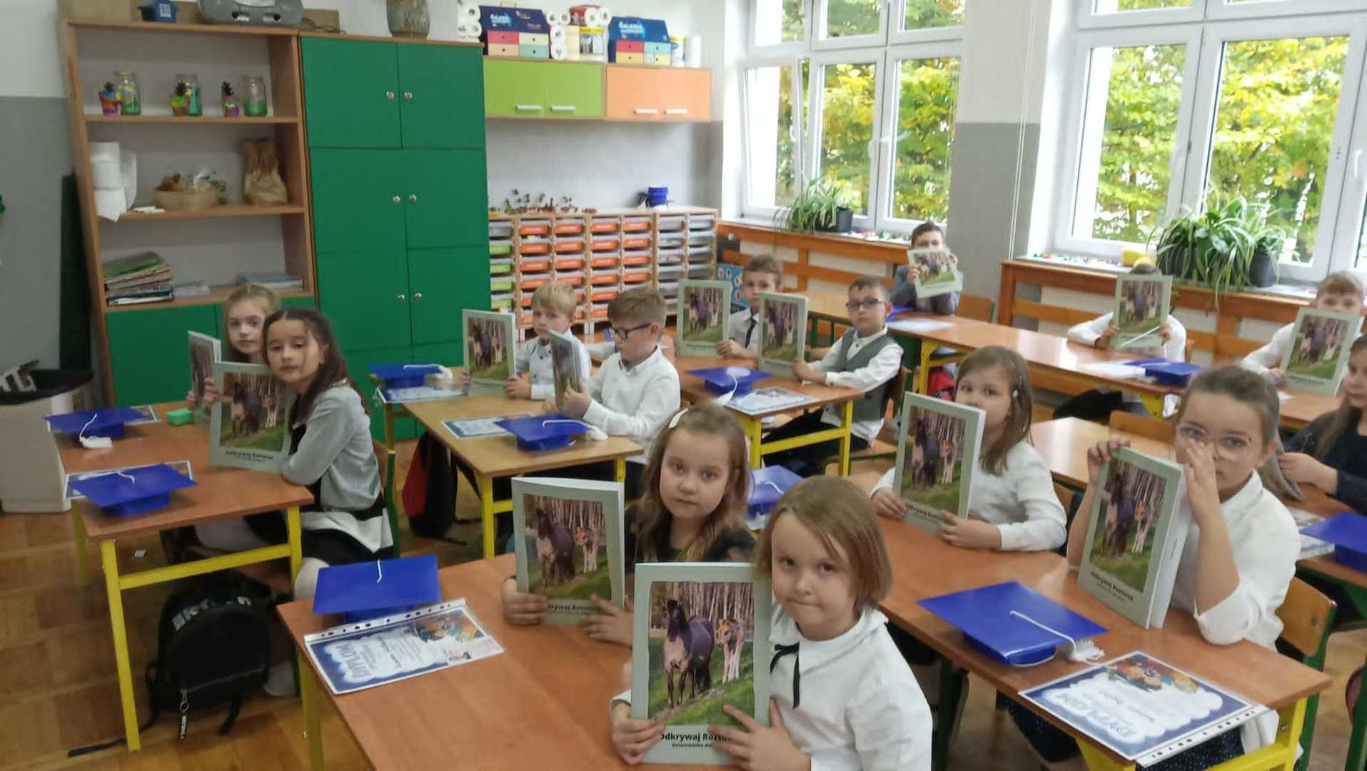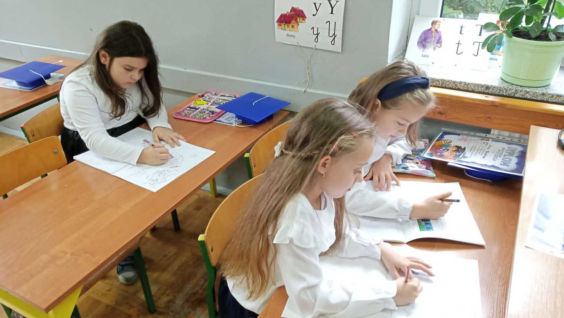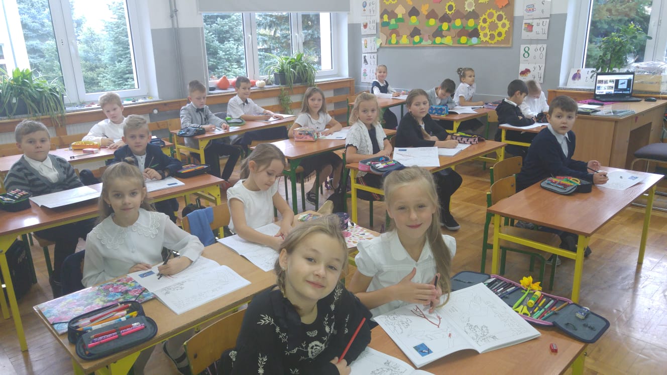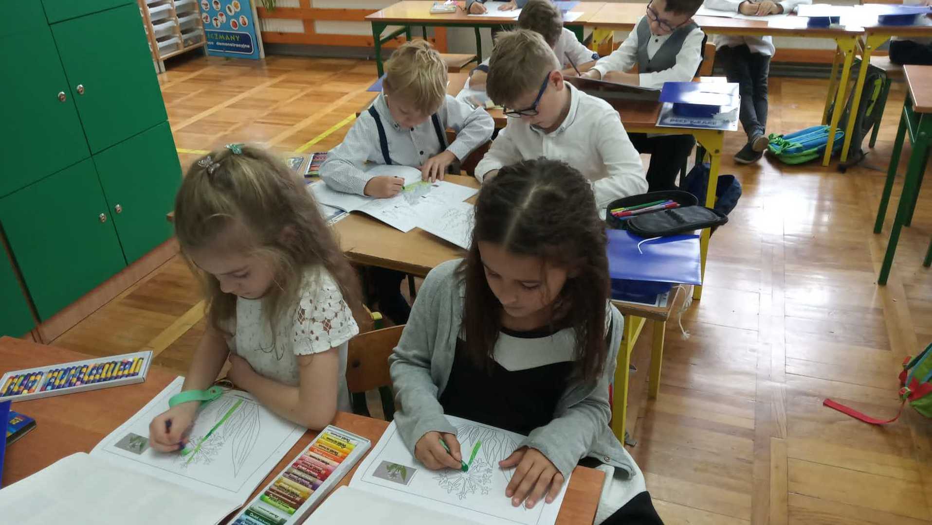 Dzieci z klas pierwszych otrzymały od Prezesa Euroregionu Roztocze Wojciecha Żukowskiego materiały edukacyjne pt. "Odkrywaj Roztocze–kolorowanka dla dzieci". Publikacja powstała w ramach projektu dofinansowanego ze środków Wojewódzkiego Funduszu Ochrony Środowiska i Gospodarki Wodnej w Lublinie. Znajdują się w niej ciekawostki związane z bogactwem przyrodniczym Roztocza, miejsca objęte ochroną przyrody, chronione gatunki roślin i zwierząt oraz obiekty o dużej wartości historyczno–kulturowej. Wydawnictwo zawiera również łamigłówki – krzyżówkę, rebus oraz wkładkę z naklejkami przedstawiającymi zawartość kolorowanki. Przekazana publikacja będzie pomocna w edukacji przyrodniczej i regionalnej. Dziękujemy!