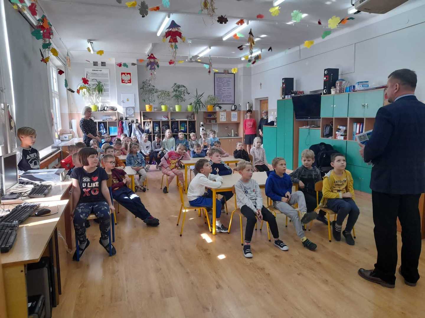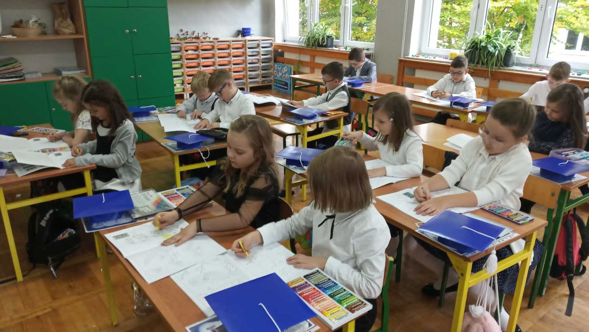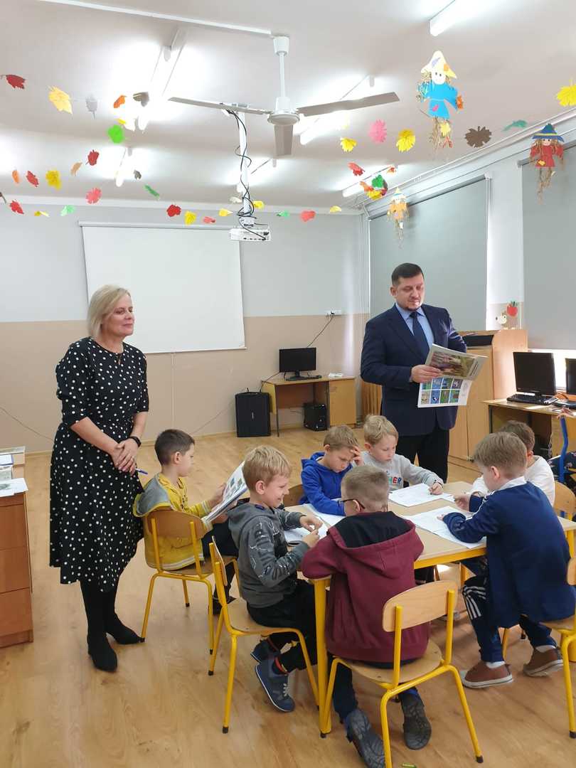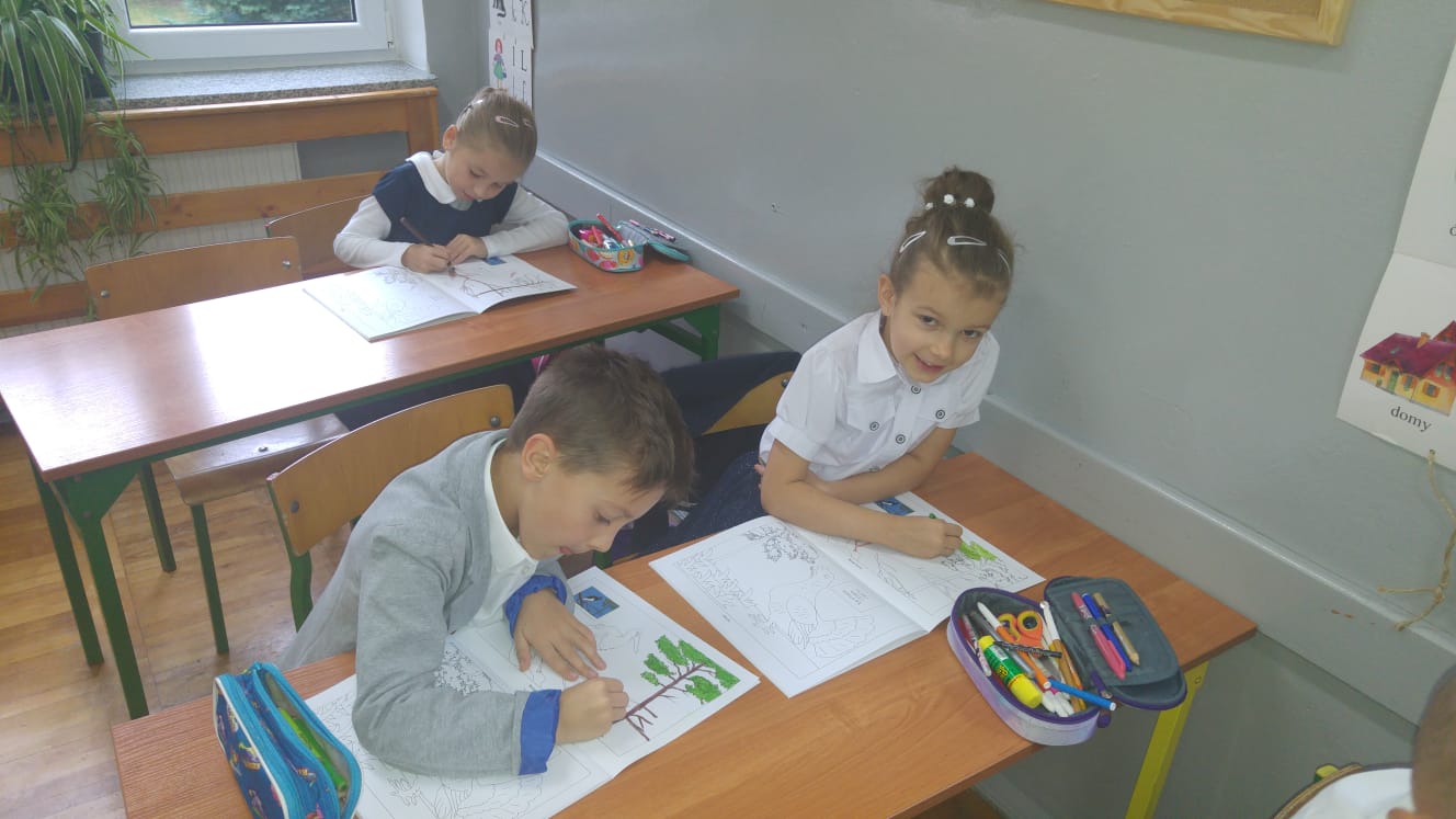 Dzieci z klas pierwszych otrzymały od Prezesa Euroregionu Roztocze Wojciecha Żukowskiego materiały edukacyjne pt. "Odkrywaj Roztocze–kolorowanka dla dzieci". Publikacja powstała w ramach projektu dofinansowanego ze środków Wojewódzkiego Funduszu Ochrony Środowiska i Gospodarki Wodnej w Lublinie. Znajdują się w niej ciekawostki związane z bogactwem przyrodniczym Roztocza, miejsca objęte ochroną przyrody, chronione gatunki roślin i zwierząt oraz obiekty o dużej wartości historyczno–kulturowej. Wydawnictwo zawiera również łamigłówki – krzyżówkę, rebus oraz wkładkę z naklejkami przedstawiającymi zawartość kolorowanki. Przekazana publikacja będzie pomocna w edukacji przyrodniczej i regionalnej. Dziękujemy!