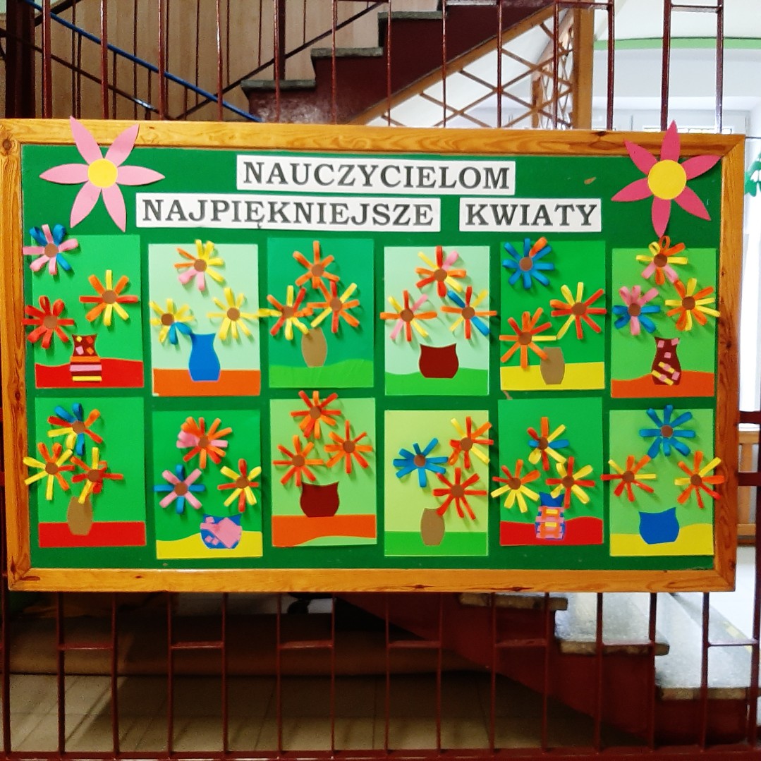 W związku z Dniem Edukacji Narodowej, czyli świętem pracowników związanych z pracą w szkołach, przygotowaliśmy kwiaty oraz wystawę. Dla nas pracują nie tylko nauczyciele, ale także pracownicy administracji, panie sprzątaczki, panie w stołówce, bibliotece, pani stomatolog oraz pani pielęgniarka.
