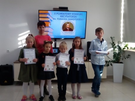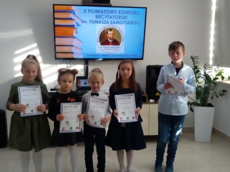 3 X 2021 r. w Bibliotece Miejskiej w Tomaszowie Lubelskim odbył się X Finał Powiatowego Konkursu Recytatorskiego im. Tomasza Zamoyskiego. Jury w składzie: p. Maria Kozyra, p. Elżbieta Dziuba i p. Anna Kięczkowska wyłoniły laureatów konkursu i osoby wyróżnione. Dzieci podzielono na kilka grup wiekowych.