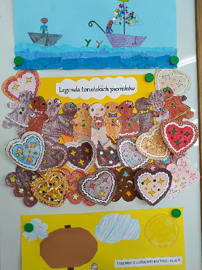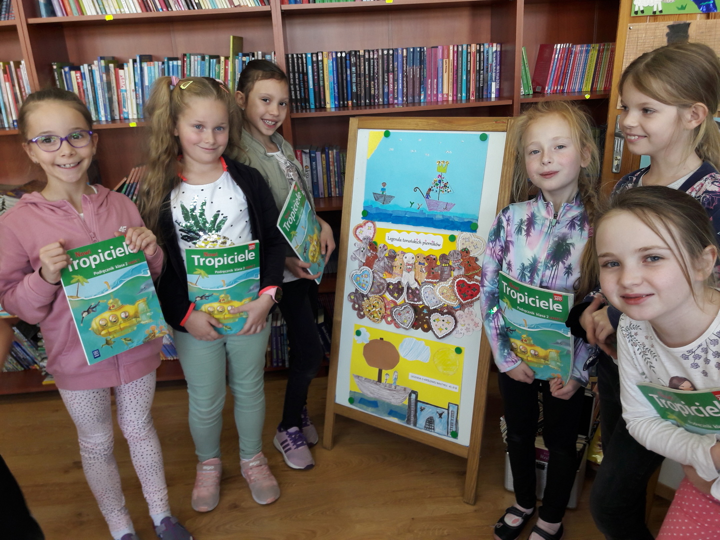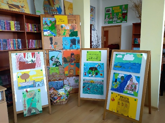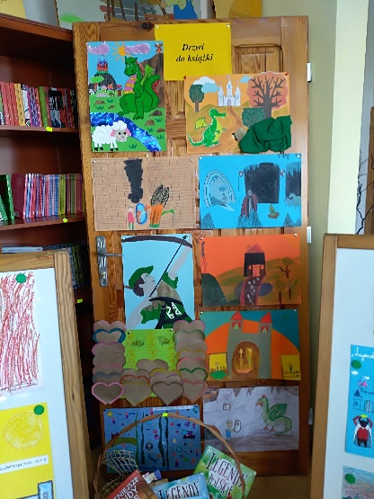 Każda klasa wybierała i czytała jedną legendę lub baśń. Po wysłuchaniu, klasa wspólnie wykonywała plakat (technika dowolna), który przystroił drzwi biblioteki lub swojej sali lekcyjnej. Wszystkie prace były ciekawe i wyjątkowe. Zachwycająco prezentowały się postacie baśniowe, a obok nich zamki, drzewa …itp.