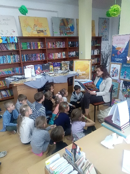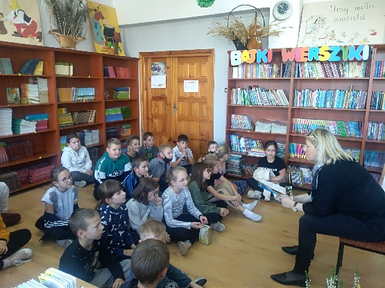 Najmłodsi uczniowie zostali przyjęci w poczet czytelników szkolnej biblioteki. Pierwszaki zostali zapoznani z zasadami korzystania ze zbiorów biblioteki oraz zasadami poszanowania książek (uczniowie z Klubu Przyjaciół Biblioteki wystawili mały spektakl o szanowaniu książek). Na zakończenie spotkania nowi czytelnicy otrzymali zakładki do książki.