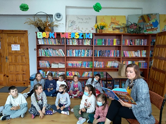 Stare przysłowie mówi: „Dziecko, które czyta, będzie dorosłym, który myśli”. Uczniowie, którzy działają w Klubie Przyjaciół Biblioteki mieli proste zadanie: przeczytać swoim młodszym kolegom z klas I – III bajkę, baśń. Po wysłuchaniu uczniowie otrzymywali kolorowankę z bohaterami polskich bajek, mieli za zadanie zapisać tytuł bajki i pokolorować obrazek. Dzieci poradziły sobie doskonale, a przy okazji narodziła się refleksja o mądrości zawartej w bajkach, o chwilach przyjemności, jakie daje ich czytanie. Czytać warto zawsze, a w październiku warto o tym przypominać.