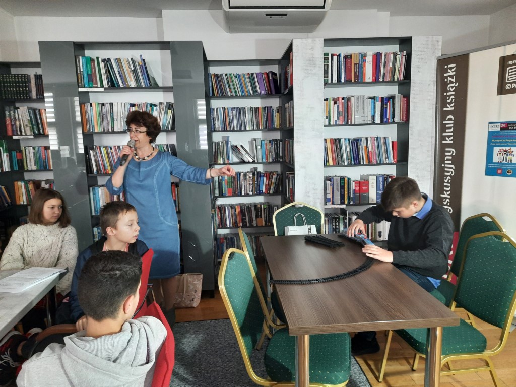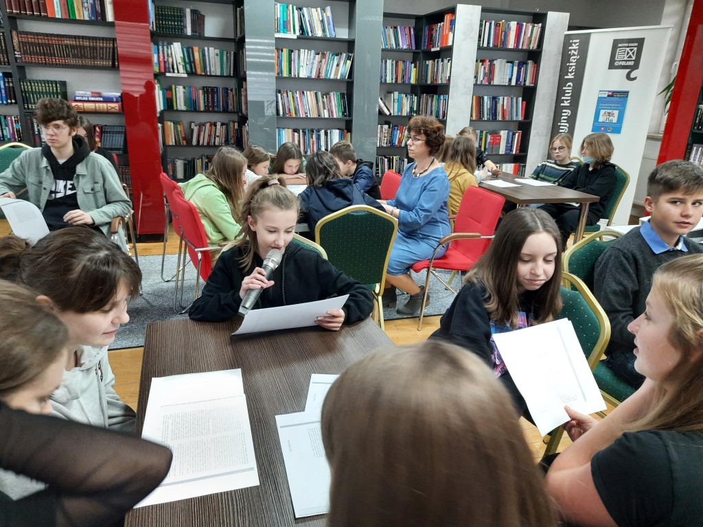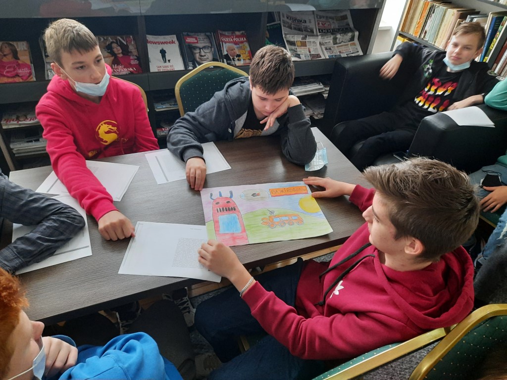 W związku z faktem, iż rok 2021 został ustanowiony Rokiem Stanisława Lema oraz z przypadającą na ten rok setną rocznicą Jego urodzin, członkowie Młodzieżowego Dyskusyjnego Klubu Książki oraz uczniowie klas VII c oraz VII d mieli okazję uczestniczyć w lekcji bibliotecznej poświęconej życiu i twórczości tego autora. Przeczytana podczas lekcji bajka autorstwa Stanisława Lema "Trzej elektrycerze" została omówiona i przeanalizowana pod kierunkiem pani Anny Wolczyk, która przygotowała i przeprowadziła dla nas lekcję, dodatkowo uatrakcyjnioną przez prezentację multimedialną oraz scenkę z życia młodego Lema przygotowane przez uczniów kl. VII d.