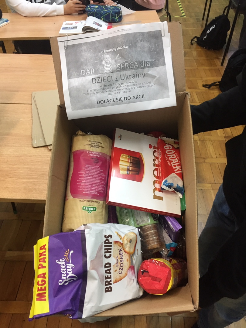 W odpowiedzi na zaproszenie Caritas przeprowadziliśmy w szkole zbiórkę darów dla dzieci z Ukrainy. Zebrane słodycze i środki chemiczne przekazaliśmy do siedziby Caritas Diecezji Zamojsko-Lubaczowskiej.