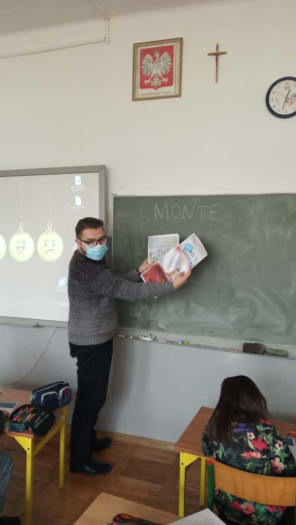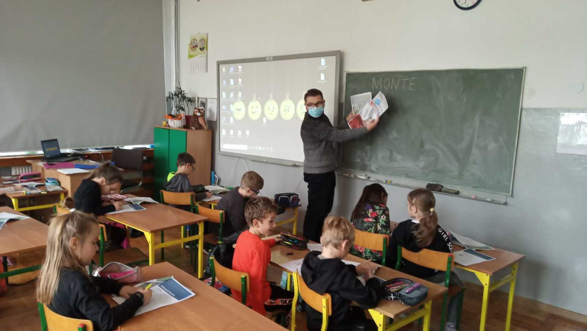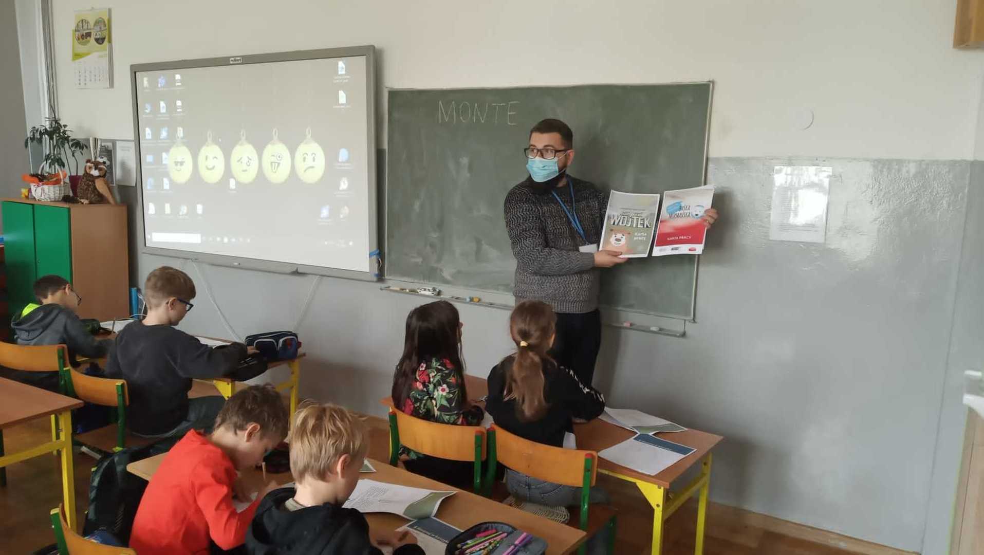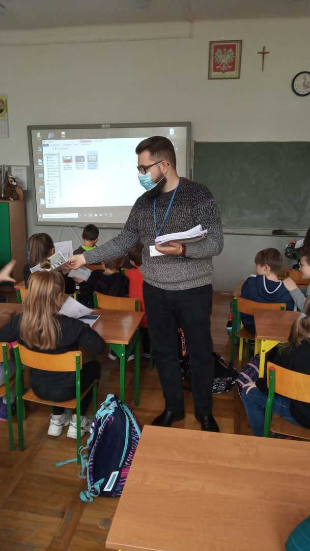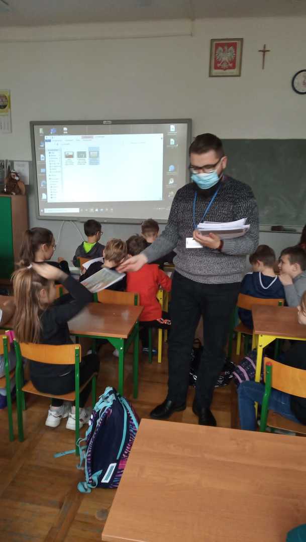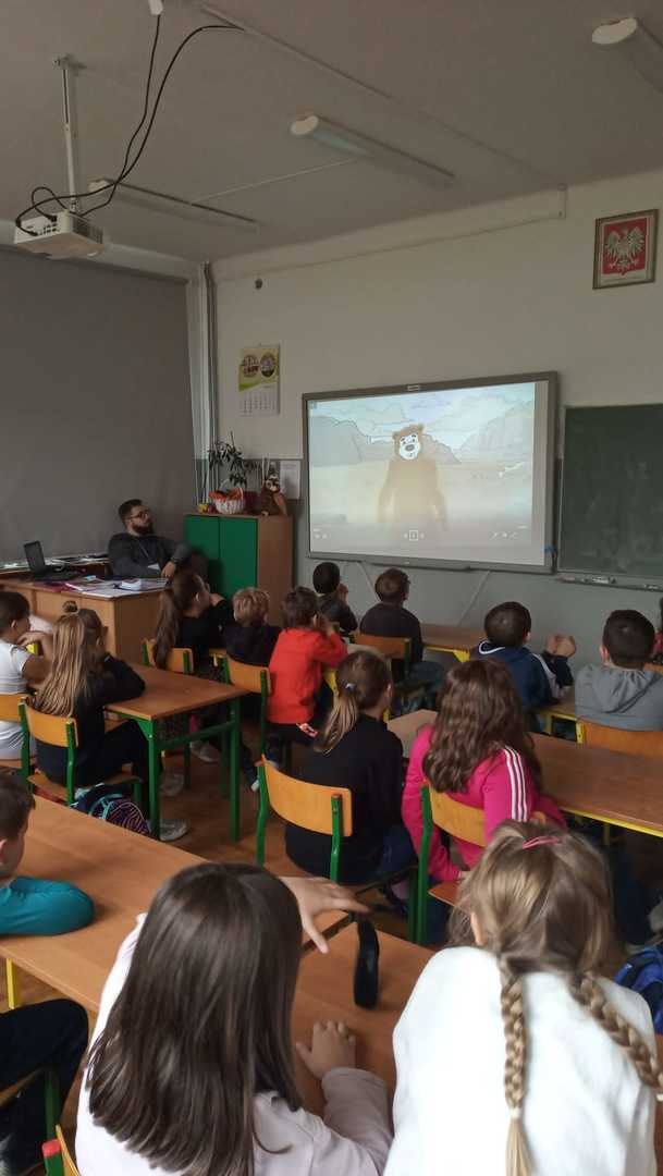 8 listopada 2021 roku wszystkie klasy pierwsze odwiedzili bardzo ważni goście. Byli to pracownicy lubelskiego oddziału IPN. Przybyli do nas przed Świętem Niepodległości, aby opowiedzieć o zwierzętach, które odegrały dużą rolę w walce Polaków o wolość. Uczniowie obejrzeli film o ulubionym koniu Marszałka Józefa Piłsudskiego „Kasztanka”, a także filmy „Baśka Murmańska” i „Niedźwiedź Wojtek”. Każdy pierwszoklasista otrzymał karty pracy z zadaniami do samodzielnego wykonania. Były tam rebusy, krzyżówki i obrazki do kolorowania. Dzięki spotkaniu z pracownikami IPN uczniowie w ciekawy sposób zapoznali się z historią naszego kraju.