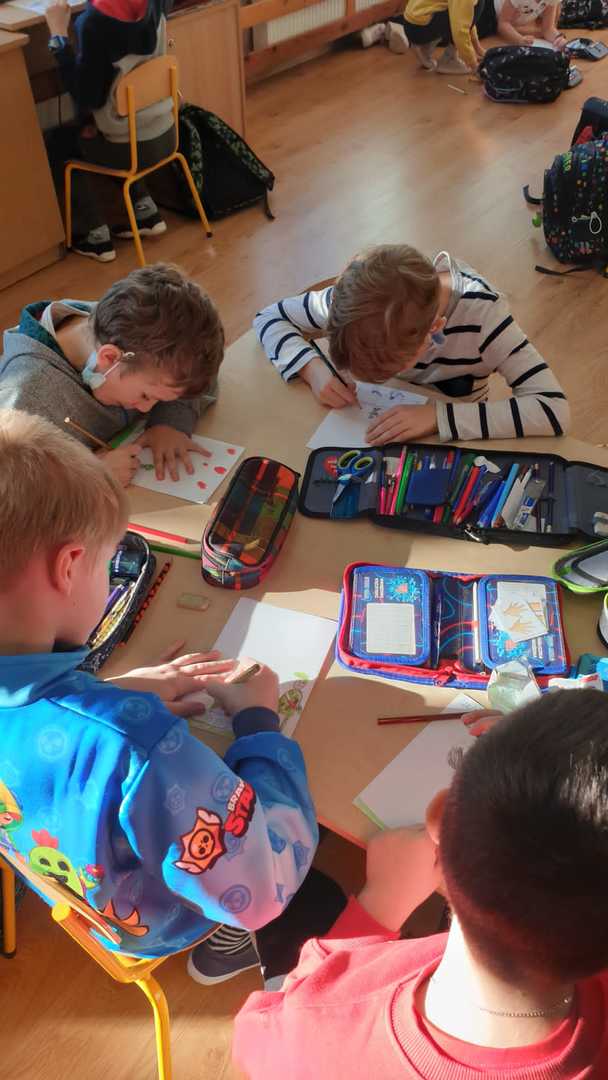 A tak wyglądała praca najmłodszych uczniów naszej szkoły. Efekty przerosły nasze najśmielsze oczekiwania. Dzieci wykazały się pomysłowością i zaangażowaniem. No i prawie w ogóle nie było błędów ortograficznych...