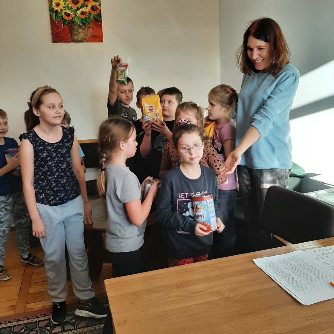 Z inicjatywy pani Oli Biszczanik - szkolnej psycholog i pani pedagog Małgosi Owsickiej zbieraliśmy karmę dla Stowarzyszenia Na Rzecz Zwierząt Adopcje - Tomaszów Lubelski. Bezdomne zwierzęta potrzebują naszego wsparcia i dlatego chętnie włączyliśmy się do akcji. Zebraliśmy ponad 100 kg różnorodnej karmy, która ma długi okres przydatności do spożycia. Jeżeli ktoś chce się jeszcze dołączyć, zapraszamy.