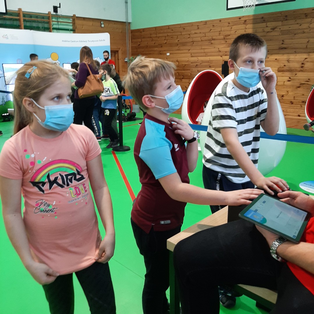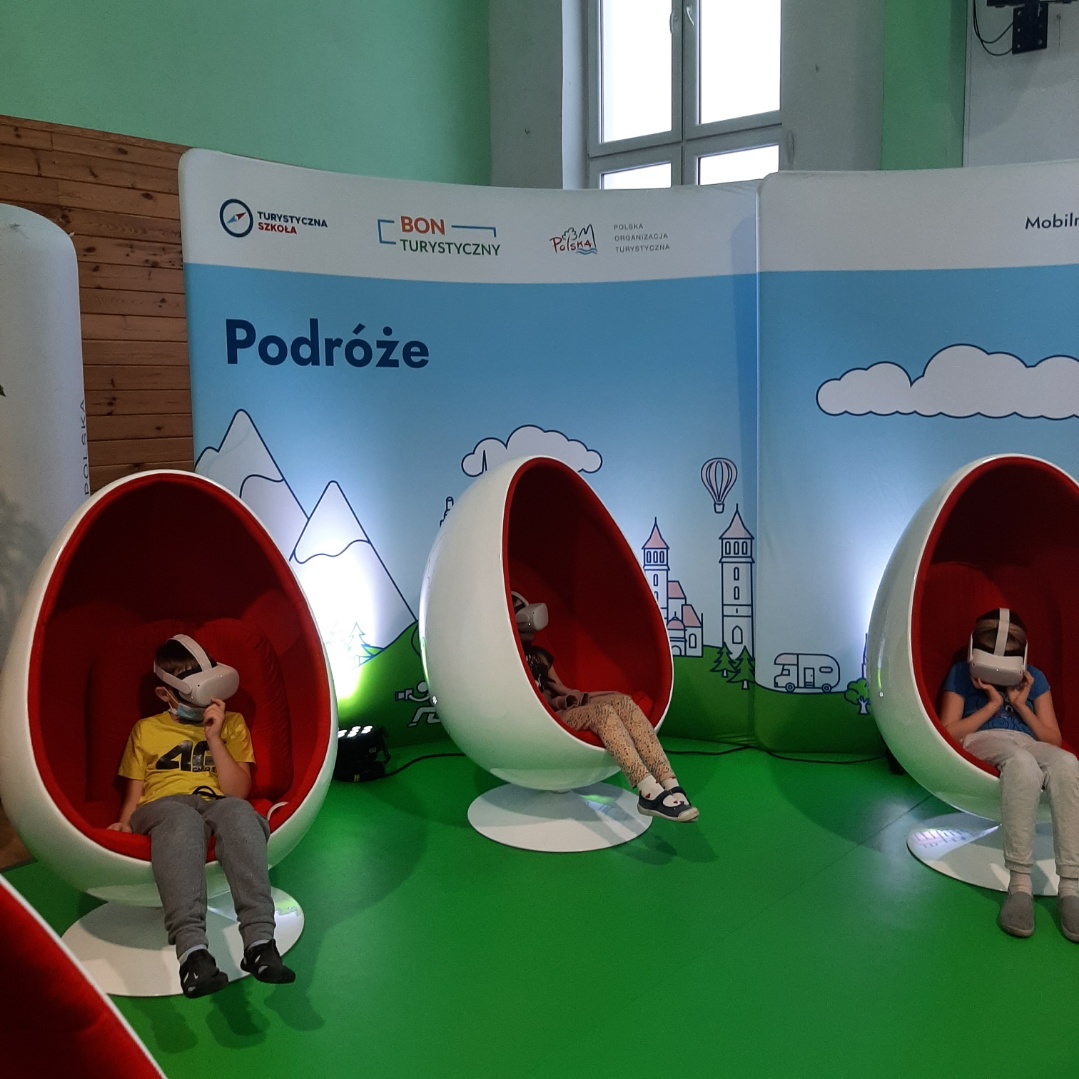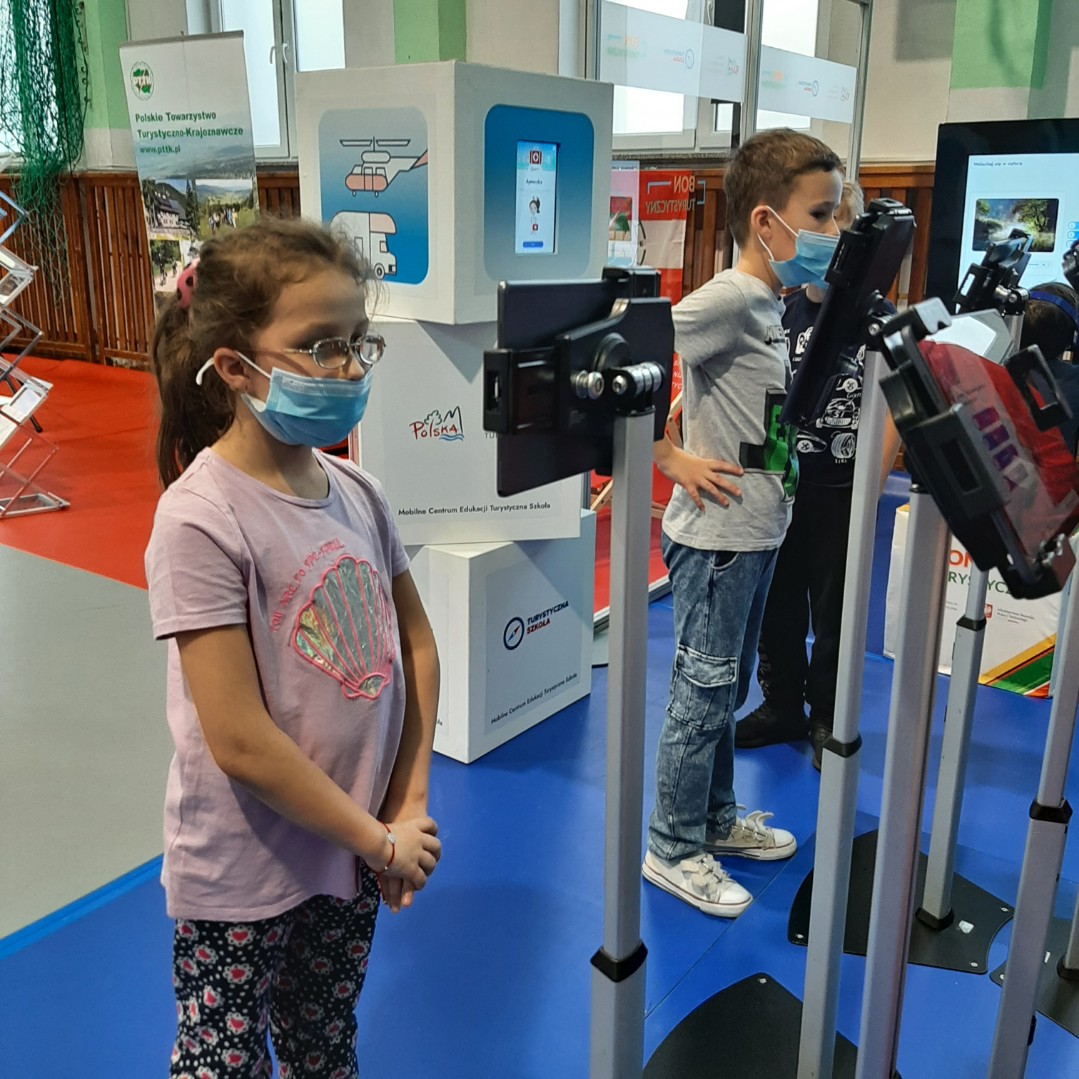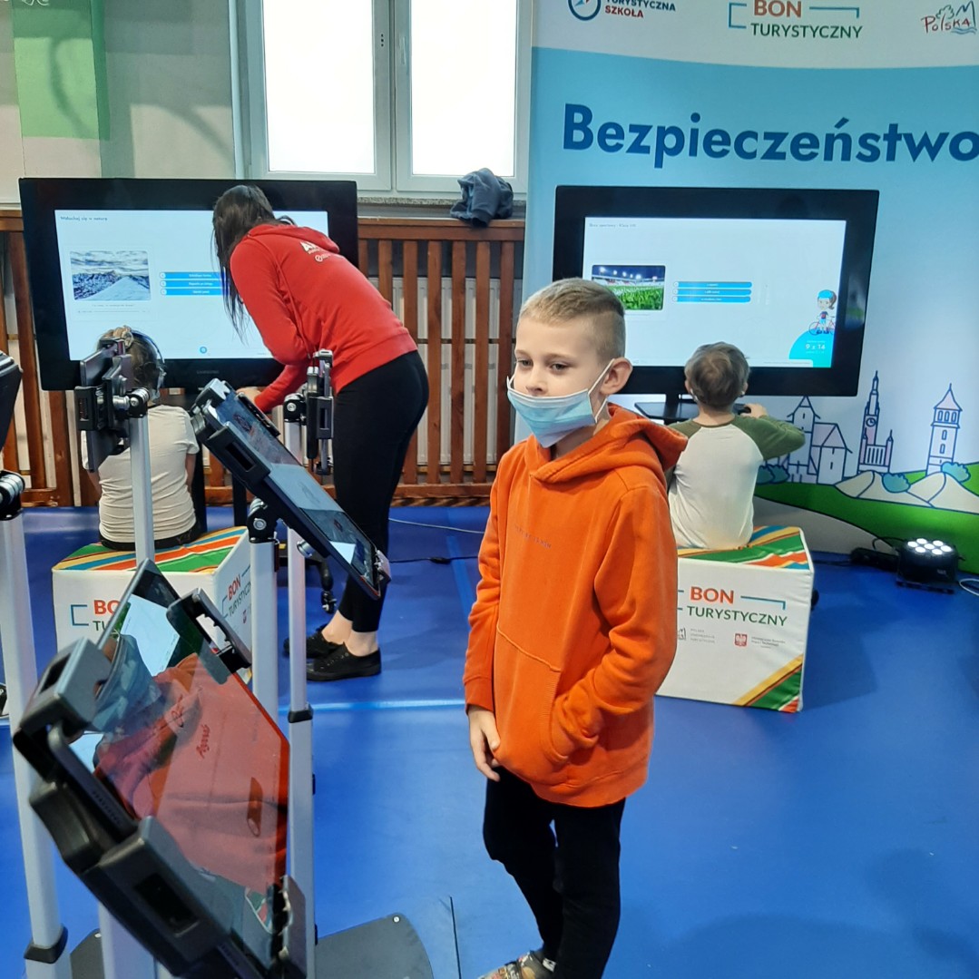 10 grudnia uczestniczyliśmy w edukacyjnym projekcie o nazwie "Mobilne Centrum Edukacji Turystyczna Szkoła” organizowanym przez Polską Organizację Turystyczną. Zobaczyliśmy jak można wykorzystać nowoczesne techniki edukacyjne. Zajęcia prowadzone przez wykwalifikowanych edukatorów były bardzo atrakcyjne dla wszystkich uczestników. Przywitał nas robot Pepe, który odpowiadał na różne pytania. Następnie rozeszliśmy się do różnych stanowisk, gdzie bardzo ciekawie spędziliśmy czas. Zakładając „czarodziejskie” gogle przemieszczaliśmy się w ciekawe miejsca naszego regionu, uczestniczyliśmy w quizach wyświetlanych na ekranach monitorów, sprawdzaliśmy swoją wiedzę w „kole fortuny”, sprawdzaliśmy jak jeździ się na rowerze z elektronicznymi goglami na oczach czy „pływa” kajakiem. Zdobyliśmy wiele nagród w postaci plakatów, breloczków, bidonów czy puzzli. Zajęcia były bardzo zajmujące i przyniosły wiele niezapomnianych emocji.