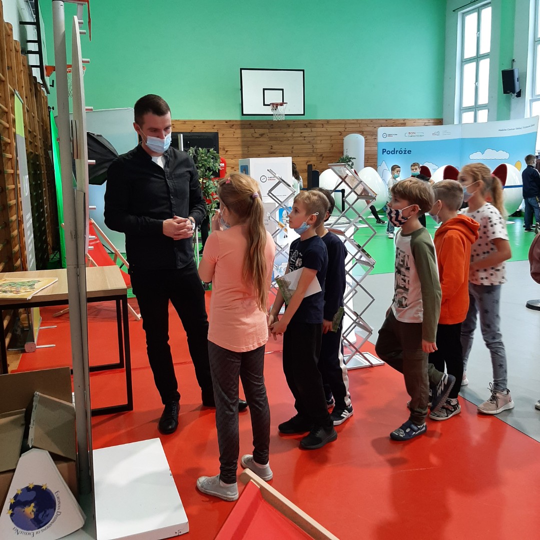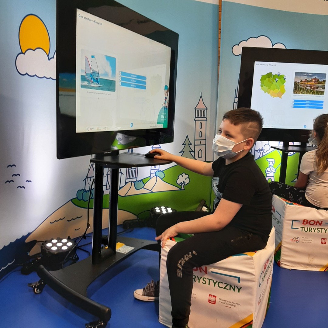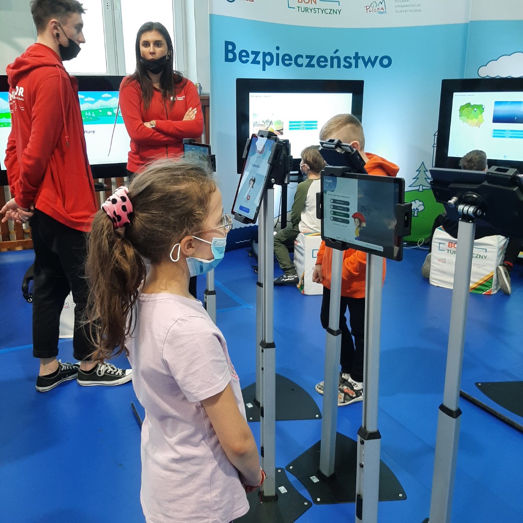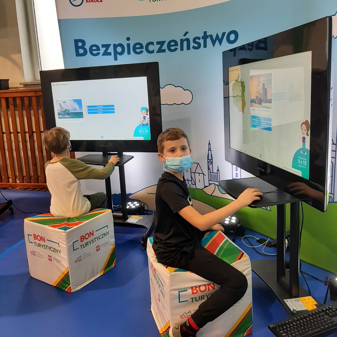 10 grudnia uczestniczyliśmy w edukacyjnym projekcie o nazwie "Mobilne Centrum Edukacji Turystyczna Szkoła” organizowanym przez Polską Organizację Turystyczną. Zobaczyliśmy jak można wykorzystać nowoczesne techniki edukacyjne. Zajęcia prowadzone przez wykwalifikowanych edukatorów były bardzo atrakcyjne dla wszystkich uczestników. Przywitał nas robot Pepe, który odpowiadał na różne pytania. Następnie rozeszliśmy się do różnych stanowisk, gdzie bardzo ciekawie spędziliśmy czas. Zakładając „czarodziejskie” gogle przemieszczaliśmy się w ciekawe miejsca naszego regionu, uczestniczyliśmy w quizach wyświetlanych na ekranach monitorów, sprawdzaliśmy swoją wiedzę w „kole fortuny”, sprawdzaliśmy jak jeździ się na rowerze z elektronicznymi goglami na oczach czy „pływa” kajakiem. Zdobyliśmy wiele nagród w postaci plakatów, breloczków, bidonów czy puzzli. Zajęcia były bardzo zajmujące i przyniosły wiele niezapomnianych emocji.