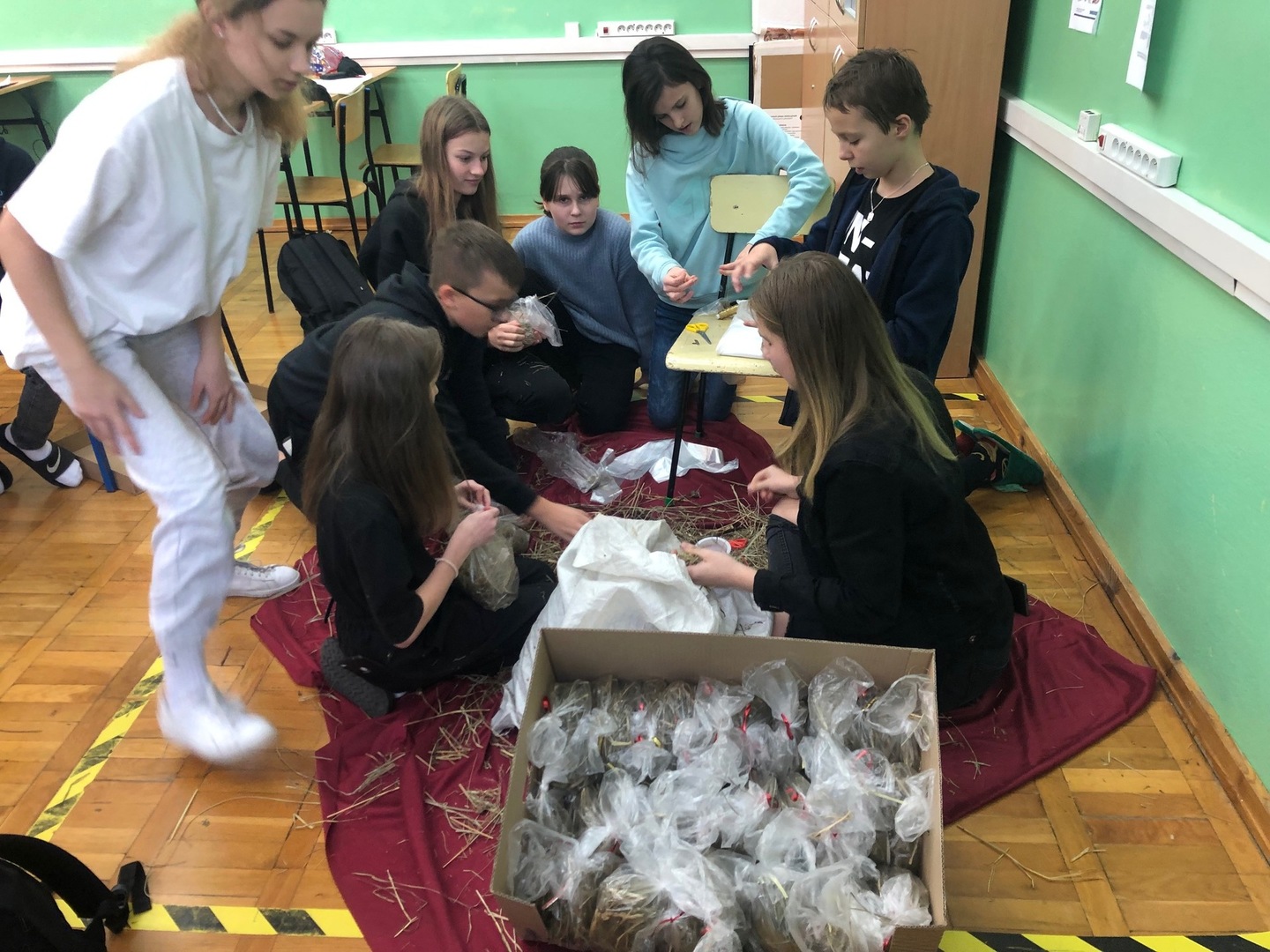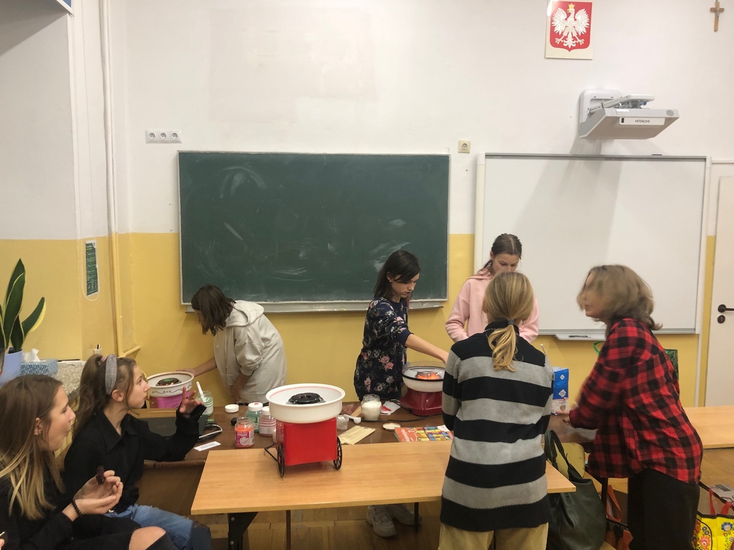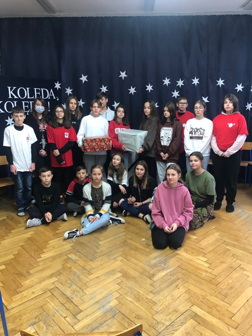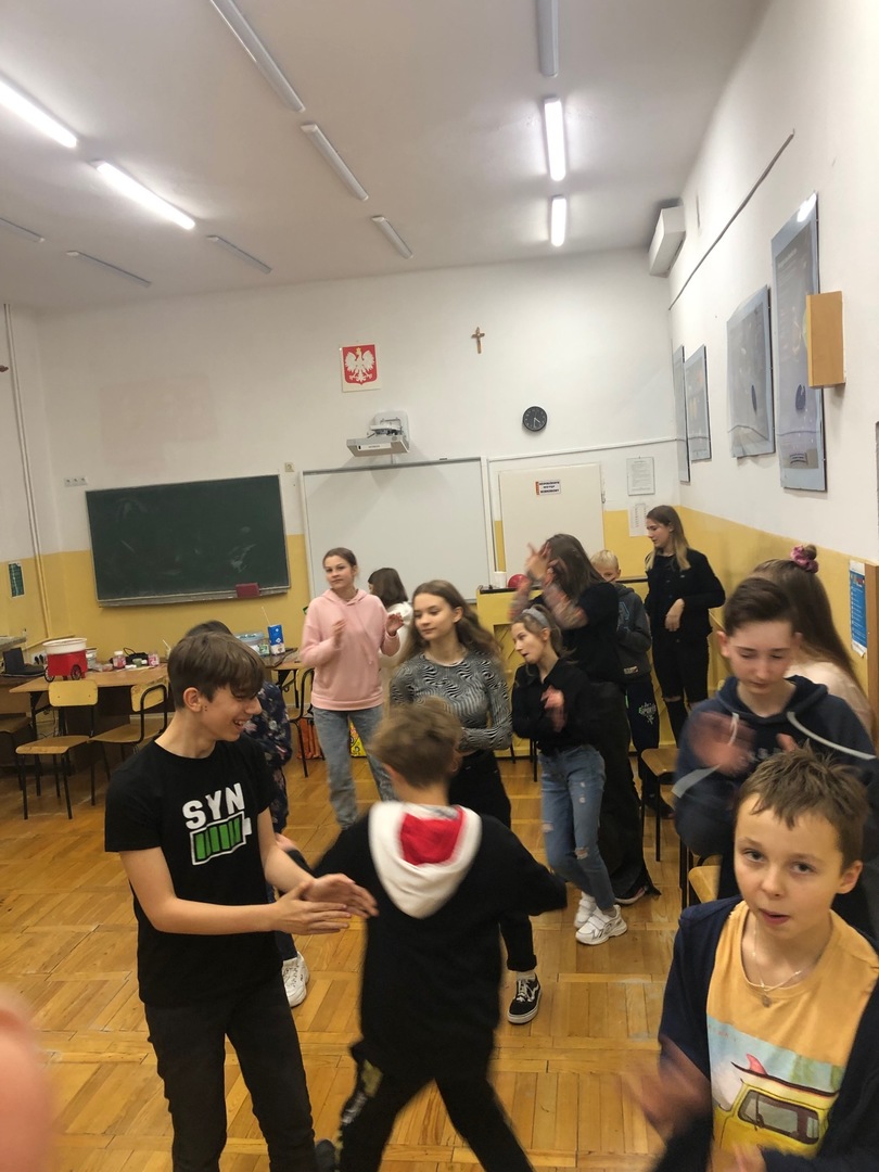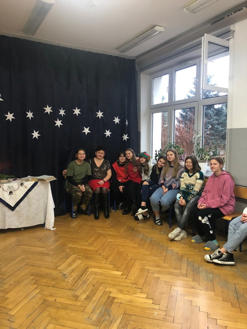W listopadzie odbyło się kolejne nasze spotkanie formacyjne, które zbiegło się w czasie z „Andrzejkami”. Była modlitwa oraz zabawy i tance integracyjne oraz słodki poczęstunek. W czasie tegorocznego Adwentu pod opieką pani Agaty Samek zbieraliśmy fundusze na cele charytatywne. W szkole, wśród sąsiadów i znajomych sprzedaliśmy ponad 200 świec „Wilijne Dzieło Pomocy Dzieciom”. Sprzedawaliśmy również sianko na wigilijny stół. Pozyskanie pieniążki za świece przekazaliśmy na konto Caritas. Z pozostałych przygotowaliśmy paczki świąteczne dla osób potrzebujących z parafii, a także dla naszego kolegi, który przebywa w szpitalu. Jedną paczkę z własnych pieniędzy zorganizowali nasi wolontariusze z klasy 8f . Resztę przeznaczymy na wspólną wycieczkę.