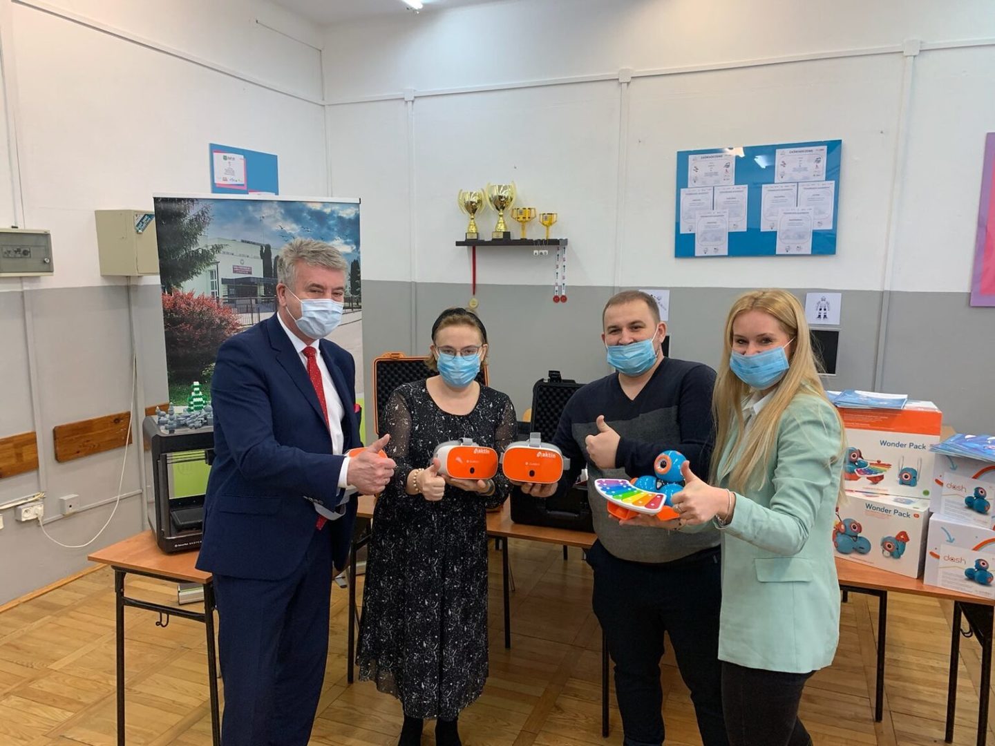 W ostatni dzień roku reprezentacja firmy Monika Kirol i Marek Dorsz dostarczyli sprzęt na ręce Pani Dyrektor Renaty Śrutwy-Krupy, Pana burmistrza Wojciecha Żukowskiego i koordynatora projektu Mateusza Stefanika. Projekt Laboratoria przyszłości jest rządowym projektem mającym na celu stworzyć w szkołach nowoczesne pracownie techniki, robotyki, informatyki i nie tylko. Każda szkoła w Polsce otrzymała pieniądze na realizacje i zakup sprzętu. A tym samym dzieci już od nowego roku szkolnego będą mogły korzystać z otrzymanych sprzętów i wejść na wyższy poziom edukacji, który zaczyna być dostosowany do coraz to bardziej nowoczesnego otaczającego nas świata.