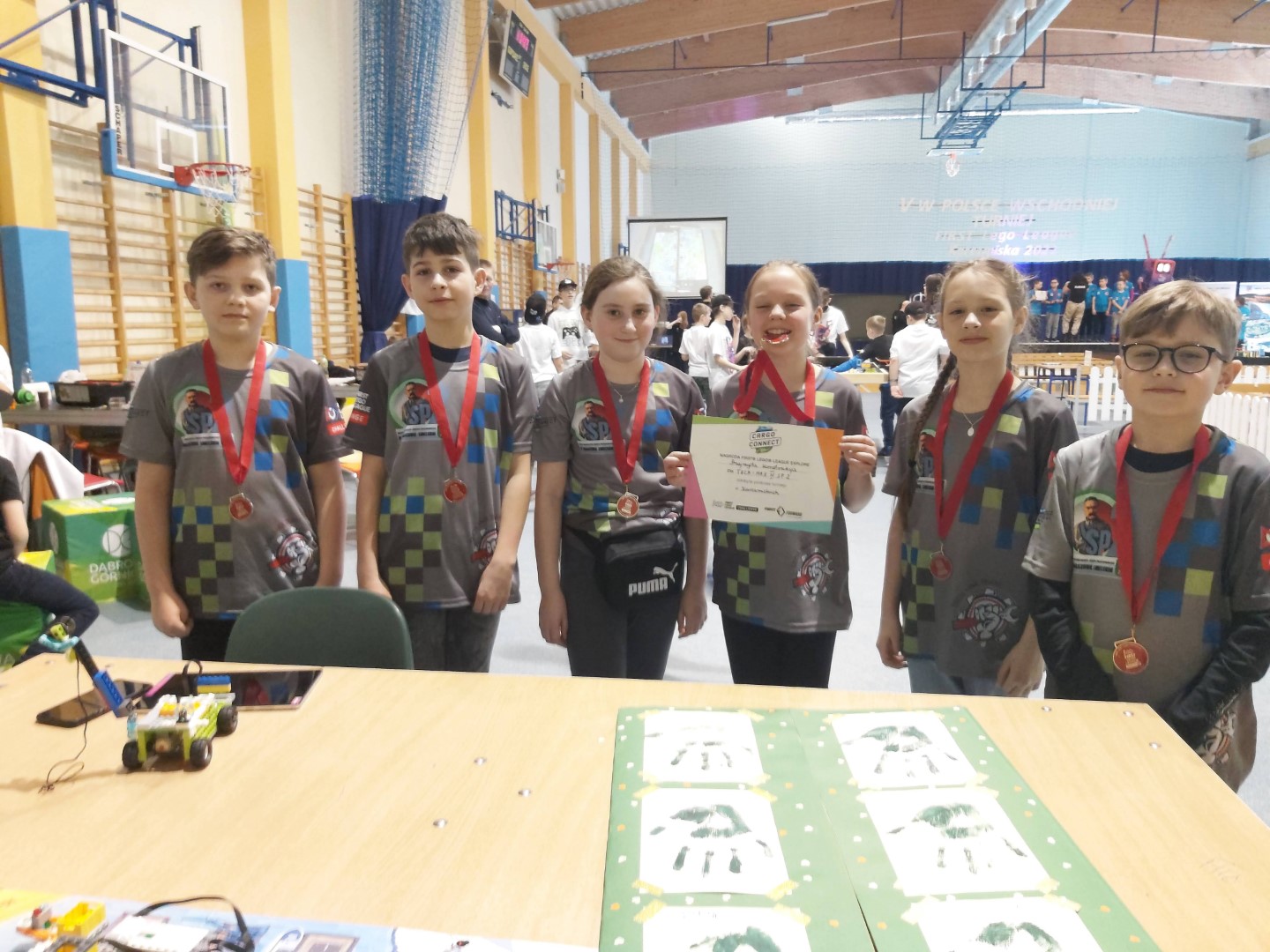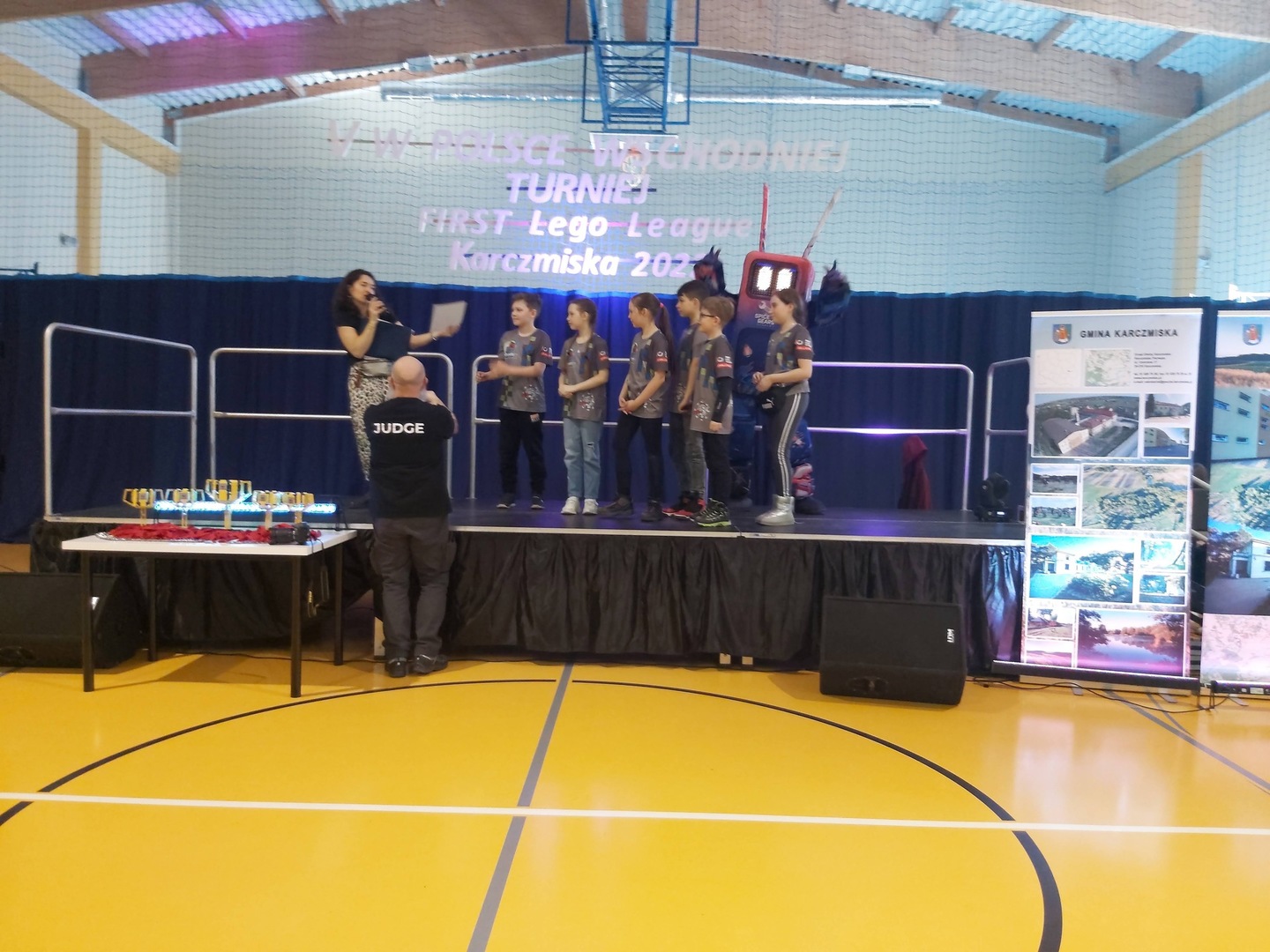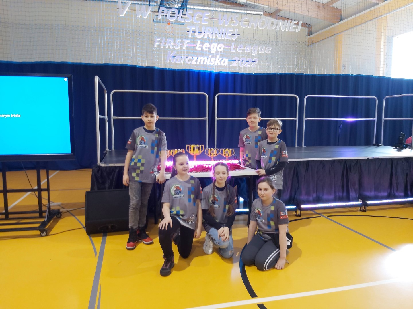 Kolejna przygoda za nami! W sobotę 12 marca najmłodsi zawodnicy drużyny Tech- Max startowali w Turnieju First Lego League w kategorii Explore, który odbył się w Zespole Szkół w Karczmiskach. Tak jak starsi koledzy wykonywali zadania związane z transportem, projektowali pojazdy i urządzenia, następnie budowali i programowali. Wykonali też plakat drużyny, na którym pokazali w jaki sposób pracowali nad zadaniami. Na Turnieju prezentowali modele, programy oraz plakat i w rozmowie z sędzią opowiadali o swojej pracy. Mieli również czas na zabawę i obejrzenie pracy innych drużyn w kategorii Explore i Challenge. W kategorii Explore nagrody są równorzędne, a sędziowie doceniają mocne strony drużyny i umiejętność współpracy. Nasza drużyna została nagrodzona za najbardziej przejrzystą konstrukcję. Zawodnicy otrzymali dyplom dla drużyny i medale. Wystąpili w składzie: Alicja Iwanicka, Anastazja Tabachak, Wiktoria Zielińska, Szymon Chmurzyński, Michał Gmiterek, Piotr Kurzępa.