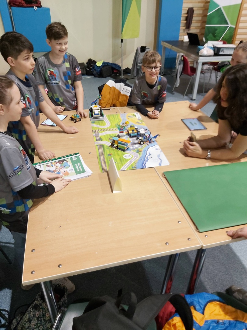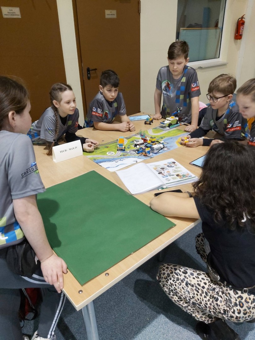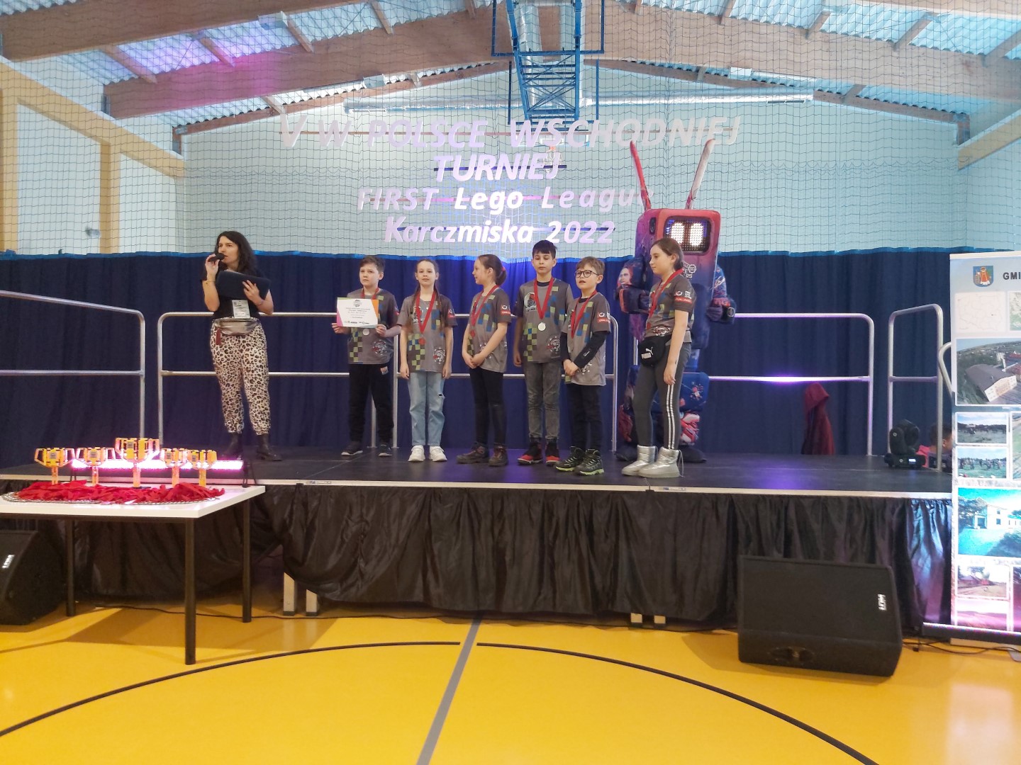 Kolejna przygoda za nami! W sobotę 12 marca najmłodsi zawodnicy drużyny Tech- Max startowali w Turnieju First Lego League w kategorii Explore, który odbył się w Zespole Szkół w Karczmiskach. Tak jak starsi koledzy wykonywali zadania związane z transportem, projektowali pojazdy i urządzenia, następnie budowali i programowali. Wykonali też plakat drużyny, na którym pokazali w jaki sposób pracowali nad zadaniami. Na Turnieju prezentowali modele, programy oraz plakat i w rozmowie z sędzią opowiadali o swojej pracy. Mieli również czas na zabawę i obejrzenie pracy innych drużyn w kategorii Explore i Challenge. W kategorii Explore nagrody są równorzędne, a sędziowie doceniają mocne strony drużyny i umiejętność współpracy. Nasza drużyna została nagrodzona za najbardziej przejrzystą konstrukcję. Zawodnicy otrzymali dyplom dla drużyny i medale. Wystąpili w składzie: Alicja Iwanicka, Anastazja Tabachak, Wiktoria Zielińska, Szymon Chmurzyński, Michał Gmiterek, Piotr Kurzępa.