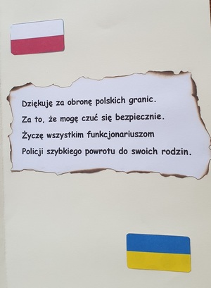 Wczoraj do tomaszowskiej komendy trafiły podziękowania dla policjantów pełniących służbę w rejonie przejścia granicznego w Hrebennem oraz realizujących zadania związane z pomocą osobom uciekającym przed wojną. Podziękowania i słowa wsparcia przybrały formę laurek wykonanych własnoręcznie przez uczniów Szkoły Podstawowej nr 2 w Tomaszowie Lubelskim. W związku z niespokojną sytuacją za naszą wschodnią granicą, poczucie bezpieczeństwa mieszkańców naszego powiatu stało się dla nas sprawą najważniejszą. Wspomagani przez wielu policjantów oddelegowanych do pełnienia służby w obszarze przygranicznym, dbamy o porządek i poczucie bezpieczeństwa zarówno okolicznych mieszkańców jak i osób przekraczających granicę.