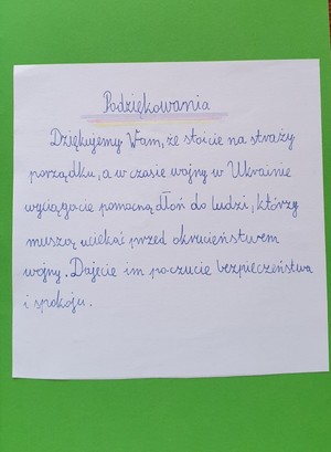 Dlatego słowa kierowane od dzieci w laurkach: „Dziękujemy wam, że możemy spokojnie spać” niezmiernie nas cieszą i motywują do dalszej pracy. Za wszystkie laurki serdecznie dziękujemy!