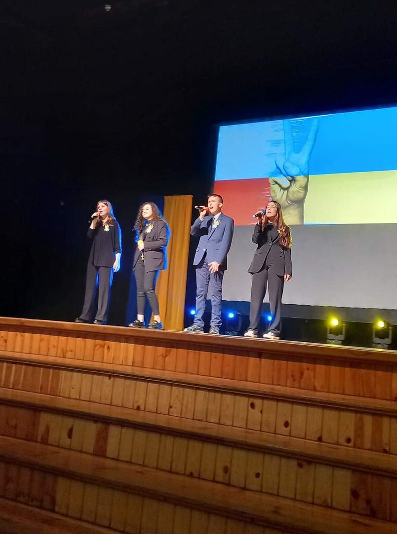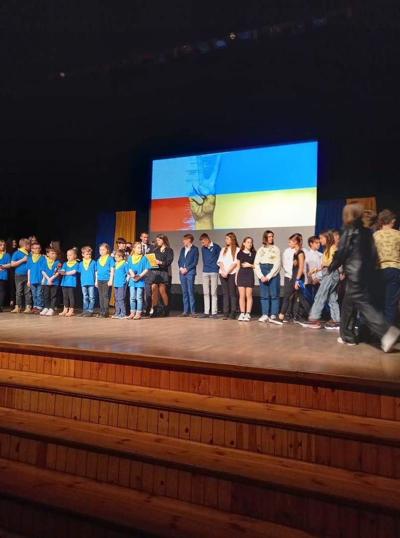 17 marca 2022r. Młodzieżowa Rada Miasta zorganizowała dwa koncerty charytatywne pod tytułem „Podaj rękę Ukrainie”. Wzięli w nich udział wykonawcy z tomaszowskich szkół podstawowych, jak również Zespół Pieśni i Tańca Roztocze oraz zespół Soundteam. Gościem specjalnym była Masha Koval, sześcioletnia dziewczynka, która przyjechała z Ukrainy. Bardzo wzruszająco zaśpiewała hymn swojego kraju. Naszą szkołę reprezentowały: Aleksandra Mazur oraz Jagoda Darłowska. Jedną ze współprowadzących była radna Hanna Stefanik. Pozostali radni: Julia Cisło, Luiza Goch, Karol Krzyszycha i Miłosz Byczuk zaangażowali się w zbiórkę pieniędzy i pomoc przy zorganizowaniu koncertu. Pokazaliśmy, że razem możemy więcej, a naszym priorytetem jest wspólne czynienie dobra. Te koncerty były również podziękowaniem dla uczniów, ich rodziców, nauczycieli i pracowników szkół, którzy włączyli się w akcję pomagania. W dniach 14-17 marca, w szkołach i na koncertach, zostały przeprowadzone zbiórki pieniędzy, aby pomóc naszym sąsiadom zza wschodniej granicy. Razem zebraliśmy 5827 zł. Dziękujemy za Waszą wrażliwość, otwarte serca i chęć wsparcia ludzi w potrzebie.