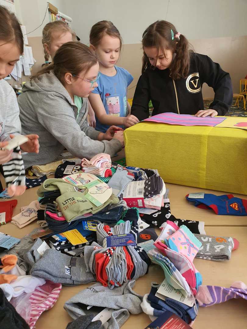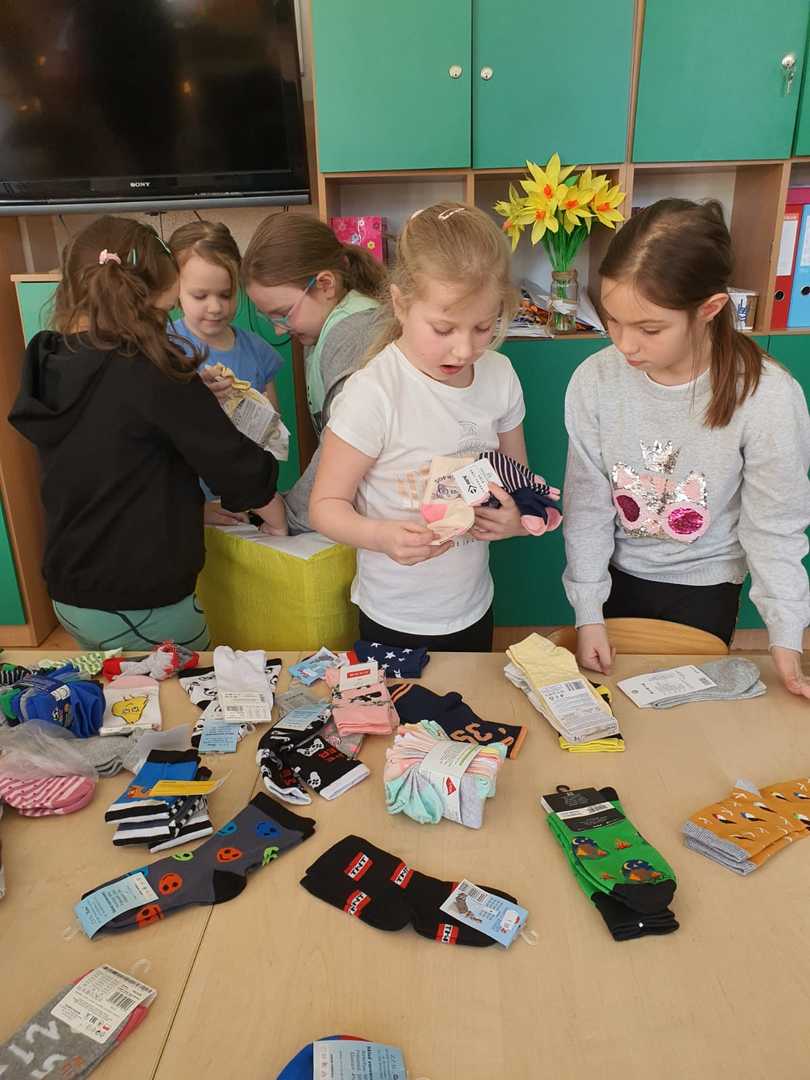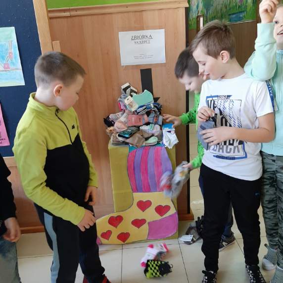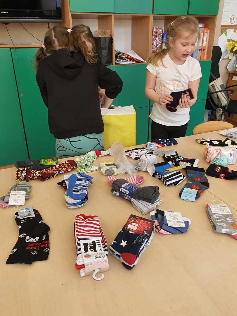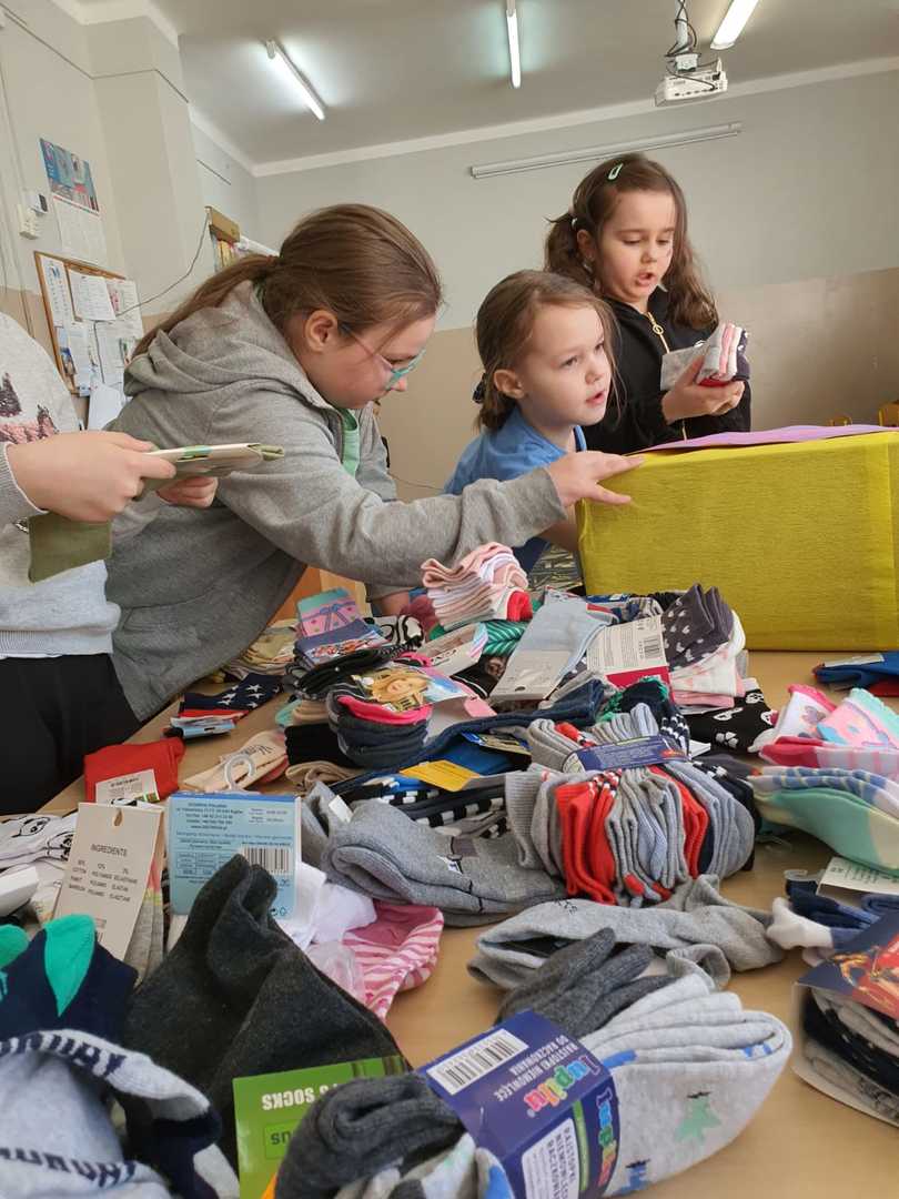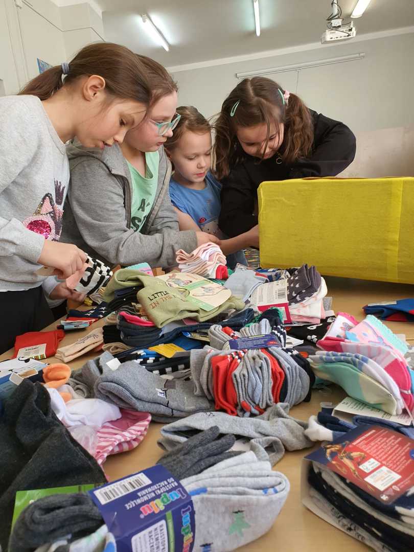 Przy tej okazji wzięliśmy też udział w akcji Polskiego Stowarzyszenia na rzecz Osób z Niepełnosprawnością Intelektualną Koła w Tomaszowie Lubelskim na rzecz uchodźców z Ukrainy poprzez przyniesienie nowych skarpetek. Jak zwykle społeczność naszej szkoły stanęła na wysokości zadania. Skarpetek był tyle, że można by otworzyć sklep.