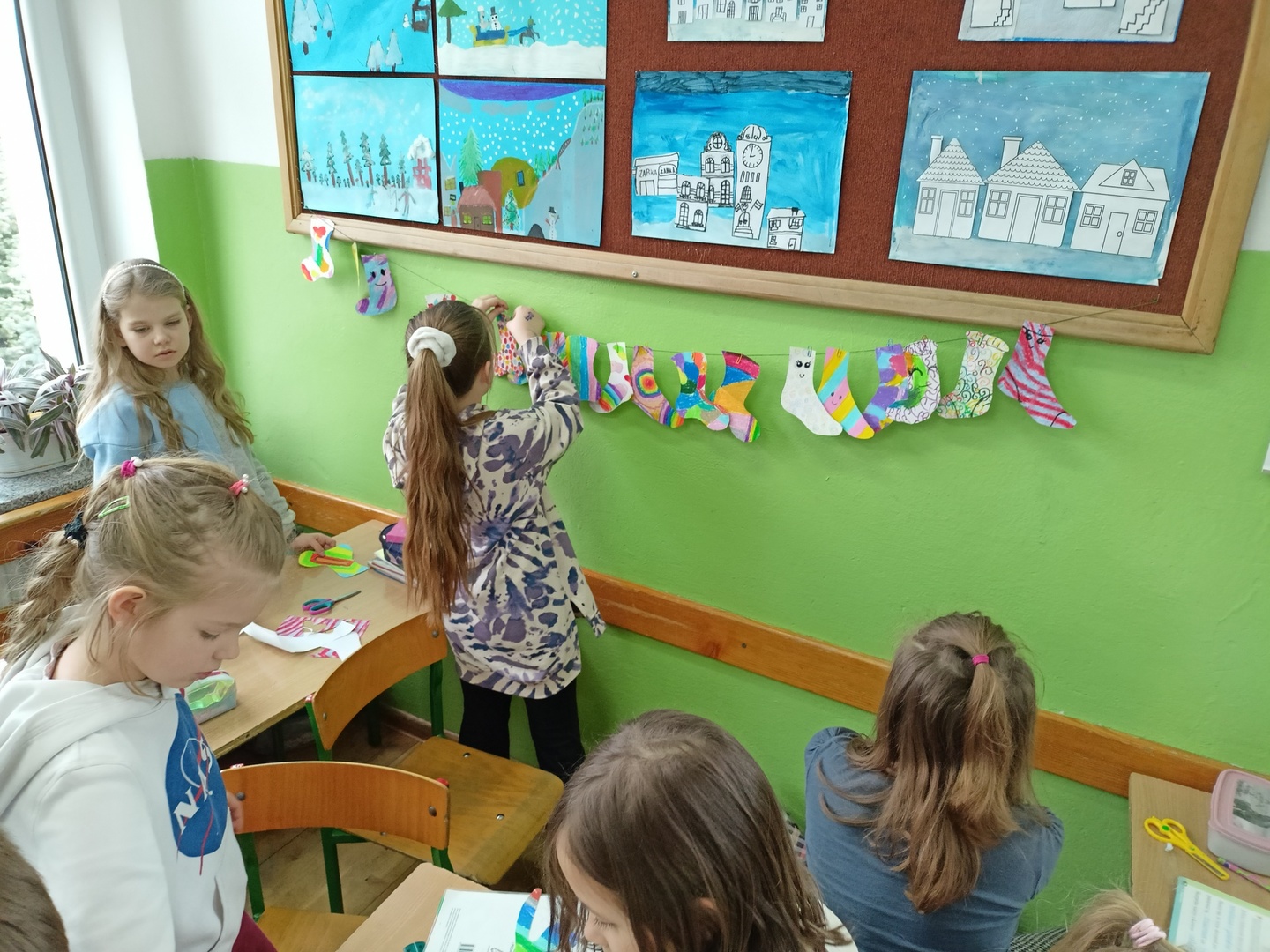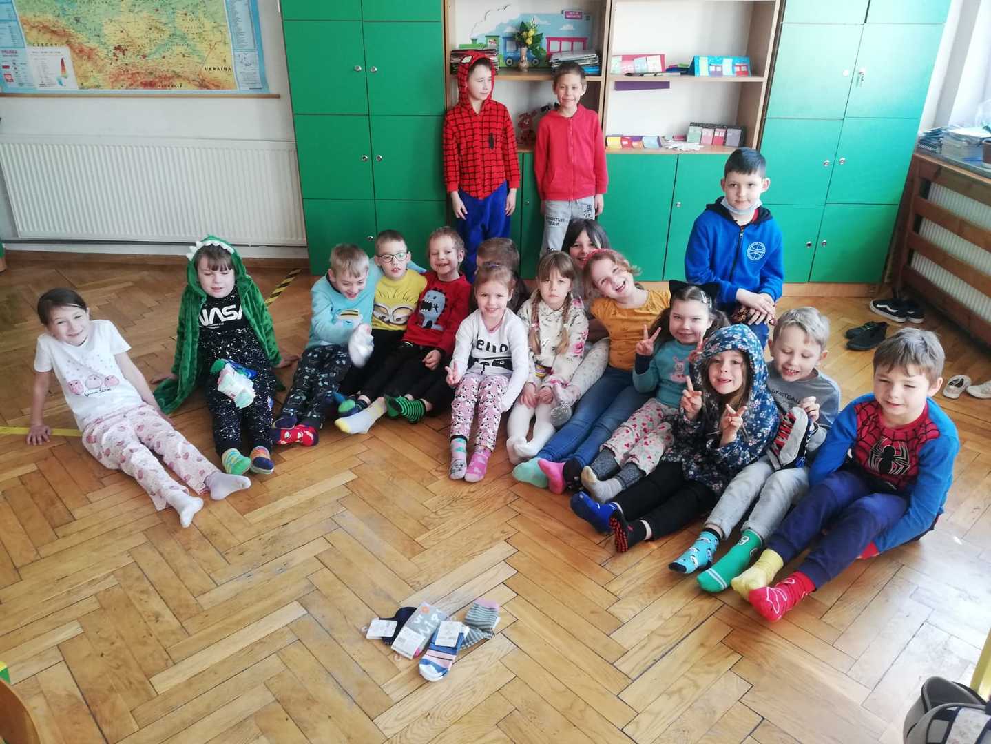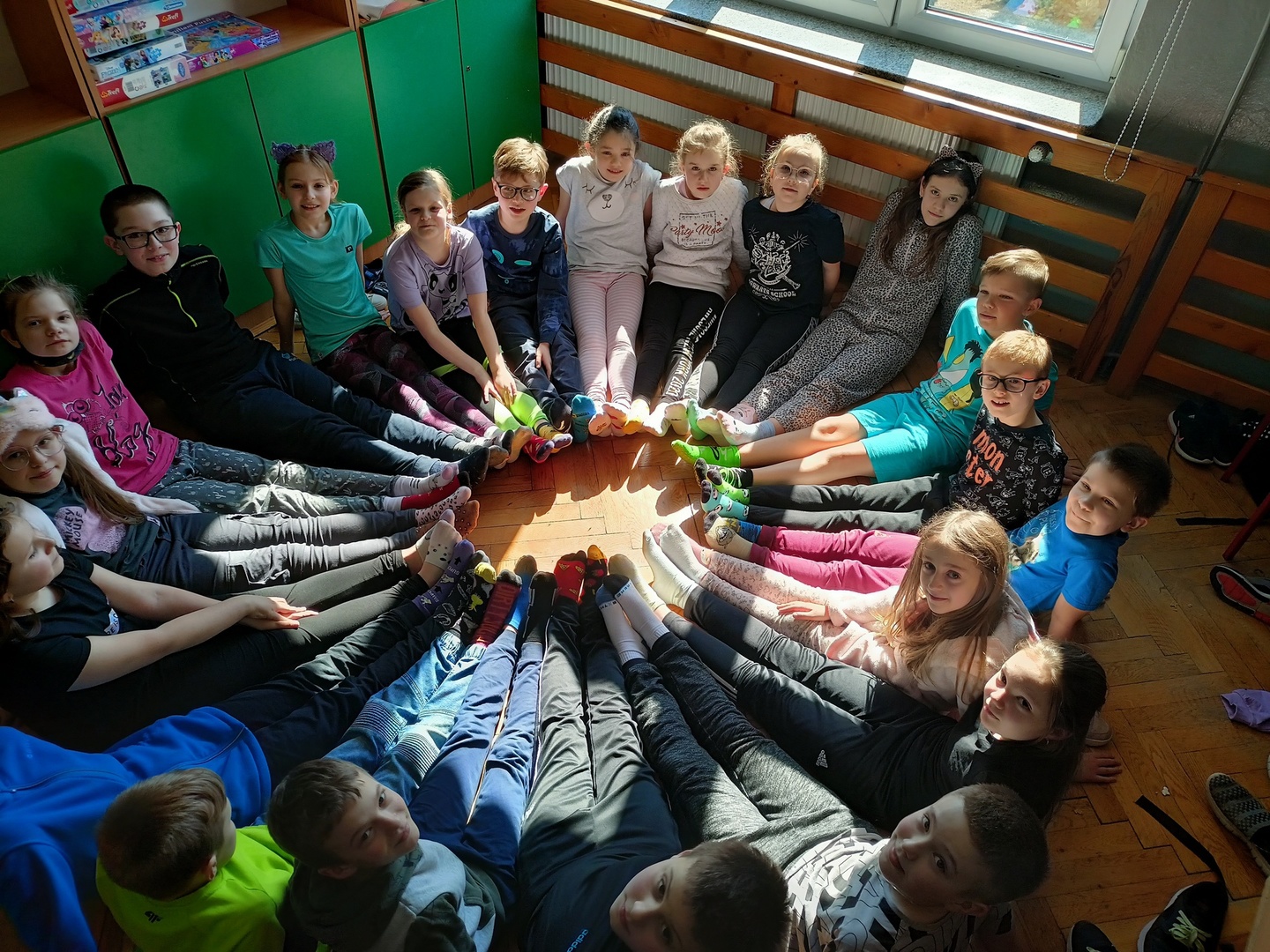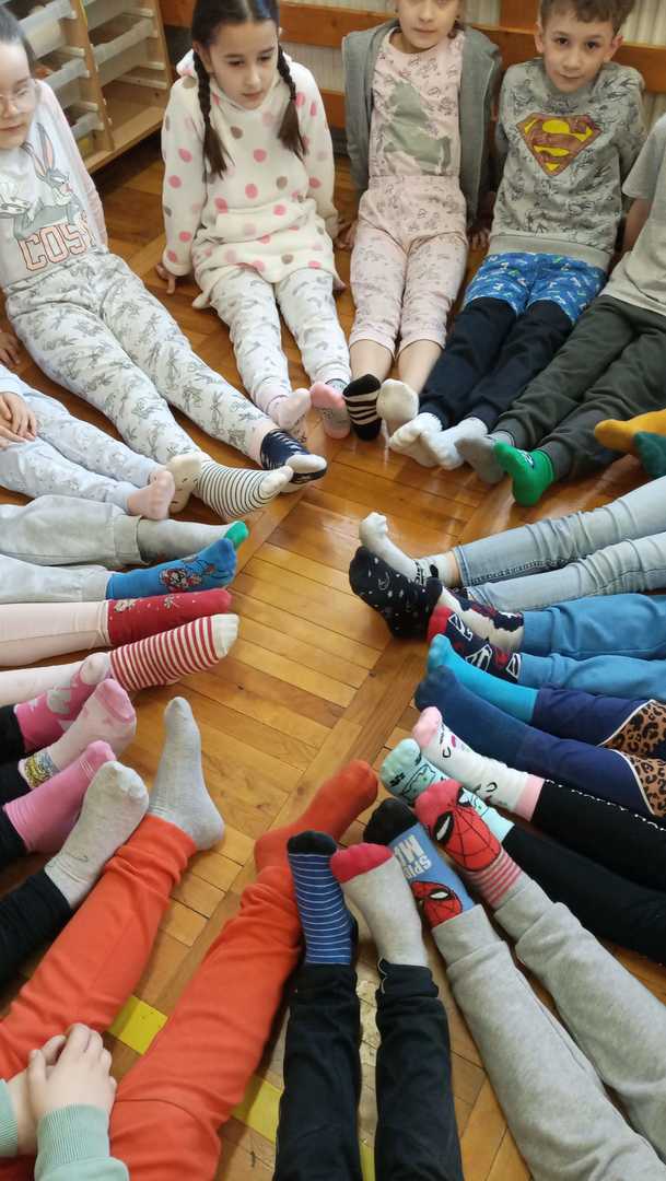 Przy tej okazji wzięliśmy też udział w akcji Polskiego Stowarzyszenia na rzecz Osób z Niepełnosprawnością Intelektualną Koła w Tomaszowie Lubelskim na rzecz uchodźców z Ukrainy poprzez przyniesienie nowych skarpetek. Jak zwykle społeczność naszej szkoły stanęła na wysokości zadania. Skarpetek był tyle, że można by otworzyć sklep.