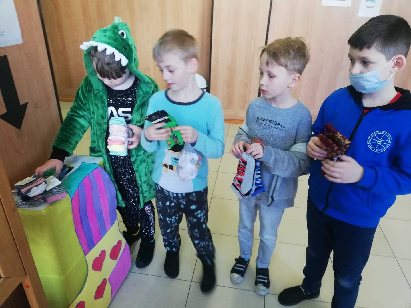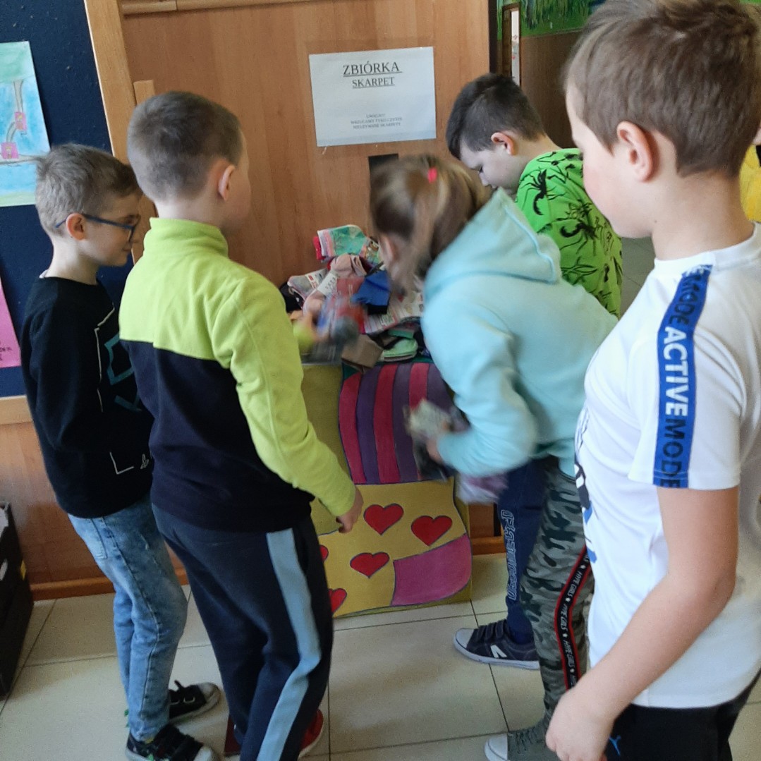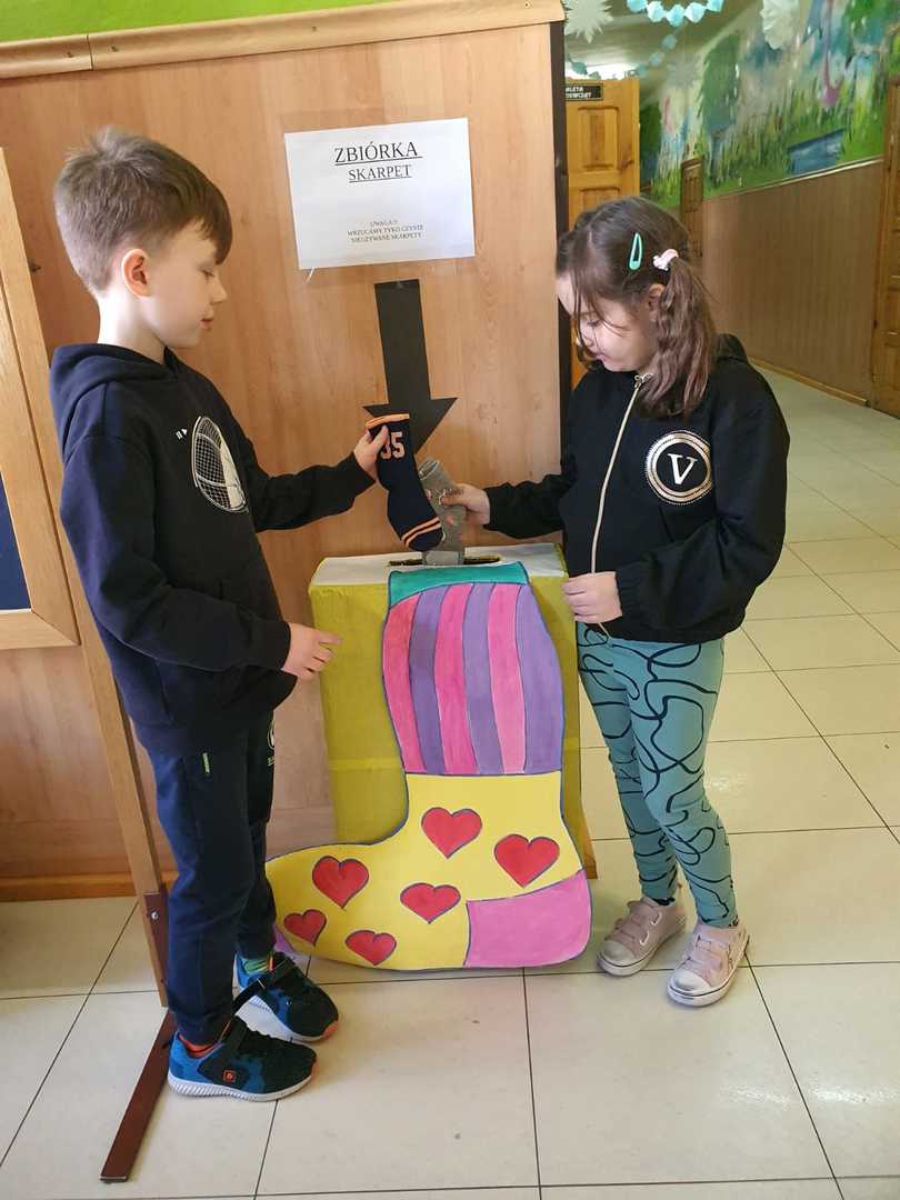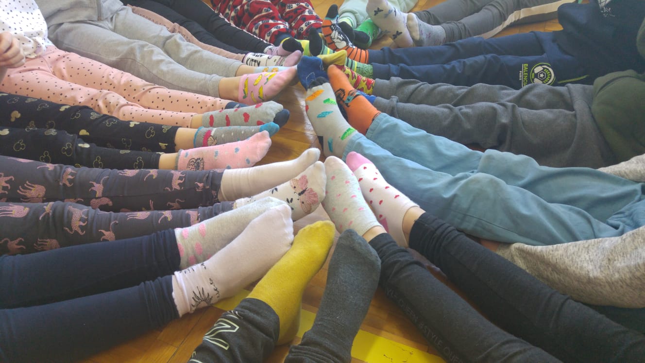 Przy tej okazji wzięliśmy też udział w akcji Polskiego Stowarzyszenia na rzecz Osób z Niepełnosprawnością Intelektualną Koła w Tomaszowie Lubelskim na rzecz uchodźców z Ukrainy poprzez przyniesienie nowych skarpetek. Jak zwykle społeczność naszej szkoły stanęła na wysokości zadania. Skarpetek był tyle, że można by otworzyć sklep.