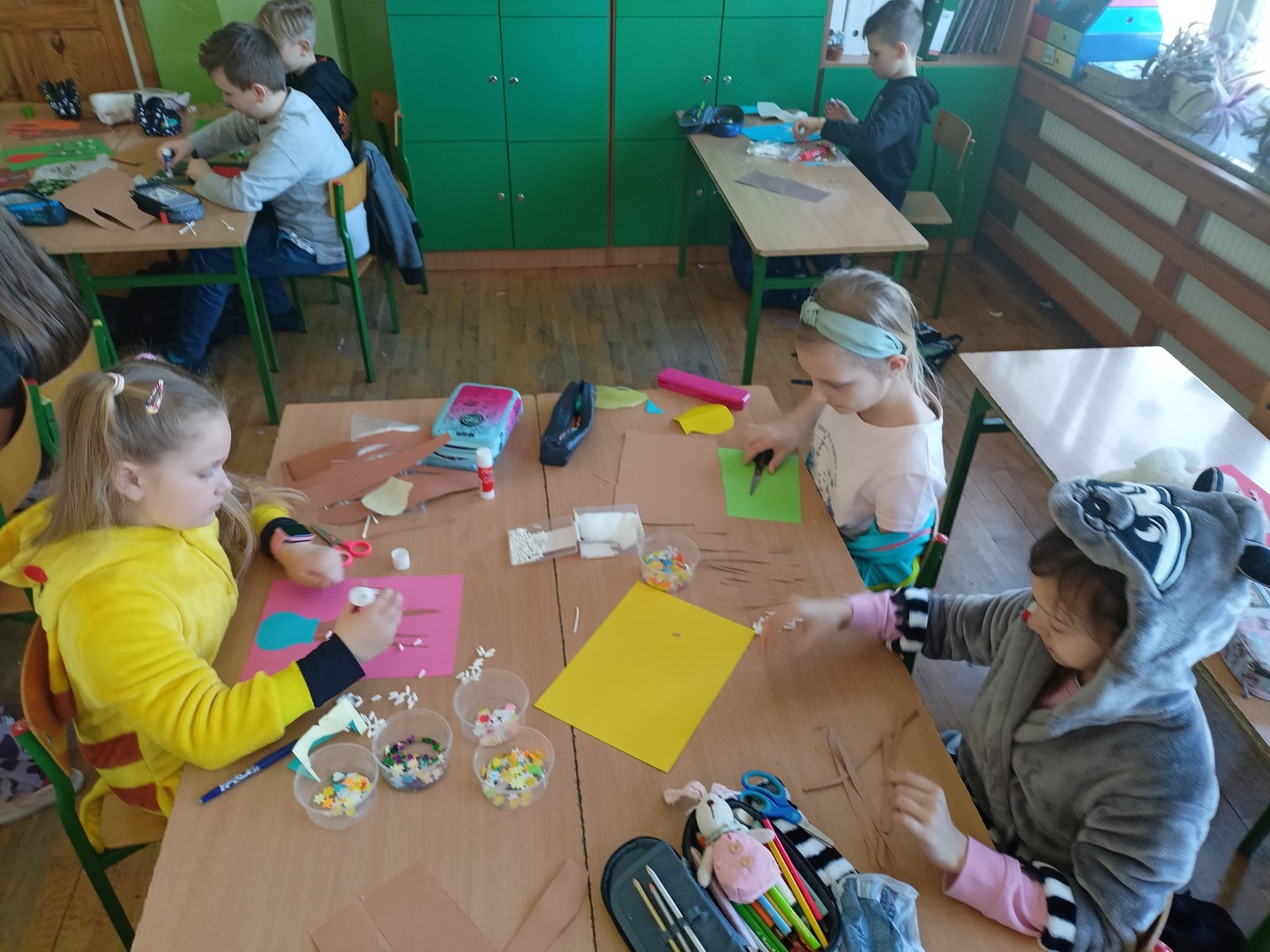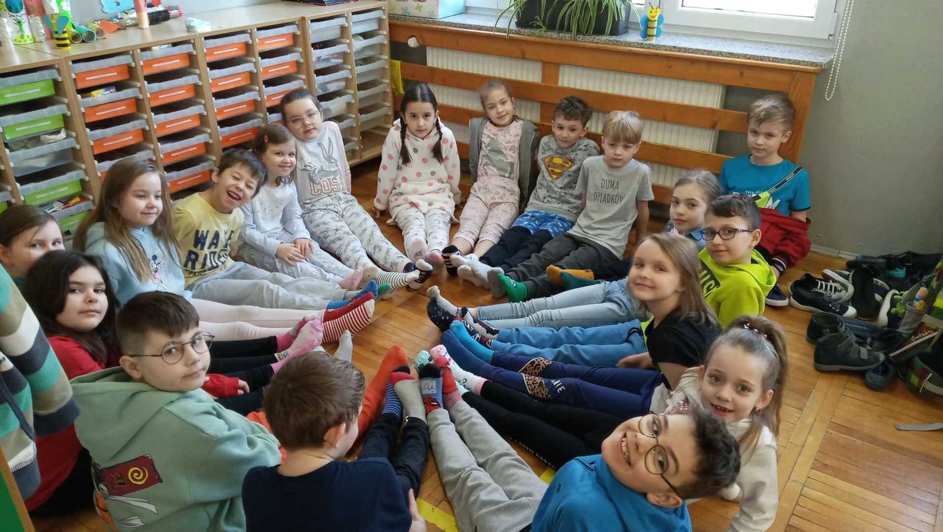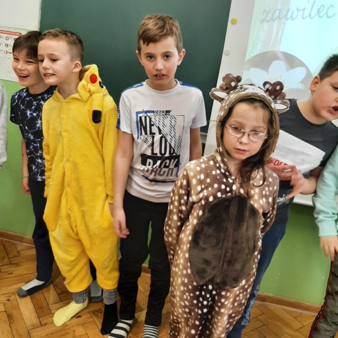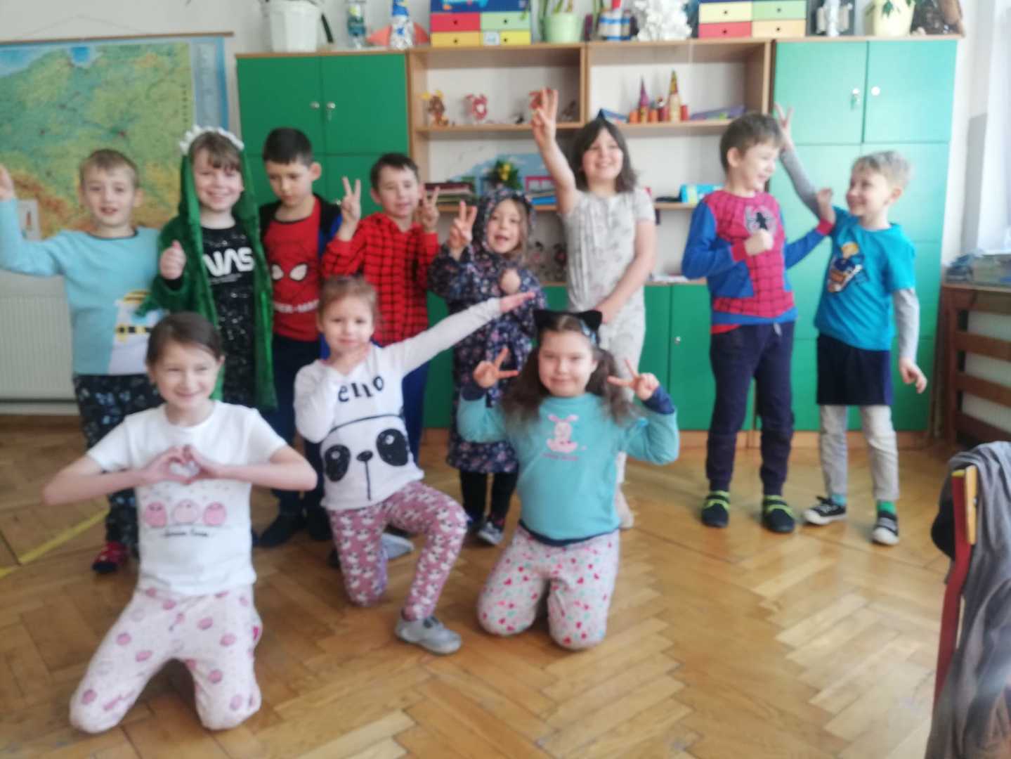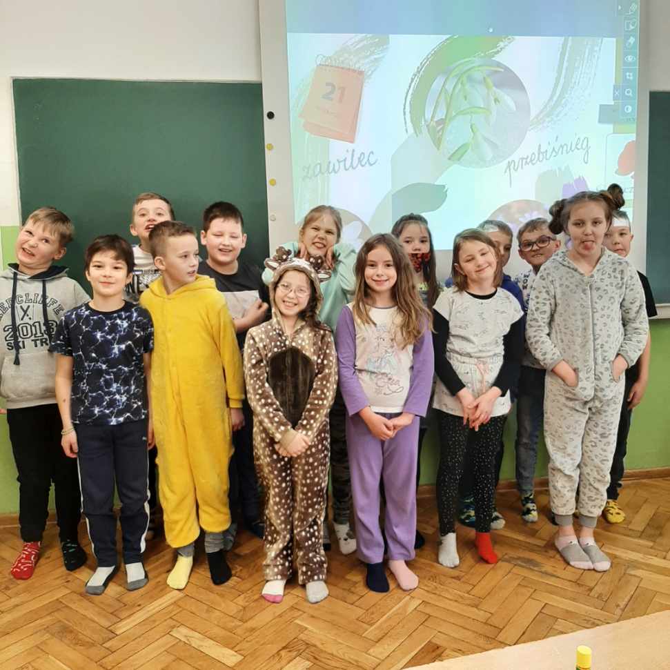Dziś pogoda była wyjątkowa, jak przystało na pierwszy dzień wiosny. Niektóre klasy świętowały na dworze spacerując po lesie i okolicy, a inne - przebrane w piżamy i szlafroki, bawiły się w szkole. To był niesamowity dzień pełen radości i miłych wrażeń.