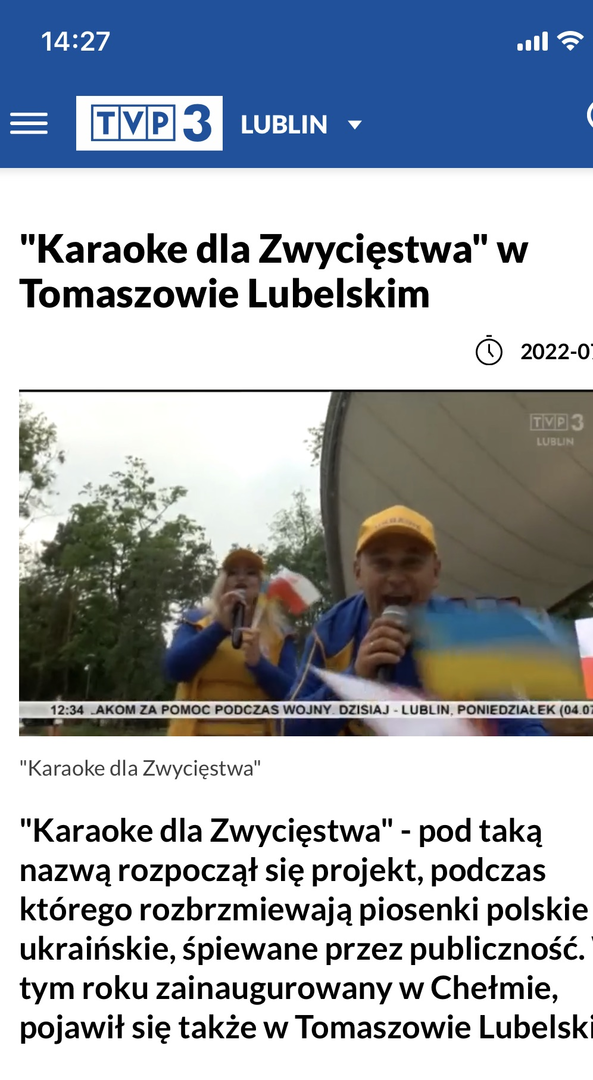 W sobotę 2 lipca w Amfiteatrze w Parku Miejskim odbył się koncert piosenek polskich i ukraińskich "Karaoke dla Zwycięstwa" zorganizowany przez Telewizję Lwów „Pierwszy Zachodni”. To podziękowanie Polakom, za okazaną pomoc i wielkie zaangażowanie, natomiast Ukraińcom, przebywającym obecnie na terytorium Polski dodanie otuchy, a także apel o wsparcie walczących. Wolontariusze Szkolnego Koła Caritas: Otylia, Wiktoria,Yeva i Wojtek mimo wakacji aktywnie kwestowali. Caritas Polska zaplanował zbiórkę do puszek na zakup samochodu dla potrzeb dziennikarzy frontowych.