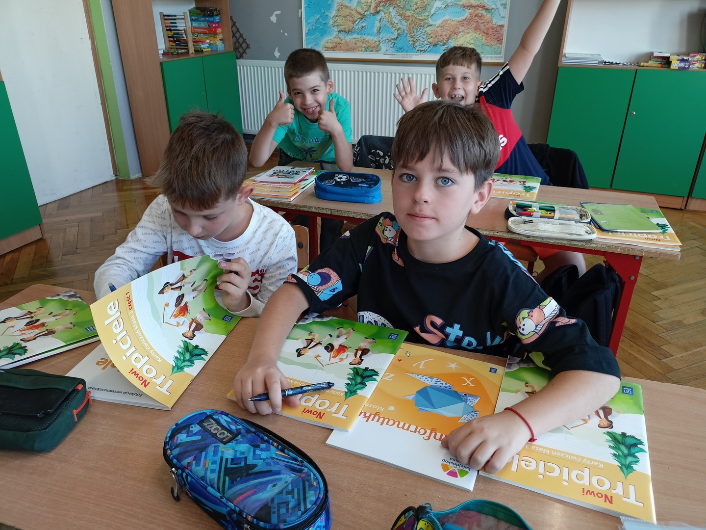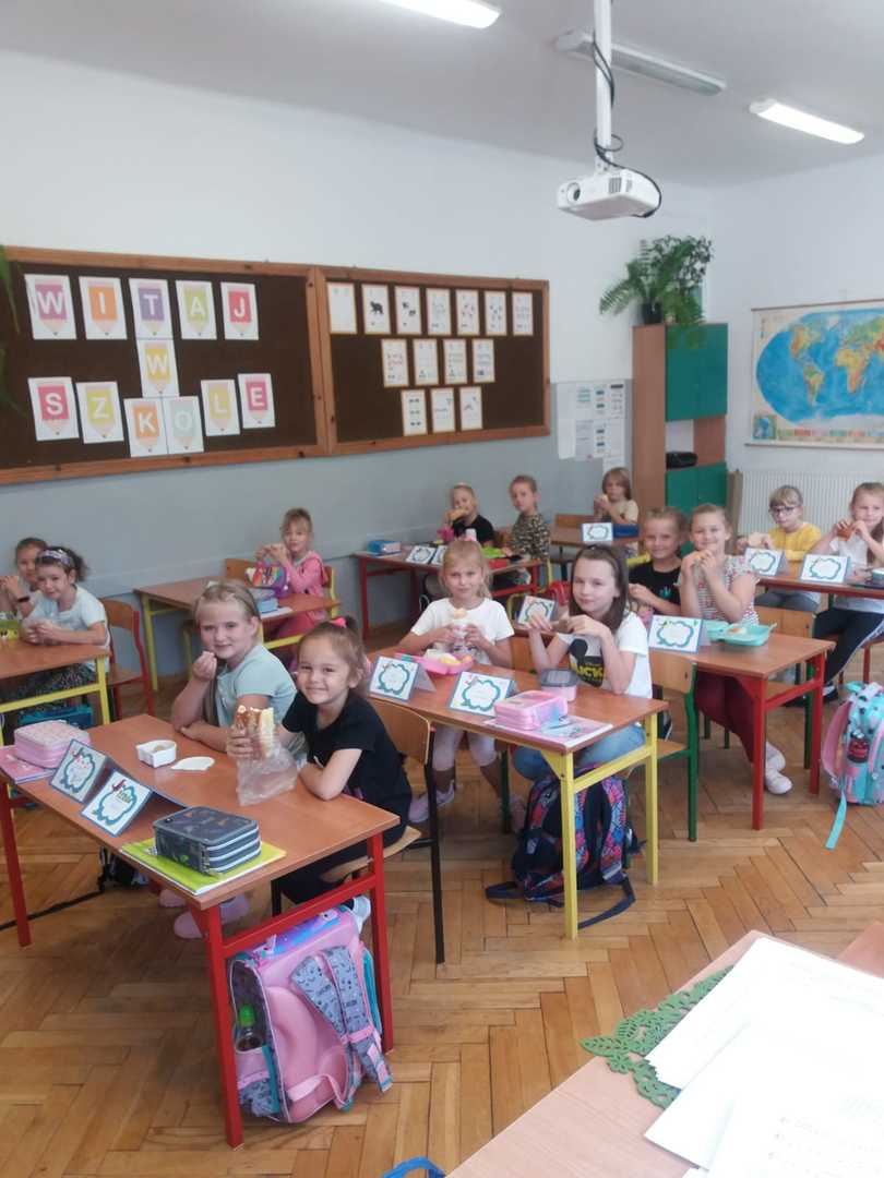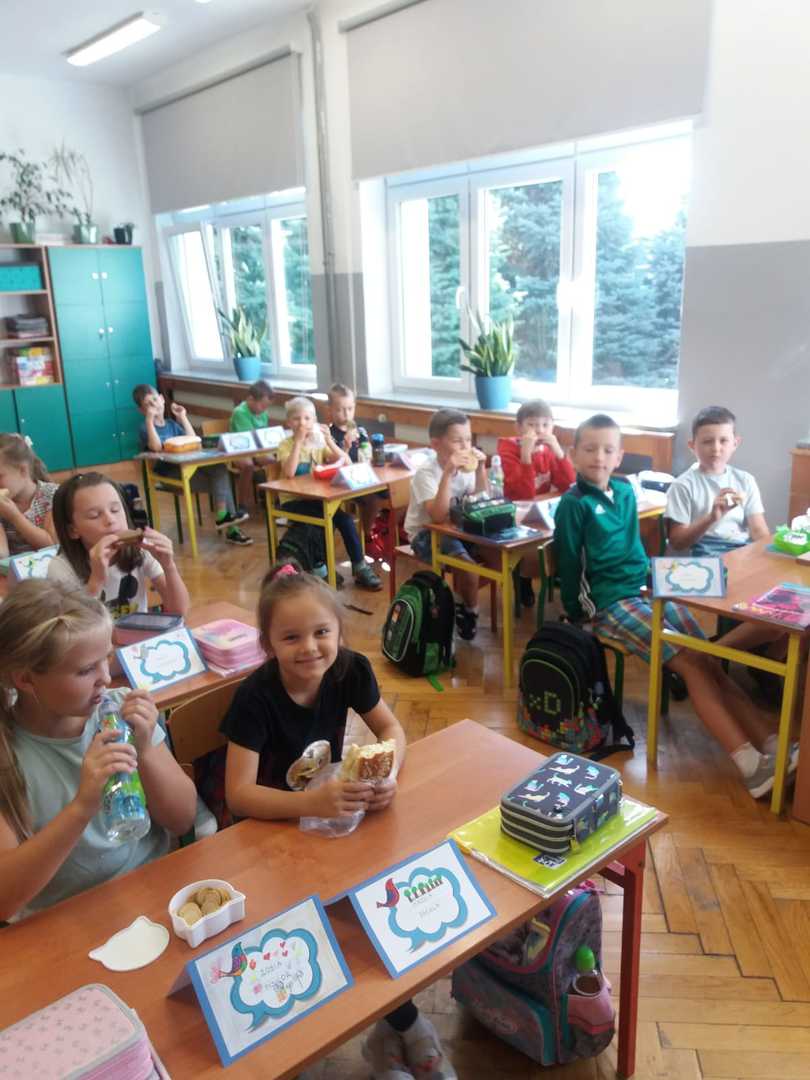 To był dzień pełen wrażeń. Po wakacyjnej przerwie mogliśmy spotkać się z kolegami, koleżankami, nauczycielami. Dla większości z nas były to miłe i radosne powroty, bo choć czasami zdarza nam się pokłócić, to i tak na ogół bardzo się lubimy, w myśl przysłowia „Kto się czubi, ten się lubi”.