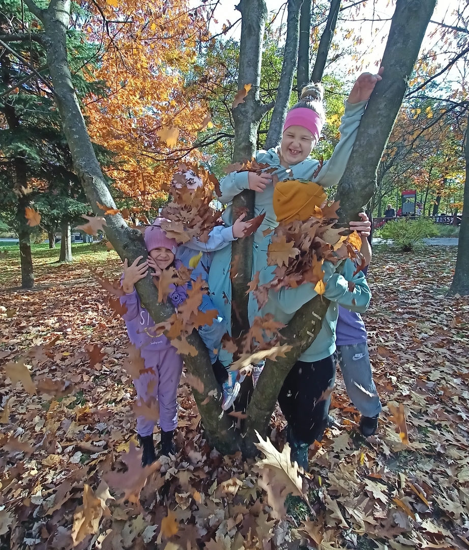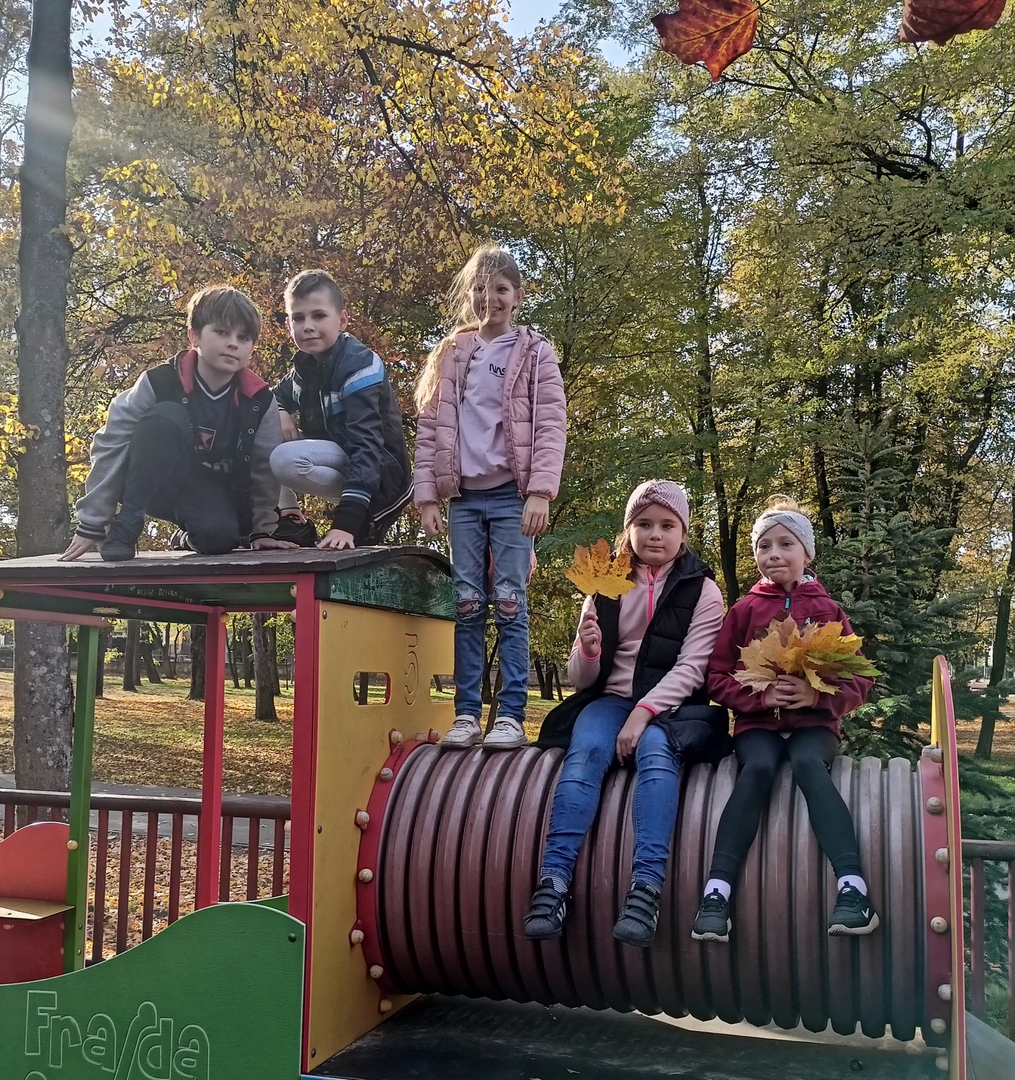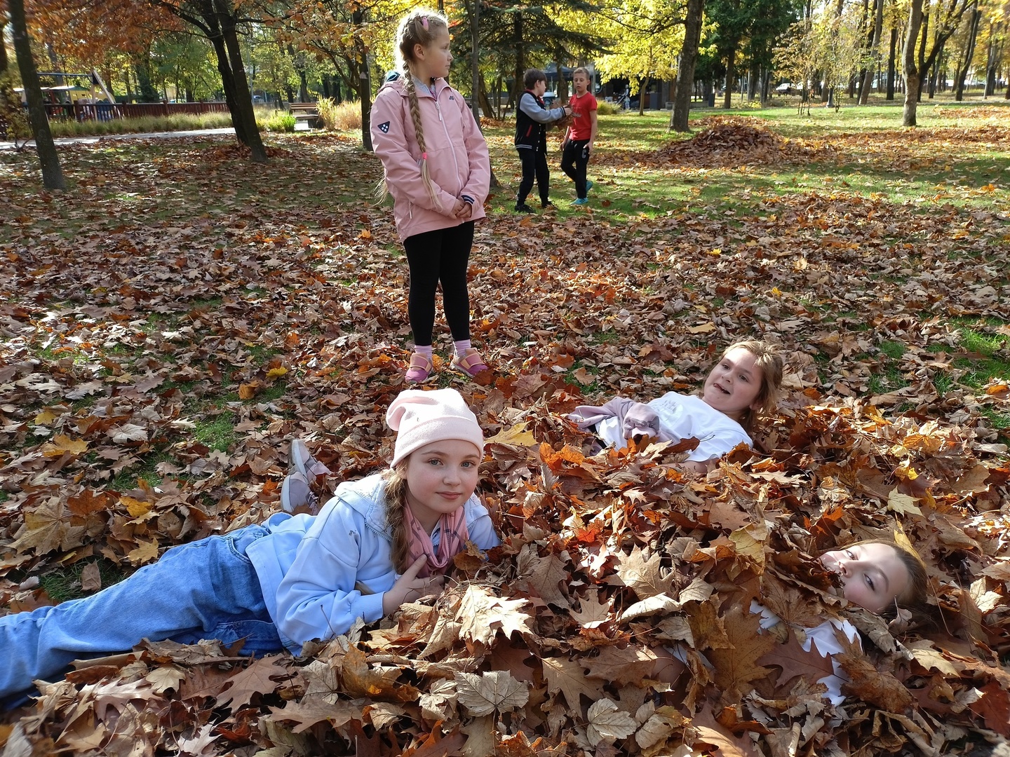 To słowa jednej z piosenek, której uczyliśmy się podczas lekcji. Świetnie pasują do naszych jesiennych wypraw do parku i lasu. To właśnie tam przekonaliśmy się na własne oczy i uszy, co znaczy powiedzenie "złota polska jesień".
