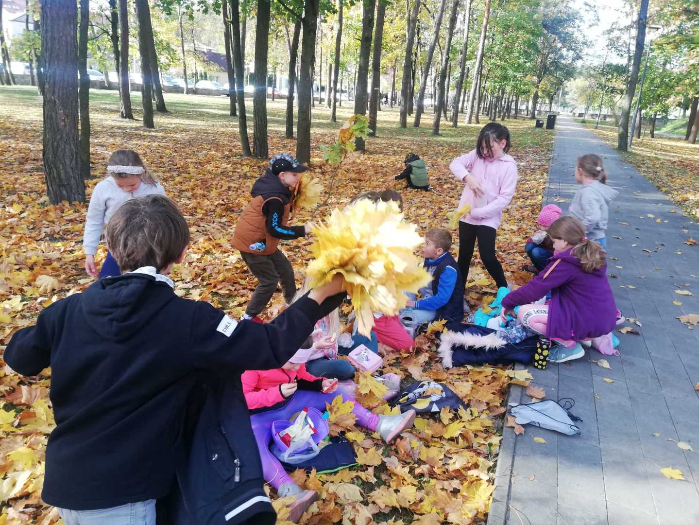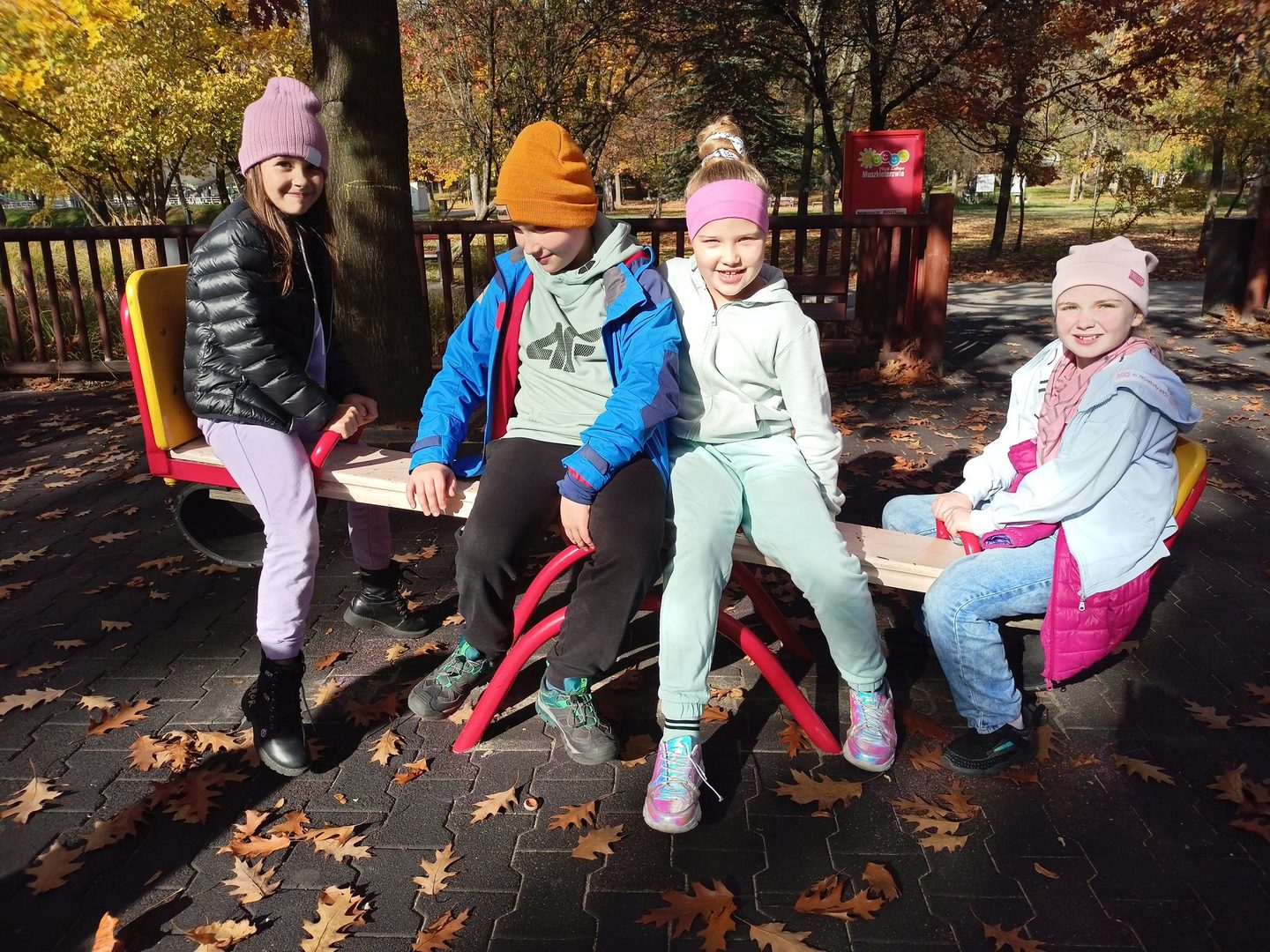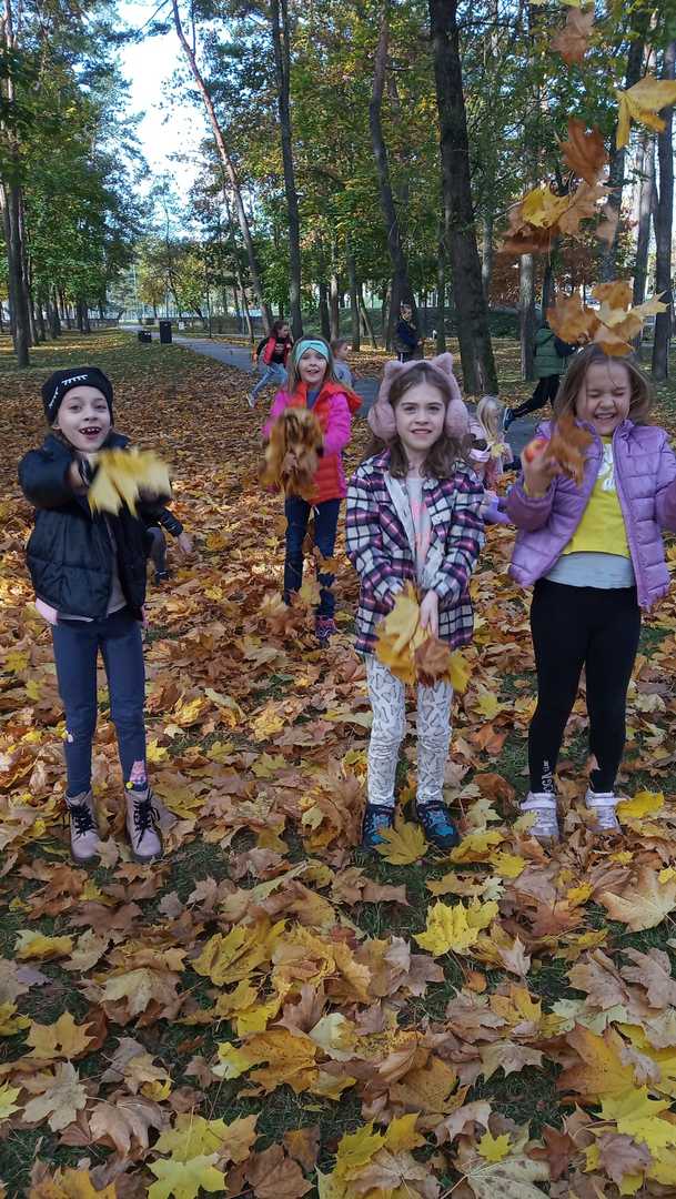 To słowa jednej z piosenek, której uczyliśmy się podczas lekcji. Świetnie pasują do naszych jesiennych wypraw do parku i lasu. To właśnie tam przekonaliśmy się na własne oczy i uszy, co znaczy powiedzenie "złota polska jesień".