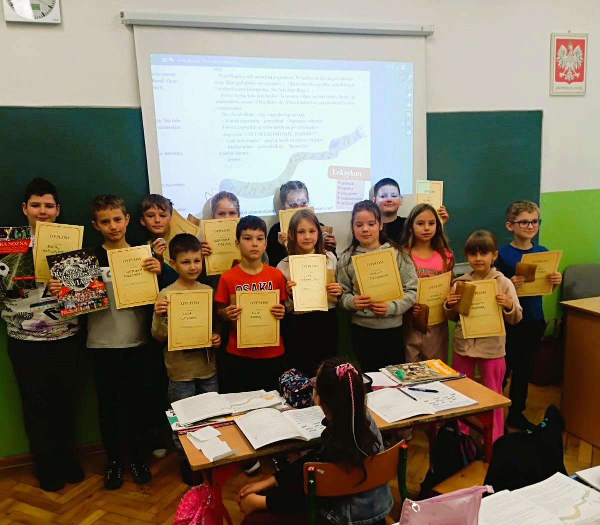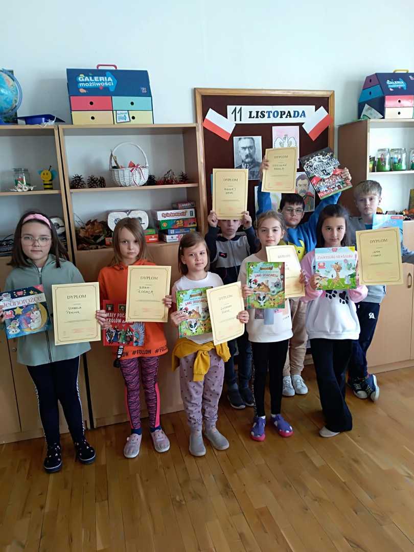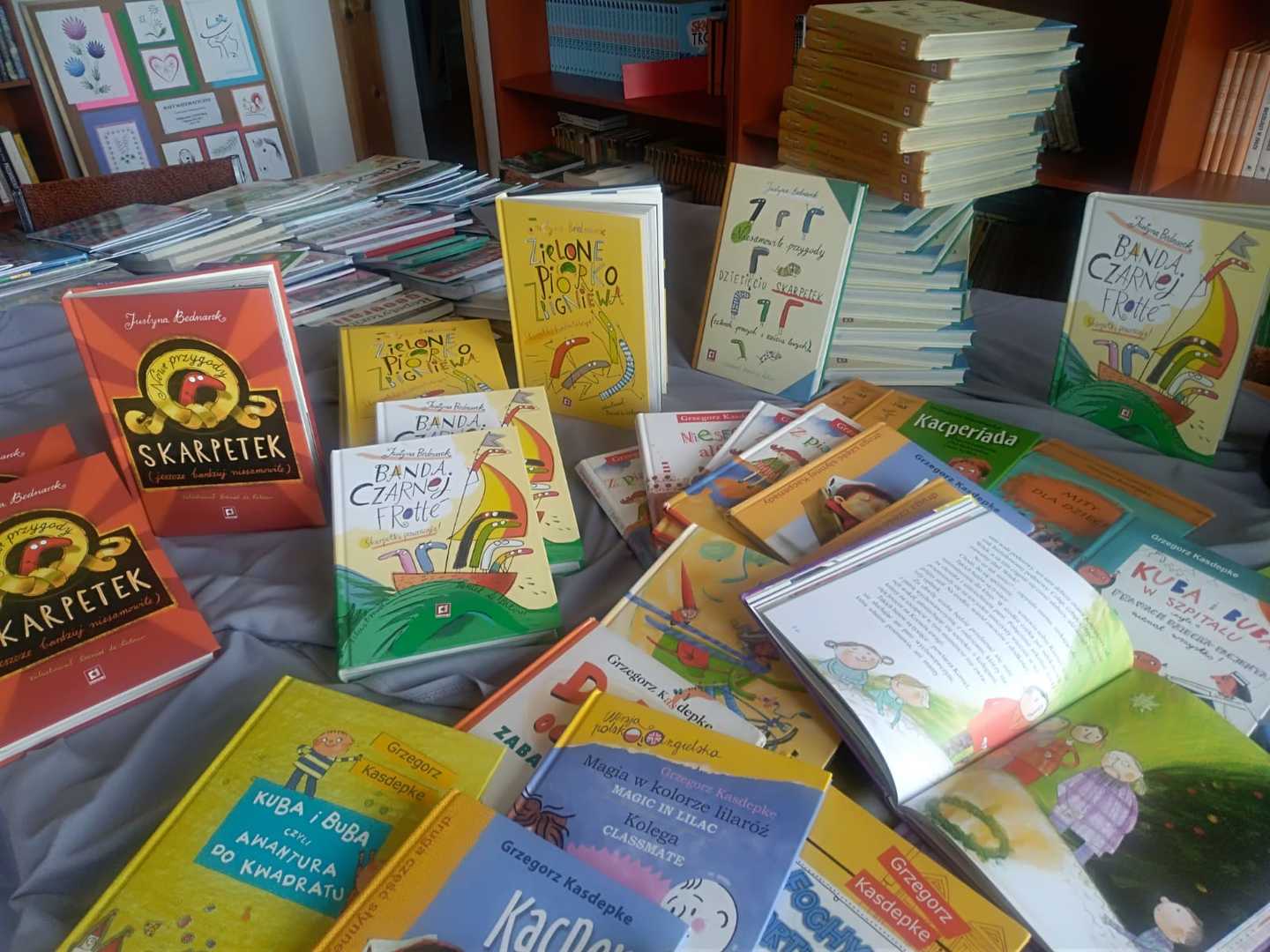 9 listopada 2022 r. w bibliotece szkolnej został rozstrzygnięty konkurs plastyczny dla kl. II – III „W świecie książek Justyny Bednarek i Grzegorza Kasdepke”. Celem konkursu było popularyzowanie twórczości pisarzy, zachęcenie uczniów do przeczytania nowości książkowych ulubionych autorów zakupionych w ramach Narodowego Programu Rozwoju Czytelnictwa, rozwijanie wyobraźni plastycznej uczniów oraz kształtowanie wrażliwości estetycznej.