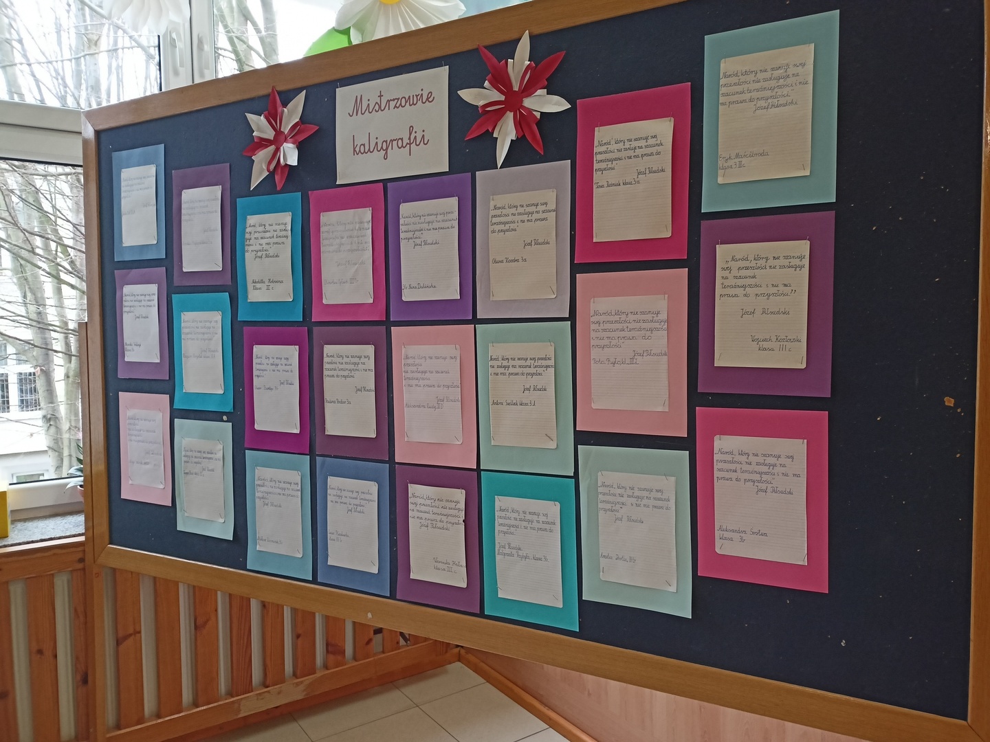 Z okazji Święta Szkoły Mały Samorząd Uczniowski zorganizował konkurs pięknego pisania dla uczniów trzecich klas. Zadaniem dzieci było napisanie słów, które wypowiedział Józef Piłsudski „Naród, który nie szanuje swej przeszłości nie zasługuje na szacunek teraźniejszości i nie ma prawa do przyszłości”. Przy ocenie komisja brała pod uwagę staranność pisma i poprawność ortograficzną.