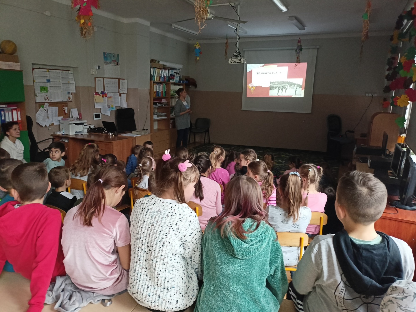 28 listopada odwiedziła nas pani Joasia z Muzeum Regionalnego w naszym mieście. Opowiedziała nam ciekawe historie z życia naszego patrona Józefa Piłsudskiego i szczegółowo opisała jego wizyty w Tomaszowie Lubelskim, między innymi w jednym z budynków naszej szkoły. Obejrzeliśmy też ciekawą prezentację o Marszałku i odzyskaniu przez Polskę niepodległości. To była niezwykła lekcja.