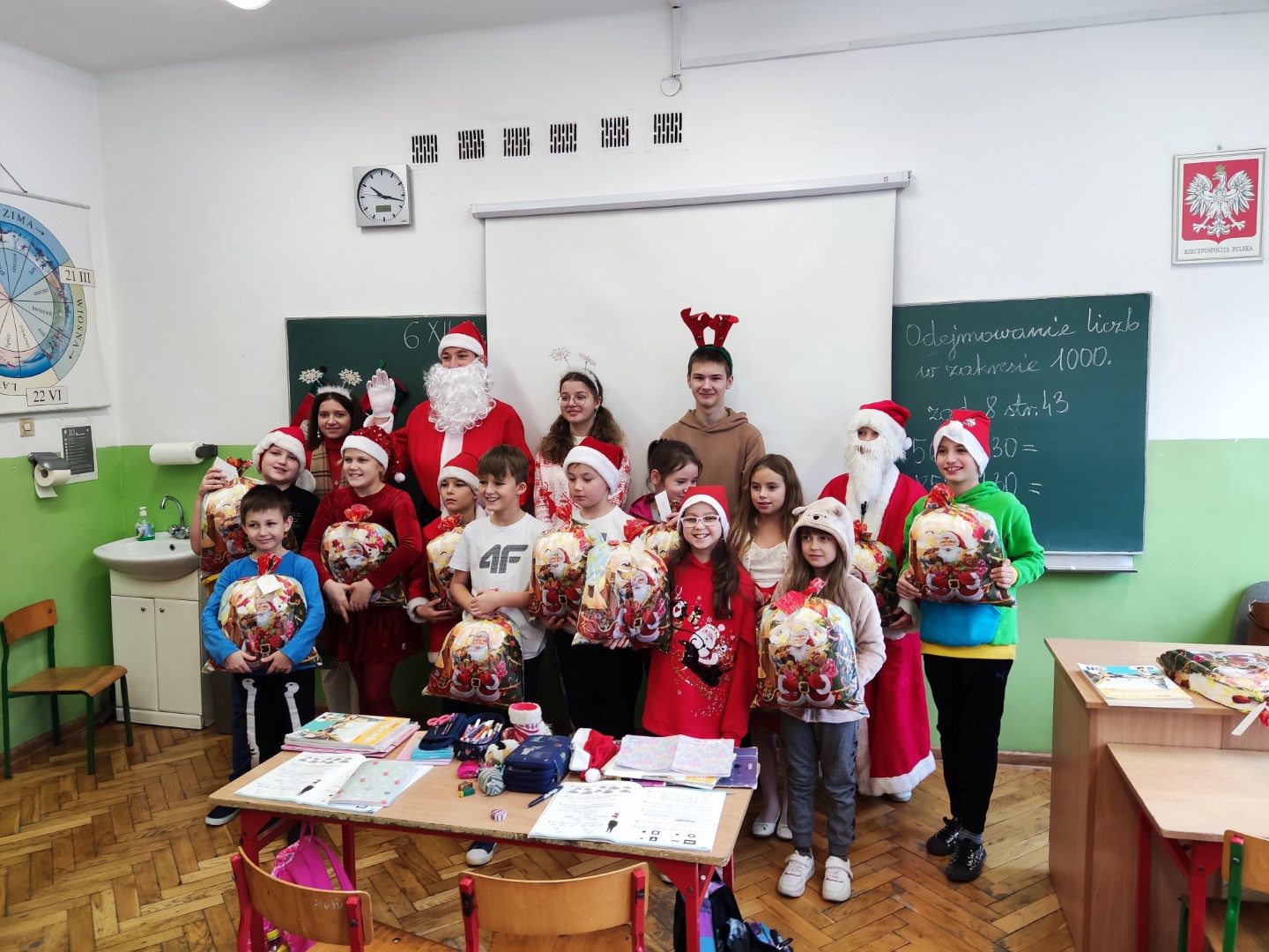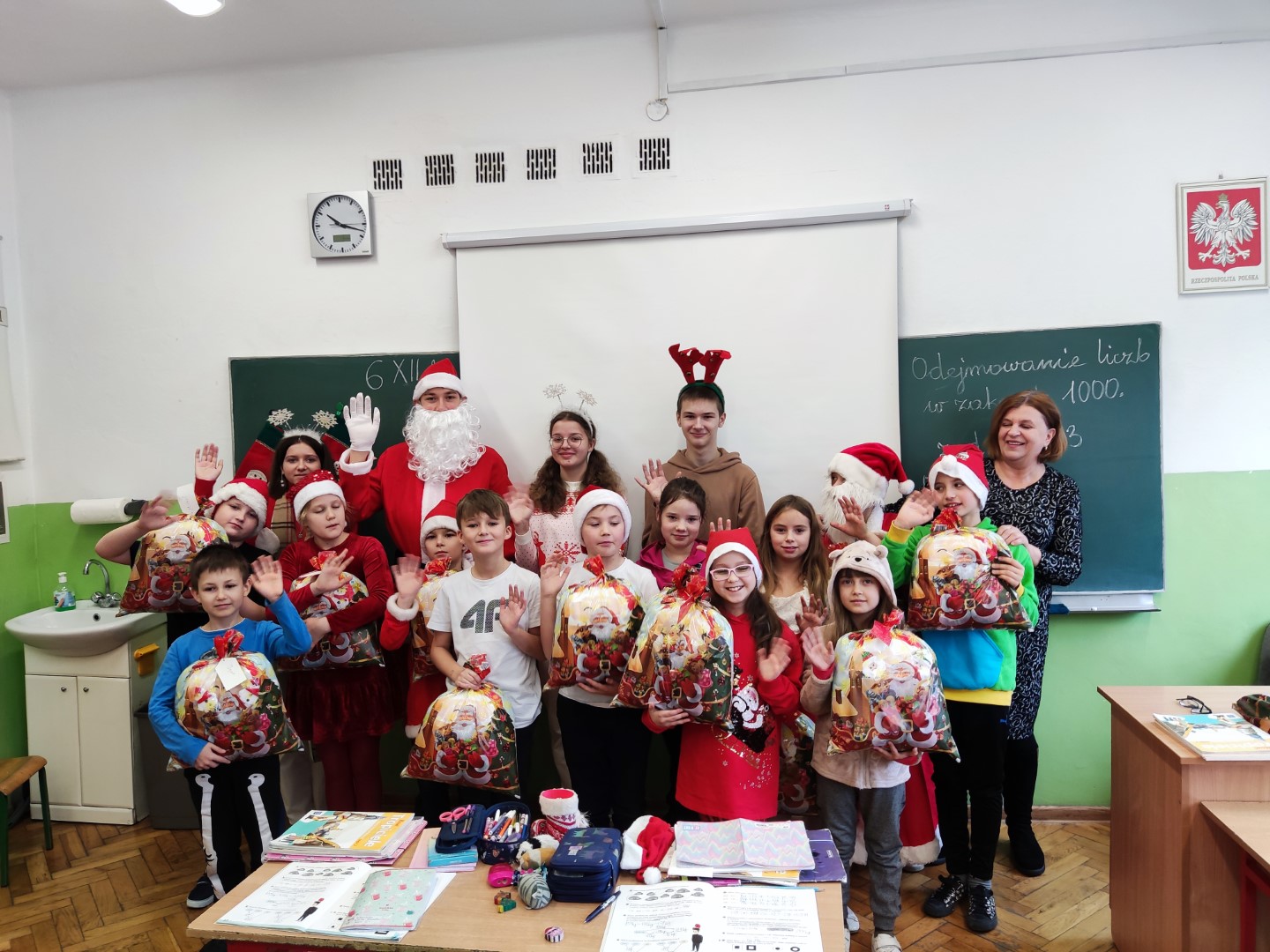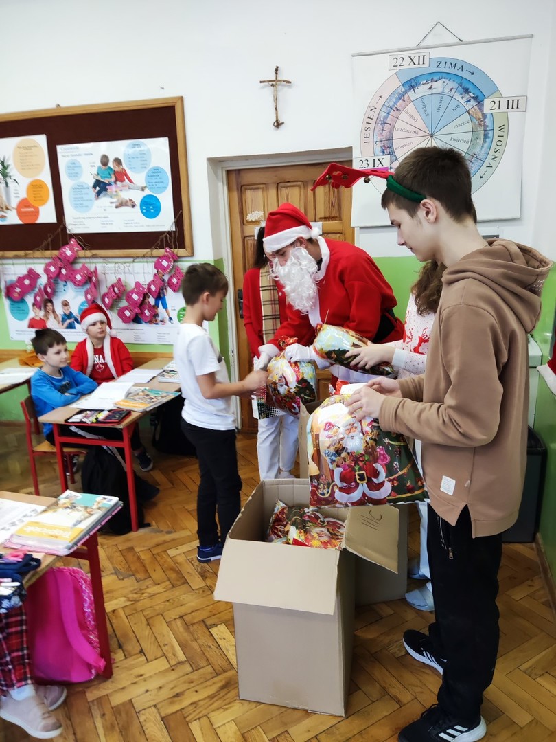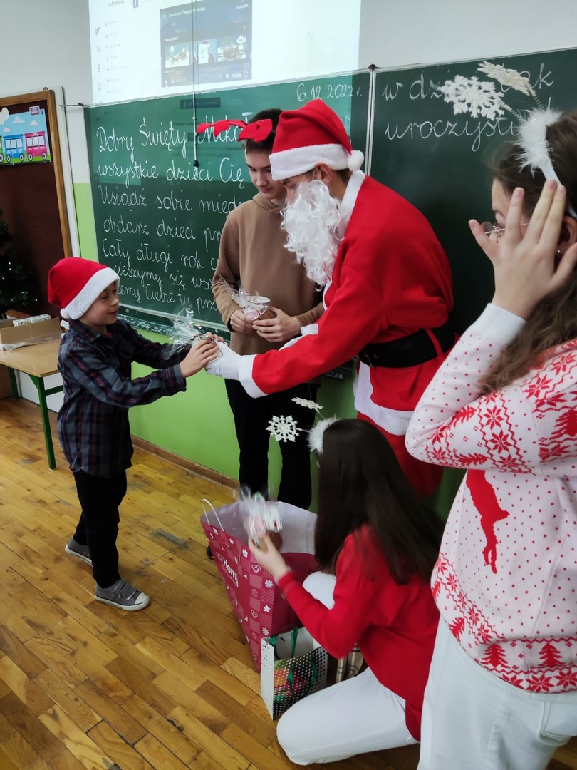 W tym roku również byliśmy grzeczni, bo odwiedził naszą szkołę św. Mikołaj. Tradycyjnie, 6 grudnia, wraz z pomocnikami obdarowywał prezentami uczniów, nauczycieli i pracowników szkoły. Wszyscy spędzili ten czas w radosnej atmosferze. Dziękujemy członkom i opiekunowi Samorządu Uczniowskiego za to, że w ten piękny dzień wspierali Mikołaja w jego pracy.
