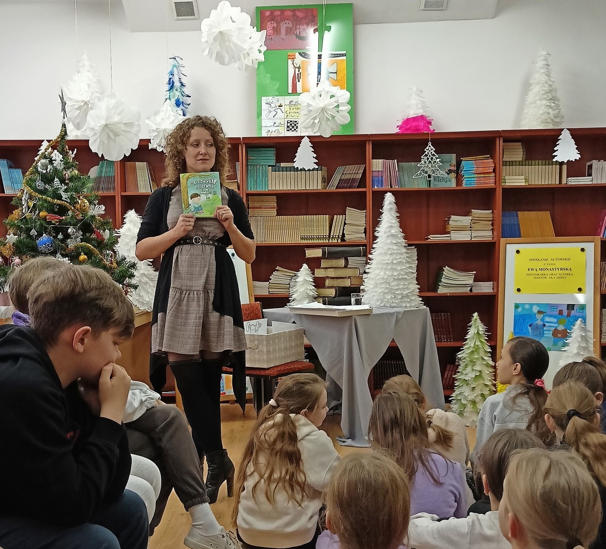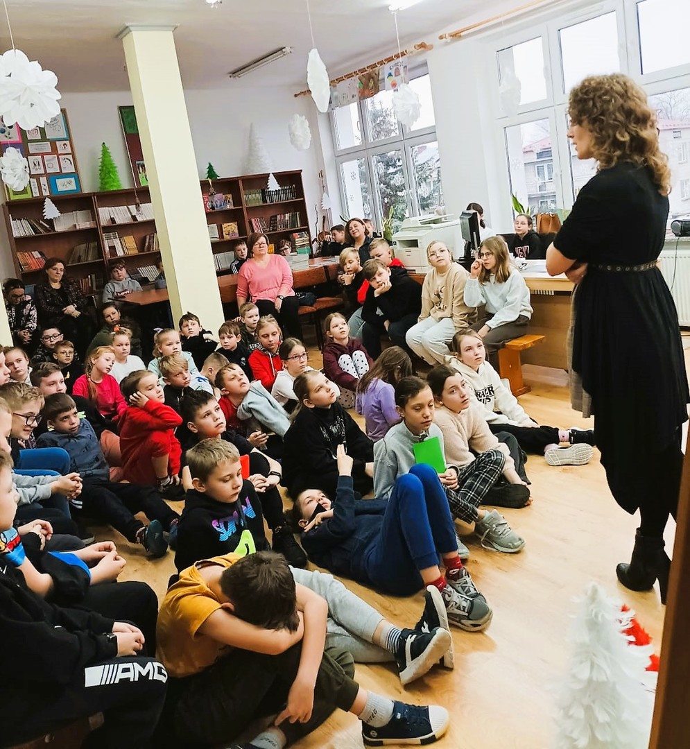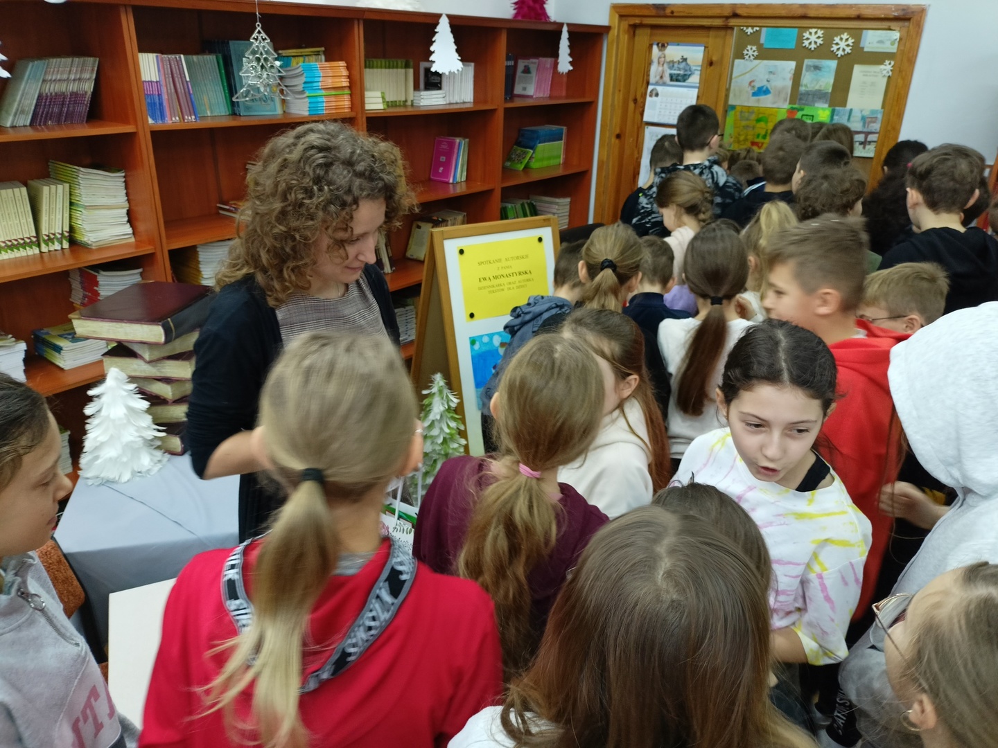 10 stycznia mieliśmy niewątpliwą przyjemność gościć w szkolnej bibliotece p. Ewę Monastyrską dziennikarkę i autorkę tekstów dla dzieci, a to wszystko w ramach Narodowego Programu Rozwoju Czytelnictwa. Spotkanie było bardzo ciekawe i inspirujące. Pani Ewa opowiadała nam jak to się stało, że została pisarką, skąd czerpała pomysły do swoich tekstów oraz o tym, że warto mieć marzenia i je spełniać.