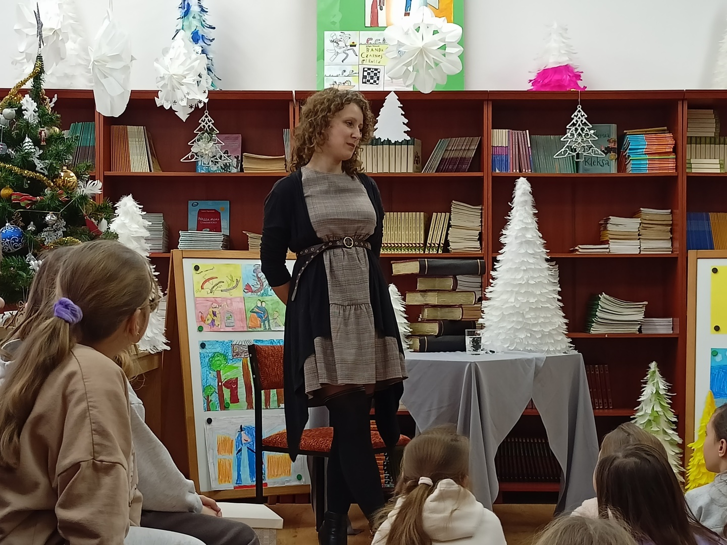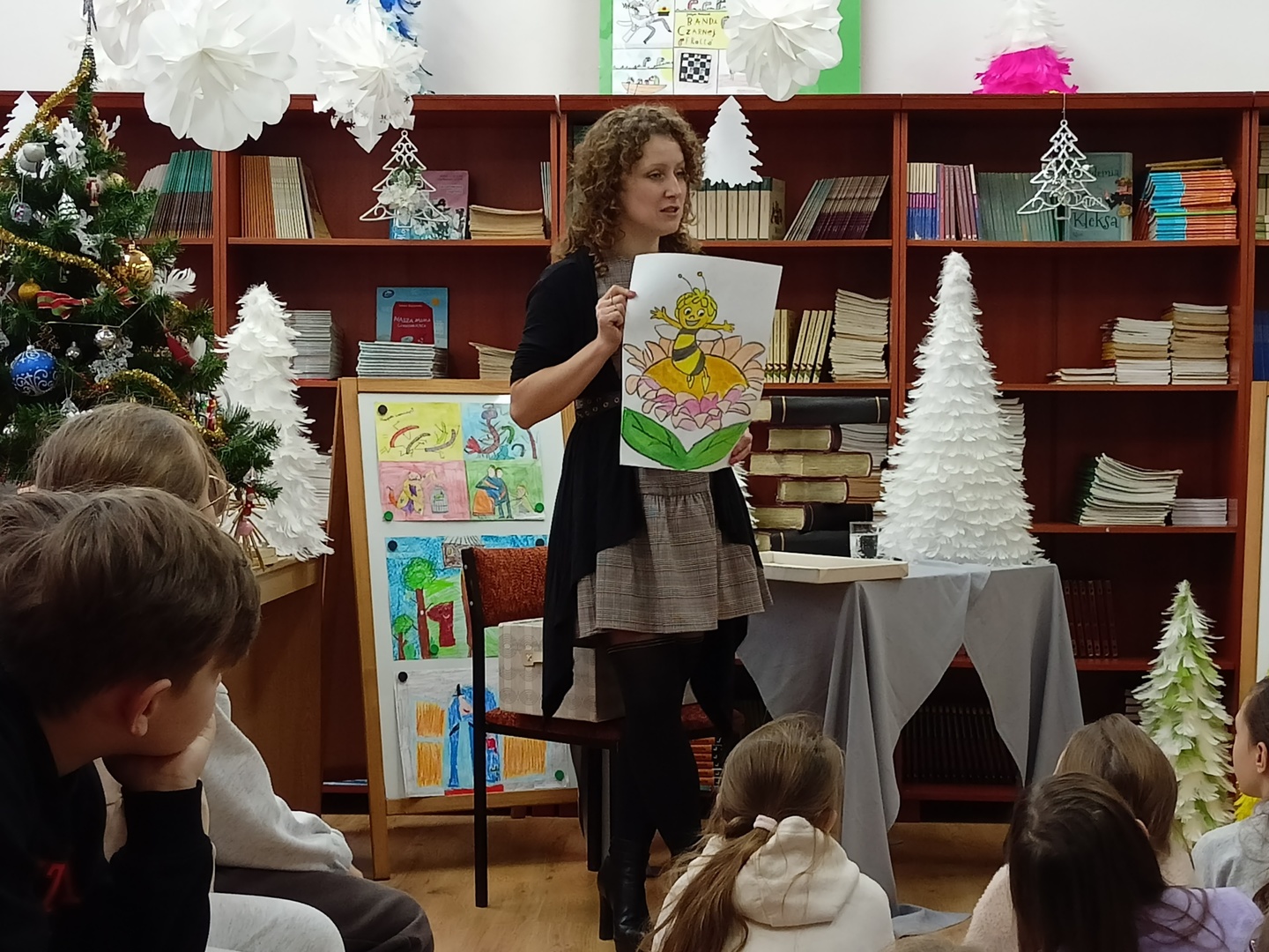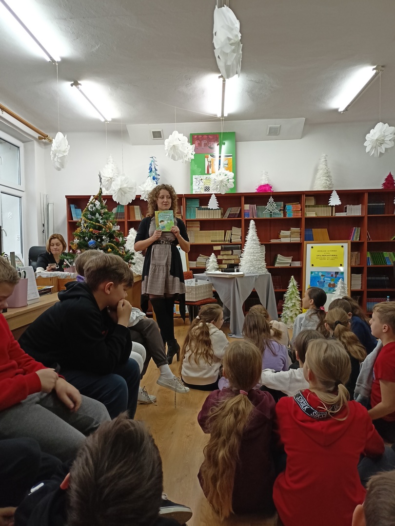 10 stycznia mieliśmy niewątpliwą przyjemność gościć w szkolnej bibliotece p. Ewę Monastyrską dziennikarkę i autorkę tekstów dla dzieci, a to wszystko w ramach Narodowego Programu Rozwoju Czytelnictwa. Spotkanie było bardzo ciekawe i inspirujące. Pani Ewa opowiadała nam jak to się stało, że została pisarką, skąd czerpała pomysły do swoich tekstów oraz o tym, że warto mieć marzenia i je spełniać.