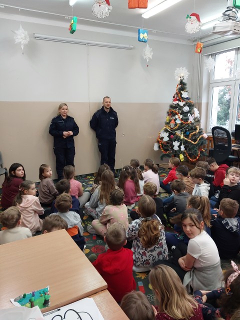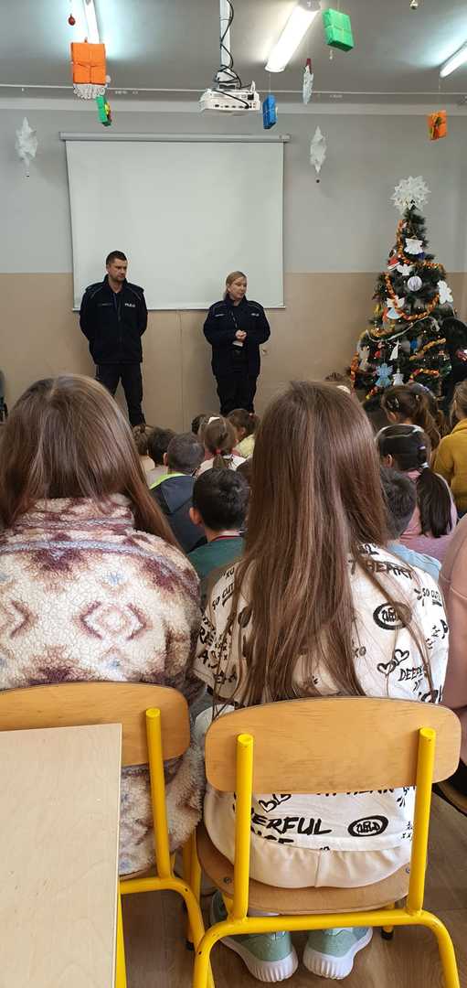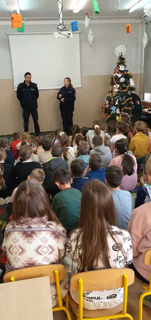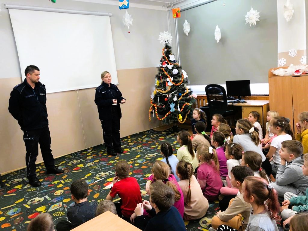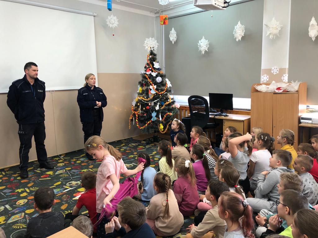 4 i 12 stycznia w naszej szkole odbyły się spotkania profilaktyczno-edukacyjne z funkcjonariuszami tomaszowskiej policji pod hasłem „Bezpieczne ferie”. Policjanci przypomnieli dzieciom jak prawidłowo poruszać się po drogach, jak bezpiecznie uprawiać sporty zimowe i bawić się na świeżym powietrzu.