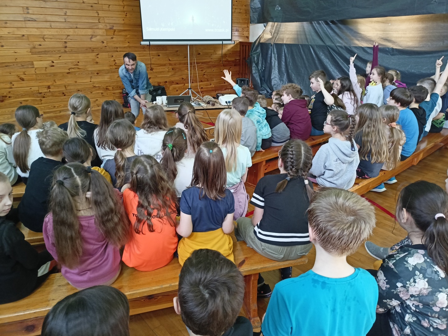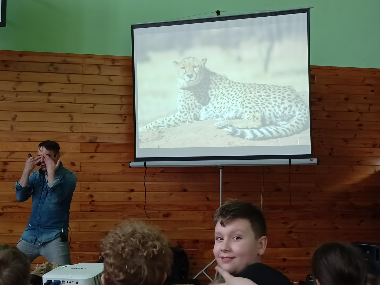 17 lutego odbyło się w naszej szkole ciekawe spotkanie z p. Samuelem Kempskim jednym z podróżników z grupy „trzask.pl”. Tym razem zostaliśmy zabrani w niezwykłą podróż po jednym z afrykańskich krajów – Namibii. Nasz gość opowiedział nam wiele fascynujących historii, pokazał zdjęcia, które wykonał on i jego ekipa. Nasze serca poruszyła opowieść o najszybszych zwierzętach lądowych – gepardach. Te dostojne, zwinne, ale jakże płochliwe koty są zagrożone wyginięciem. Wysłuchaliśmy też informacji o plemieniu Himba, w którym nikt nie odmierza czasu, nie wie kiedy się urodził, a więc nie wie też ile ma lat. Zobaczyliśmy też kilka przedmiotów użytku codziennego oraz ozdoby. Spotkanie trwało ponad godzinę, a mieliśmy wrażenie jakby to była chwila. W tym dniu, w wielu głowach zrodziło się nowe marzenie do spełnienia.