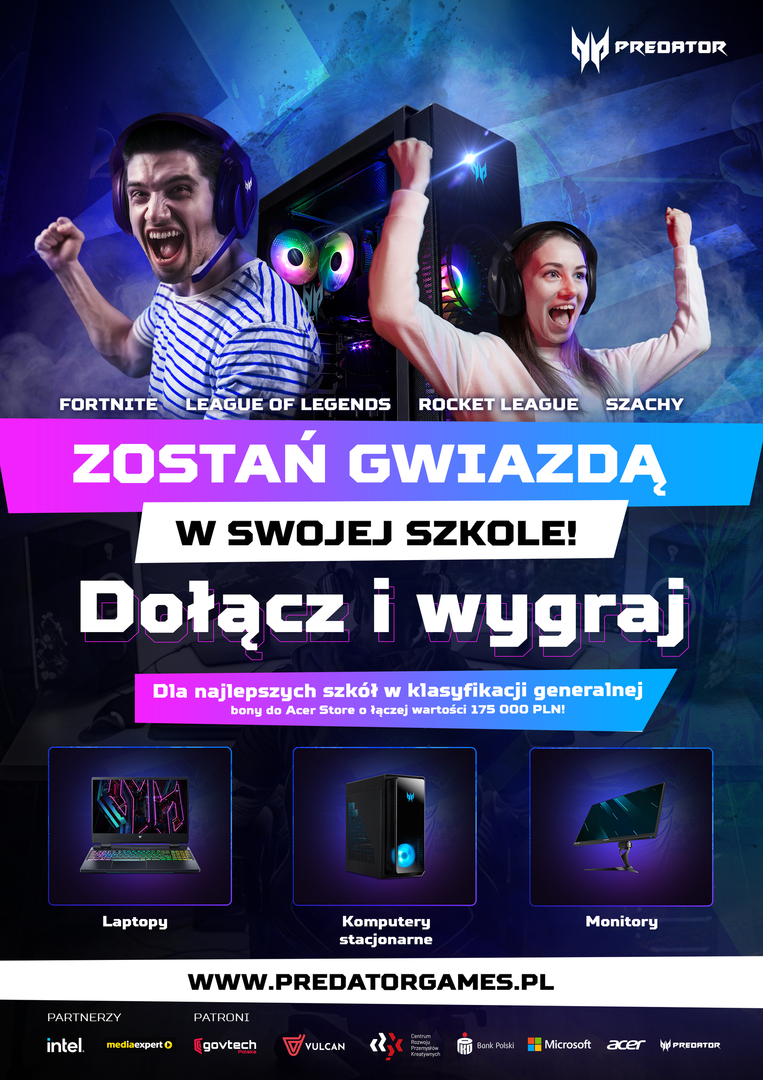 Nasza szkoła bierze udział w I edycji ogólnopolskich zawodów e-sportowych PREDATOR GAMES 2023 największych w Europie Międzyszkolnych Rozgrywek E-sportowych. Dlatego rozpoczynamy nabór do szkolnej reprezentacji e-sportowej. Tworzone są cztery drużyny:
