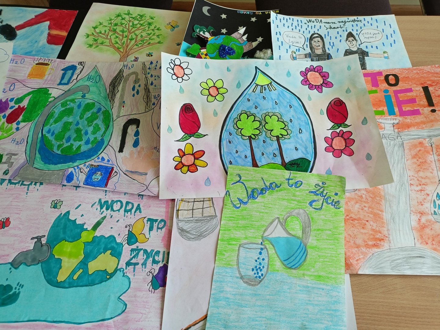 Oto nagrodzeni i wyróżnieni uczniowie z klas I-III w konkursie plastycznym "Woda naszym największym skarbem" zorganizowanym przez PGKiM w Tomaszowie Lubelskim: