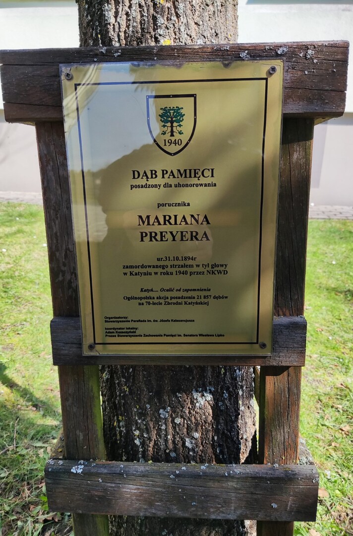 W 2007 roku Sejm Rzeczpospolitej Polskiej ustanowił 13 kwietnia Dniem Pamięci Ofiar Zbrodni Katyńskiej. Uczciliśmy ten dzień Apelem Pamięci „Dęby Katyńskie – Łańcuch Pamięci Kolejnych Pokoleń”, który przygotowali uczniowie klasy Vc: Emilia Puźniak, Kamila Kielar, Katarzyna Kata, Michał Wawrzusiszyn, Paweł Gardias i Dawid Karasiewicz. W ten sposób wpisaliśmy się w realizację programu „Katyń … ocalić od zapomnienia” i upamiętniliśmy Ofiary Zbrodni Katyńskiej. Uczniowie wraz z wychowawcami odwiedzili dwa Dęby Pamięci rosnące przy naszej szkole. Jeden z nich poświęcony jest pamięci porucznika Mariana Preyera zamordowanego strzałem w tył głowy w Katyniu w roku 1940. Drugi - poświęcony jest pamięci aspiranta Policji Państwowej Leopolda Guzowskiego zamordowanego strzałem w tył głowy w Katyniu w roku 1940.