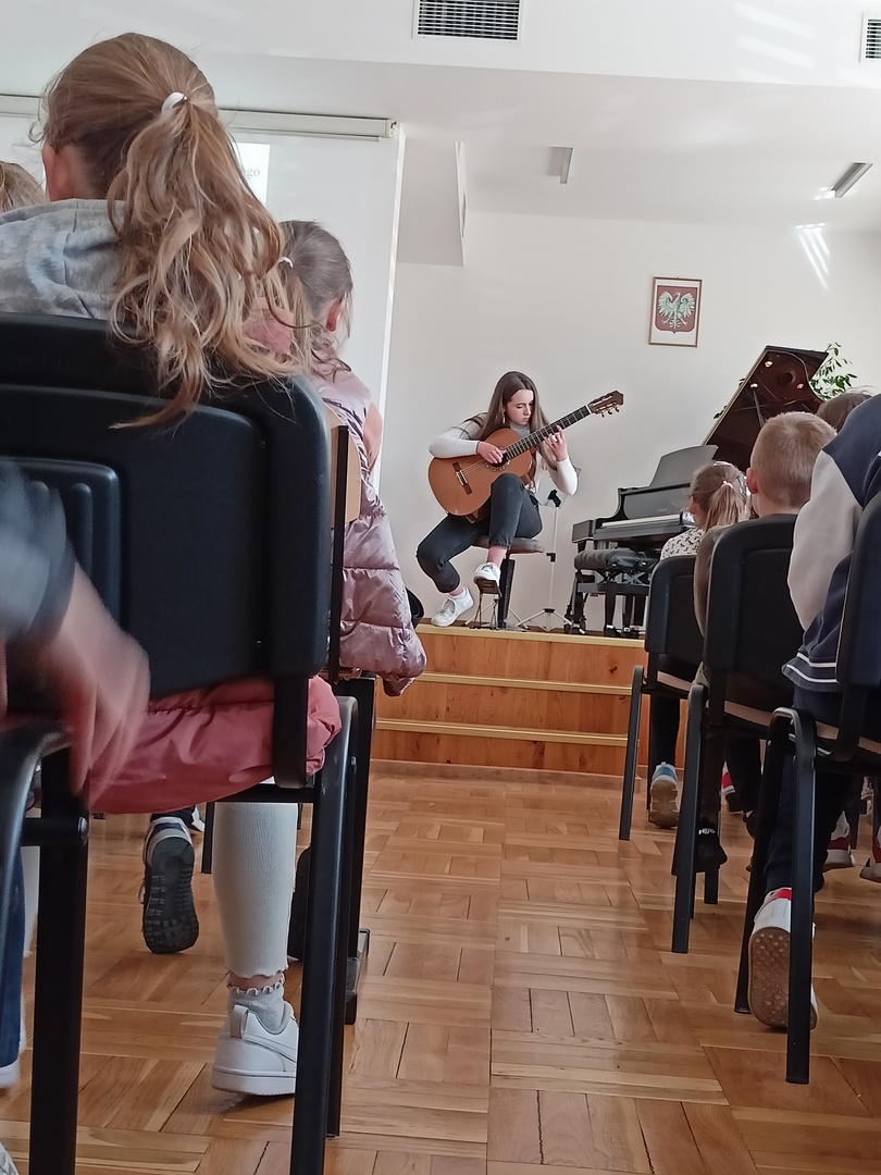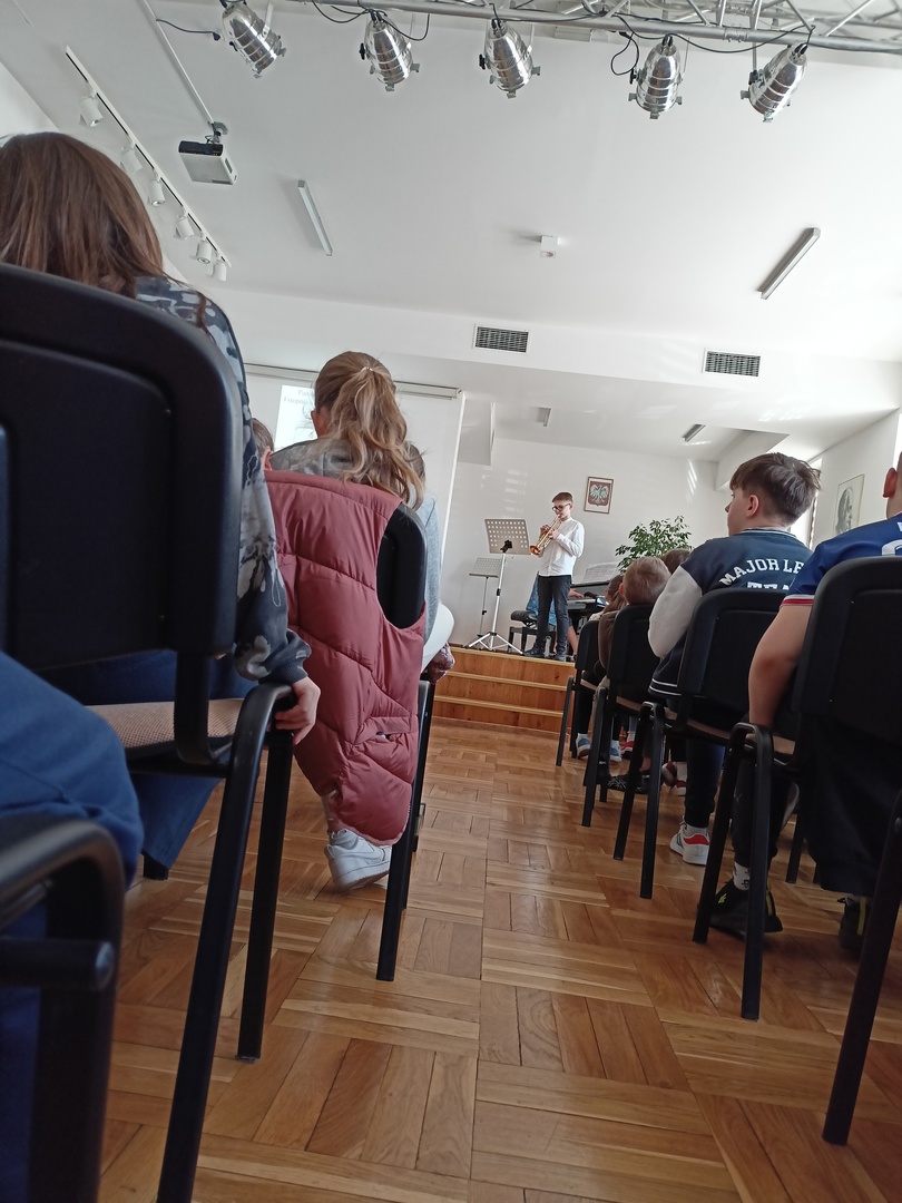 10 maja uczniowie trzecich klas zostali zaproszeni na koncert talentów do szkoły muzycznej w naszym mieście. Mieliśmy przyjemność wysłuchania utwory wykonywane na różnorodnych instrumentach muzycznych, przy okazji poznaliśmy kilka ciekawostek z nimi związanych. Miło było patrzeć, między innymi, na uczniów naszej szkoły.🤩