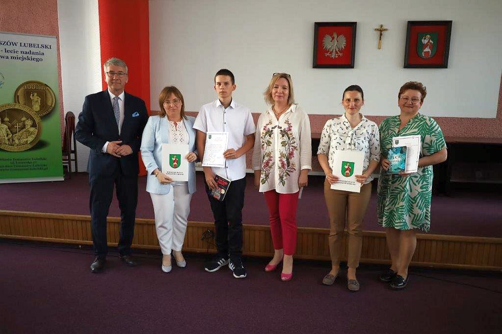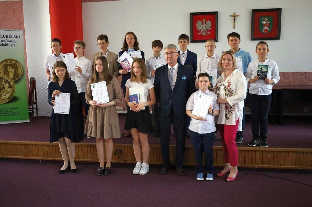 Miło nam poinformować, że w dniu 29 maja 2023 r. w Urzędzie Miasta Tomaszów Lubelski odbyło się spotkanie Burmistrza Miasta Wojciecha Żukowskiego z laureatami i finalistami konkursów przedmiotowych organizowanych przez Lubelskiego Kuratora Oświaty w roku szkolnym 2022/2023. Spotkanie odbyło się w sali konferencyjnej urzędu miasta, wzięli w nim udział, oprócz wyróżnionych uczniów i ich rodziców, nauczyciele opiekunowie oraz dyrektorzy szkół. W spotkaniu wzięła udział również Przewodnicząca Rady Miasta Tomaszów Lubelski Monika Pikuła. Uczniowie otrzymali z rąk Burmistrza Miasta oraz Przewodniczącej Rady Miasta Tomaszów Lubelskim okolicznościowe listy gratulacyjne oraz drobne upominki w postaci książek. Gratulacje otrzymali również nauczyciele i rodzice. Spotkanie uświetnił znakomity występ uczniów klasy IVa z naszej szkoły pod kierunkiem Pani Małgorzaty Giski.